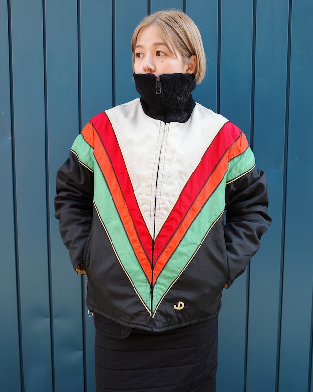 大胆な配色が目を引くナイロンジャケット レーシングジャケットのような雰囲気もあります 着画のように女性らしくカッコ良いボトムスと合わせていただくとおしゃれに決まるかと思います 袖にはリブもついておりしっかり暖かい 実用性もあるアウター、ぜひおすすめです [size] 着丈62cm 身幅55cm 肩幅47cm 袖丈61cm アーム幅24cm 比較的状態の綺麗なアイテムを厳選して買付けておりますが、中にはダメージ等があるものもございます。当店ではこういった使用感も含めて古着のもつ良い雰囲気であると考え販売致しております。ダメージや汚れ等ご心配なお客様はご注文前にメールでお気軽にお問い合わせ下さい。 coug.co.jp