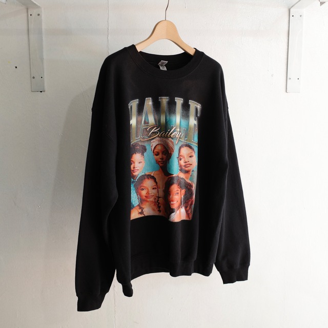 ブラックボディに、Halle Bailey のフォトプリントが大胆にデザインされたスウェット。 フロントには彼女の魅力的な表情を集めたコラージュ風プリントが配され、ヴィンテージライクな雰囲気を漂わせます。 程よい厚みのある生地感で、リラックスした着心地ながら存在感のある一枚。 古着ならではのフェード感や風合いがスタイリングに奥行きを与えてくれます。 ユニセックスで着用可能なアイテムです。 [size] 着丈68cm 身幅58cm 肩幅61cm 袖丈61.5cm アーム幅26cm 比較的状態の綺麗なアイテムを厳選して買付けておりますが、中にはダメージ等があるものもございます。当店ではこういった使用感も含めて古着のもつ良い雰囲気であると考え販売致しております。ダメージや汚れ等ご心配なお客様はご注文前にメールでお気軽にお問い合わせ下さい。 こちらの商品は実店舗と在庫共有を行なっているため、売り切れや、お届けまでお時間を頂戴してしまう可能性がございます。予めご了承ください。 また、その他ご不明な点等ございましたら、ご注文前にメールでお気軽にお問い合わせ下さいませ。 coug.co.jp