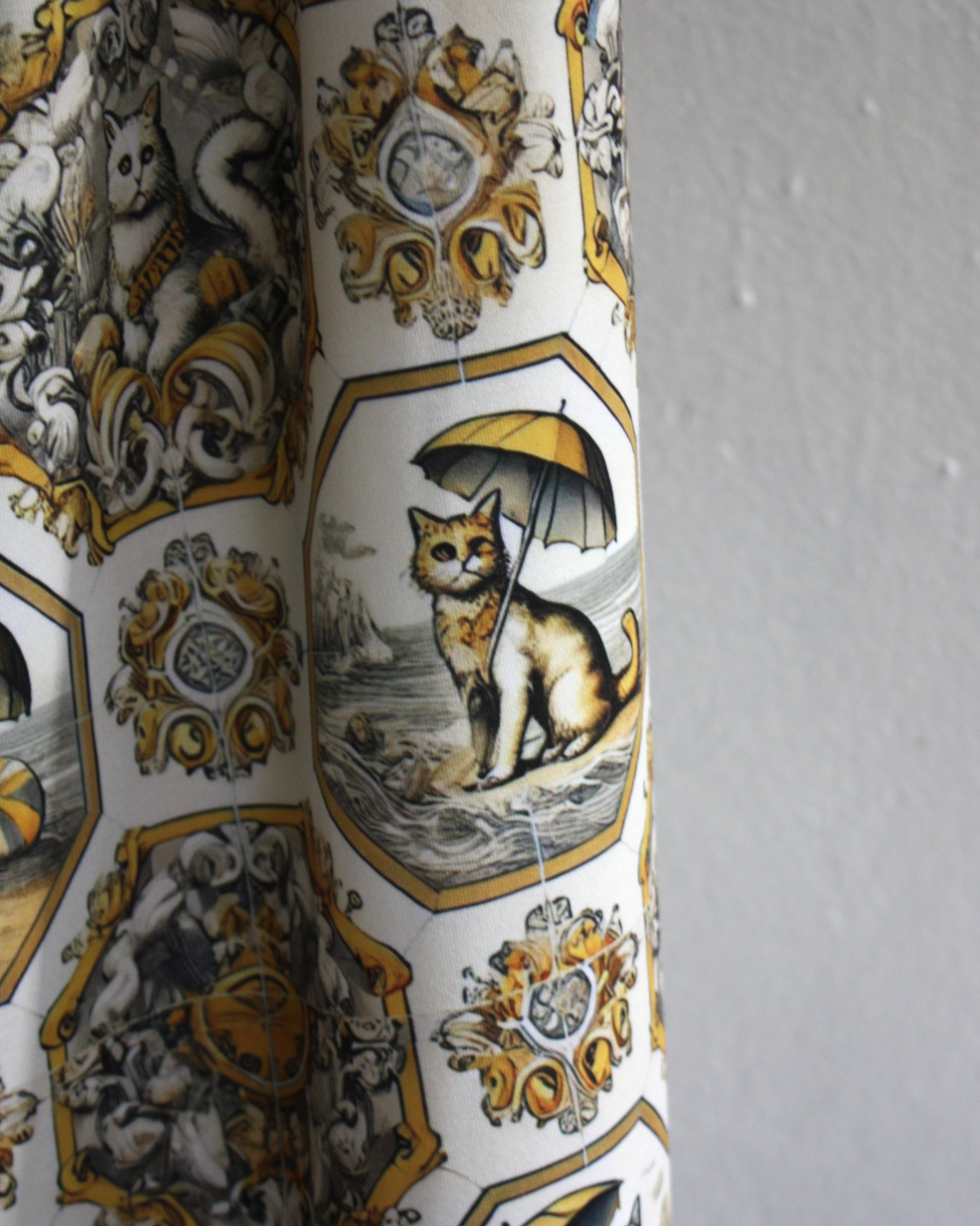 全体には猫をモチーフにしたクラシカルなイラストが敷き詰められ、ヴィンテージ調のフレームデザインがアートピースのような雰囲気を演出します。