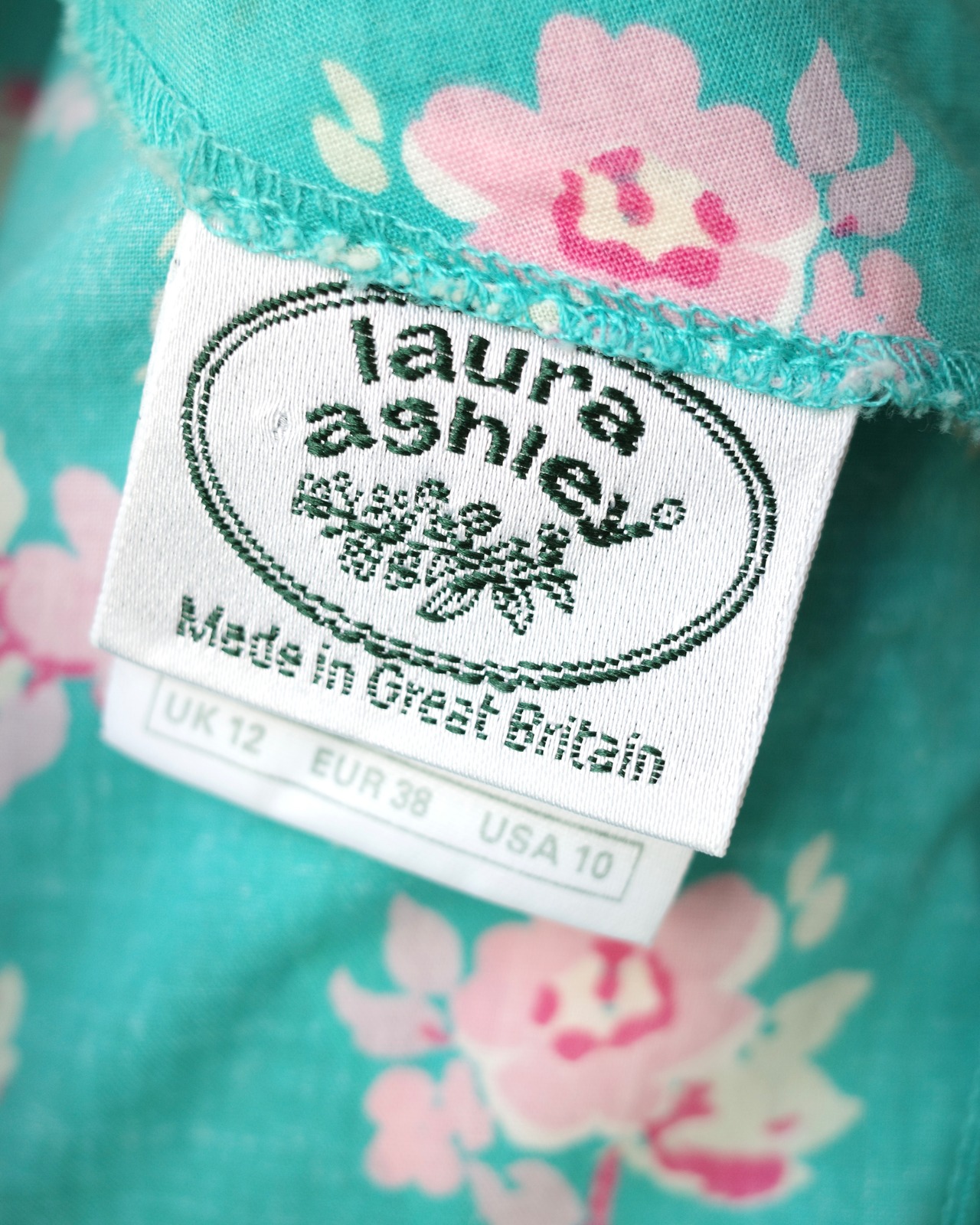ミントグリーンの生地に淡いピンクの小花柄が散りばめられた、爽やかな印象のヴィンテージワンピース。