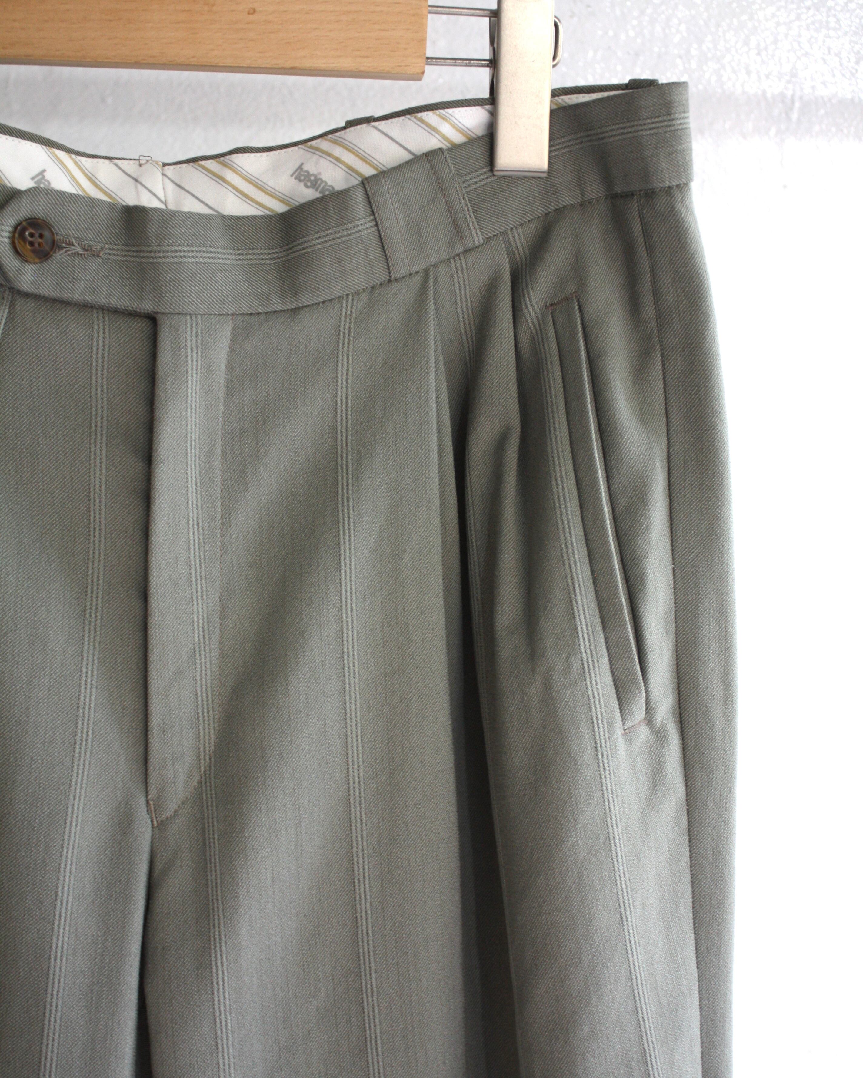 Olive Gray Pleated Wool Slacks