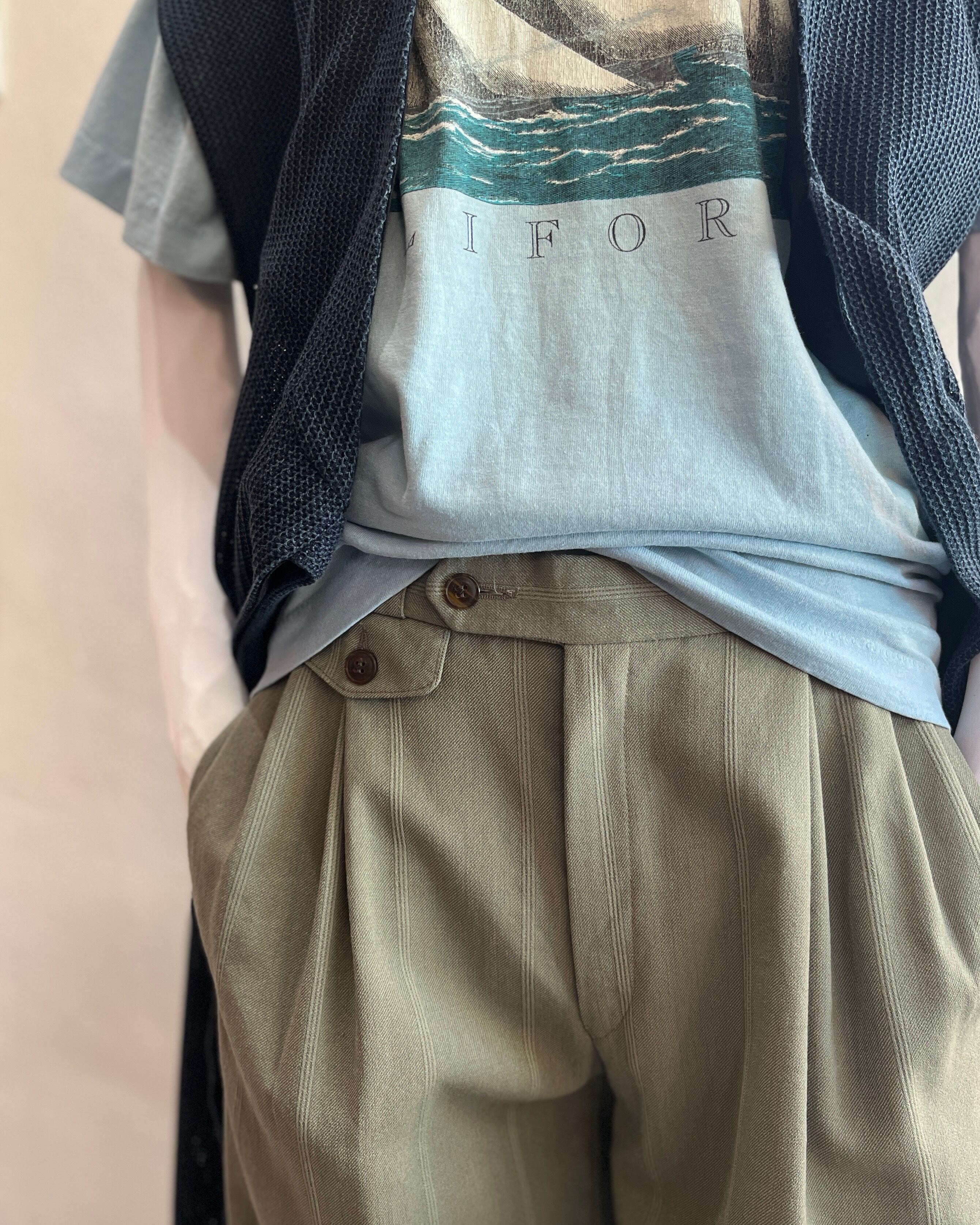 タックインスタイルで、シャツやジャケットとの相性も抜群。