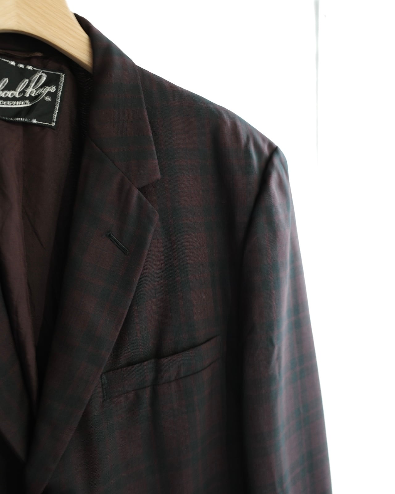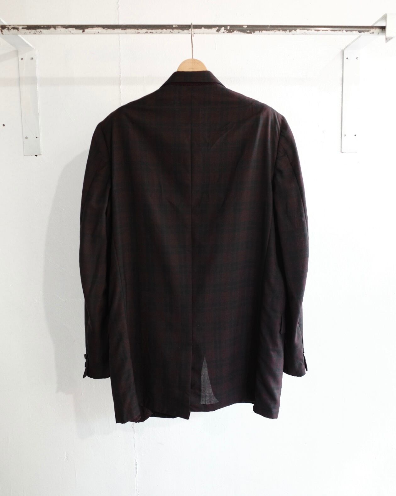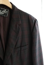 落ち着いたバーガンディ×ブラックのチェック柄が魅力のテーラードジャケット。