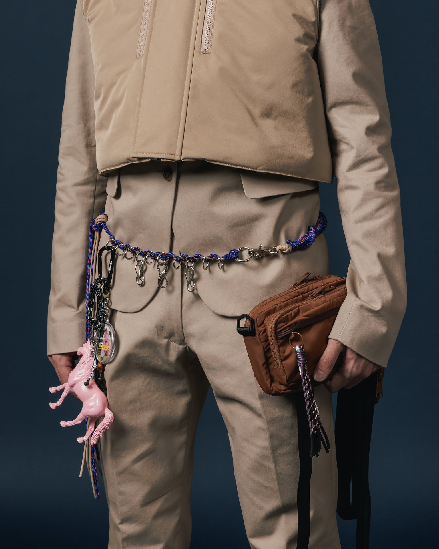 前ポケットのスライダーにはコードのフリンジが付いており、アクセントとなっています。