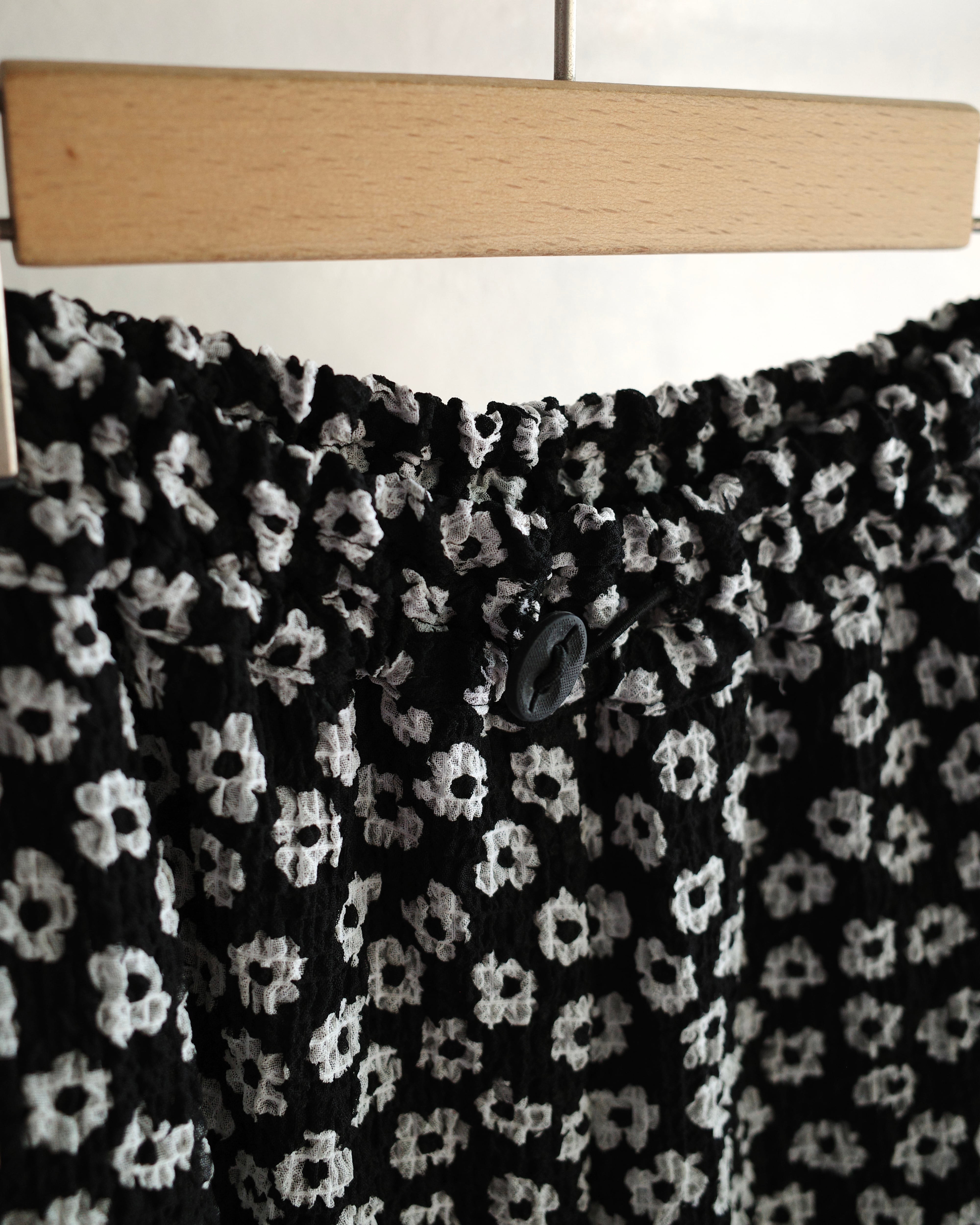 VIOLETTE ROOM / SHRINK POLYESTER PRINT LITTLE FLOWER PANTS / BLACKWHITE