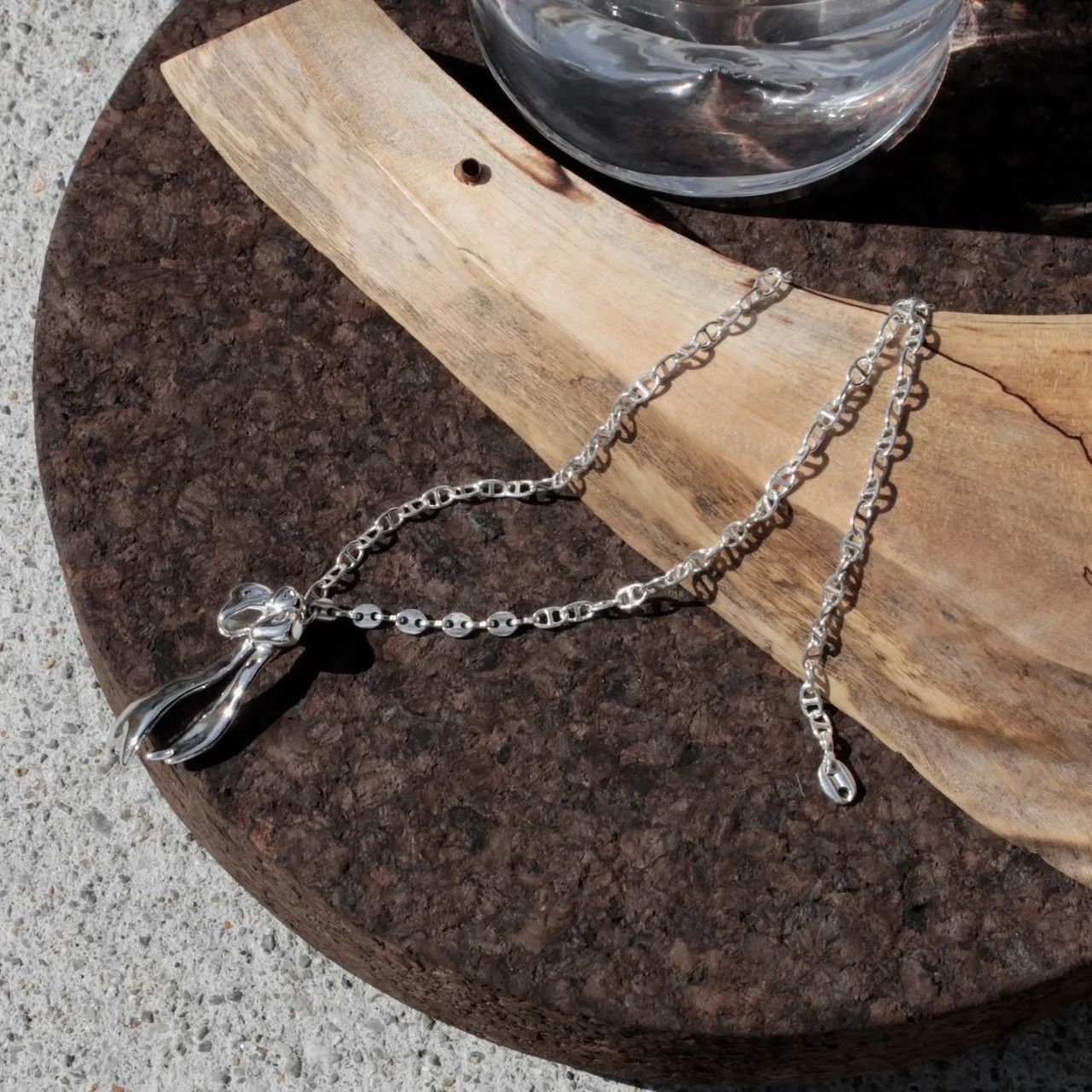 「Ribbon small necklace」は、チョーカー丈からミドル丈まで調整可能なネックレス。同シリーズの「Ribbon necklace」とレイヤードして着用頂くのもオススメのItemとなっております。