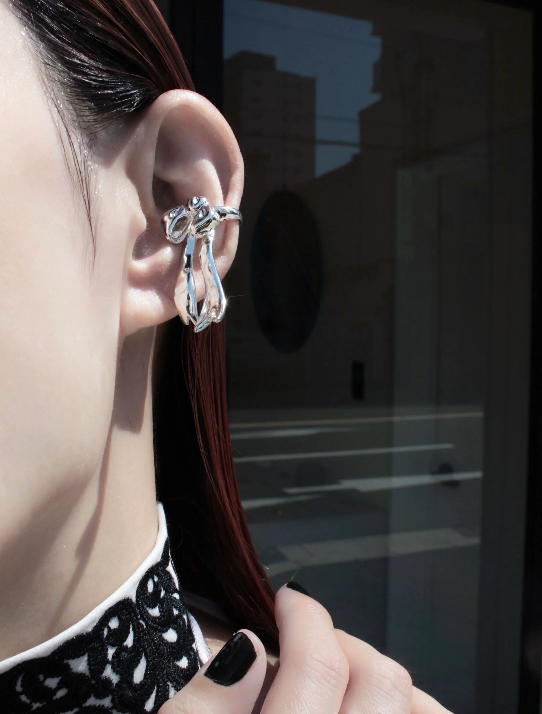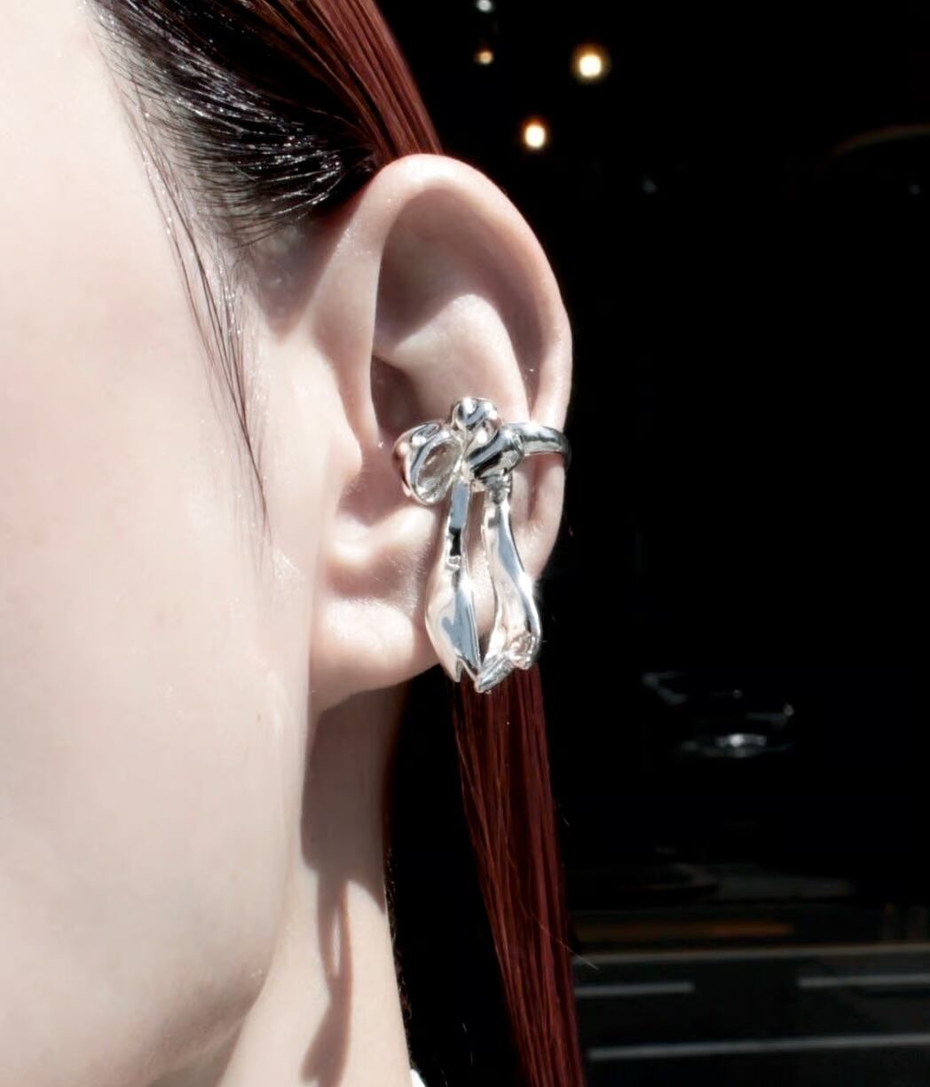 「Ribbon earcuff」は単品での着用はもちろん、同シリーズの「Ribbon earing」とレイヤードし着用頂いてもバランスが良い様、設計されております。