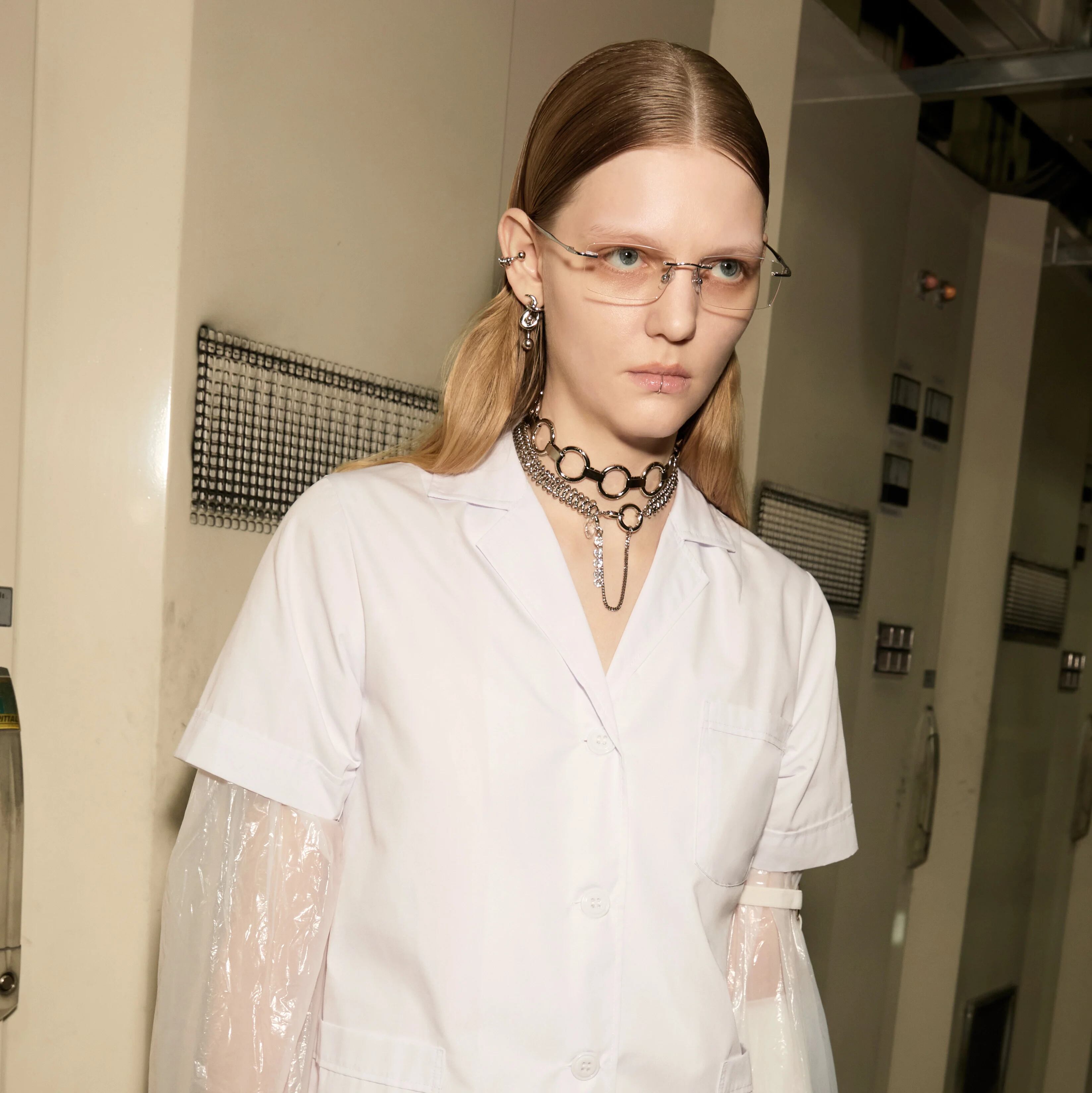 Lookは、1971年に公開されたスタンリー・キューブリック監督作の映画「時計仕掛けのオレンジ」で衣装を手掛けた、Milena Canonero(ミレーナ・カノネロ)へのオマージュとしてスタイリングを構築。映画の持つ独特な世界感と「Cyber punk」の未来的な要素が融合した、SoierieならではのLookとなっております。