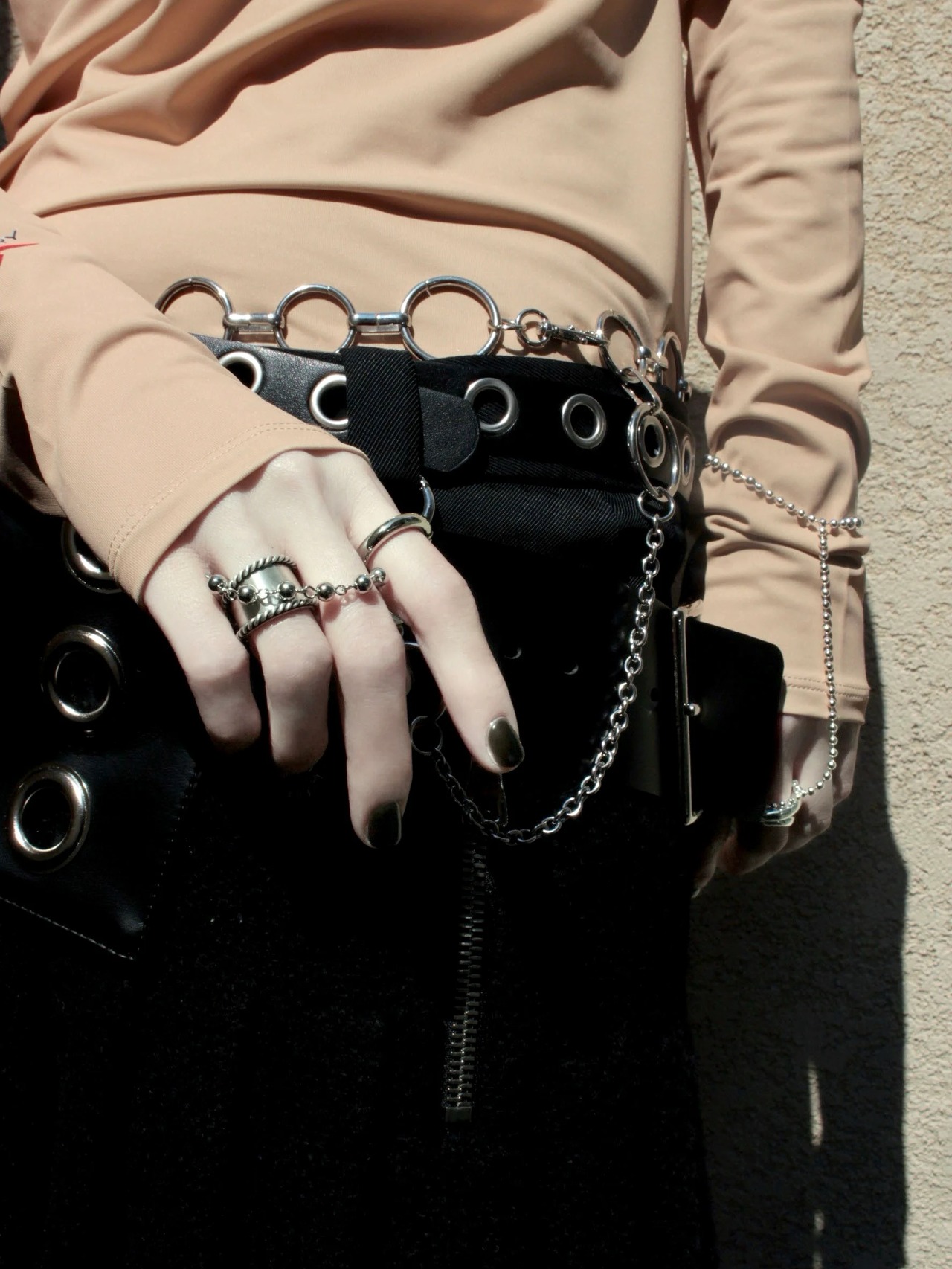 こちらはカラビナがRingとなっており、ボールチェーン部分と併せて3 Finger ringとして着用する仕様のRingとなっております。また、ボールチェーン部分を取り外して、カラビナのみで着用する事も可能なItemとなっております。