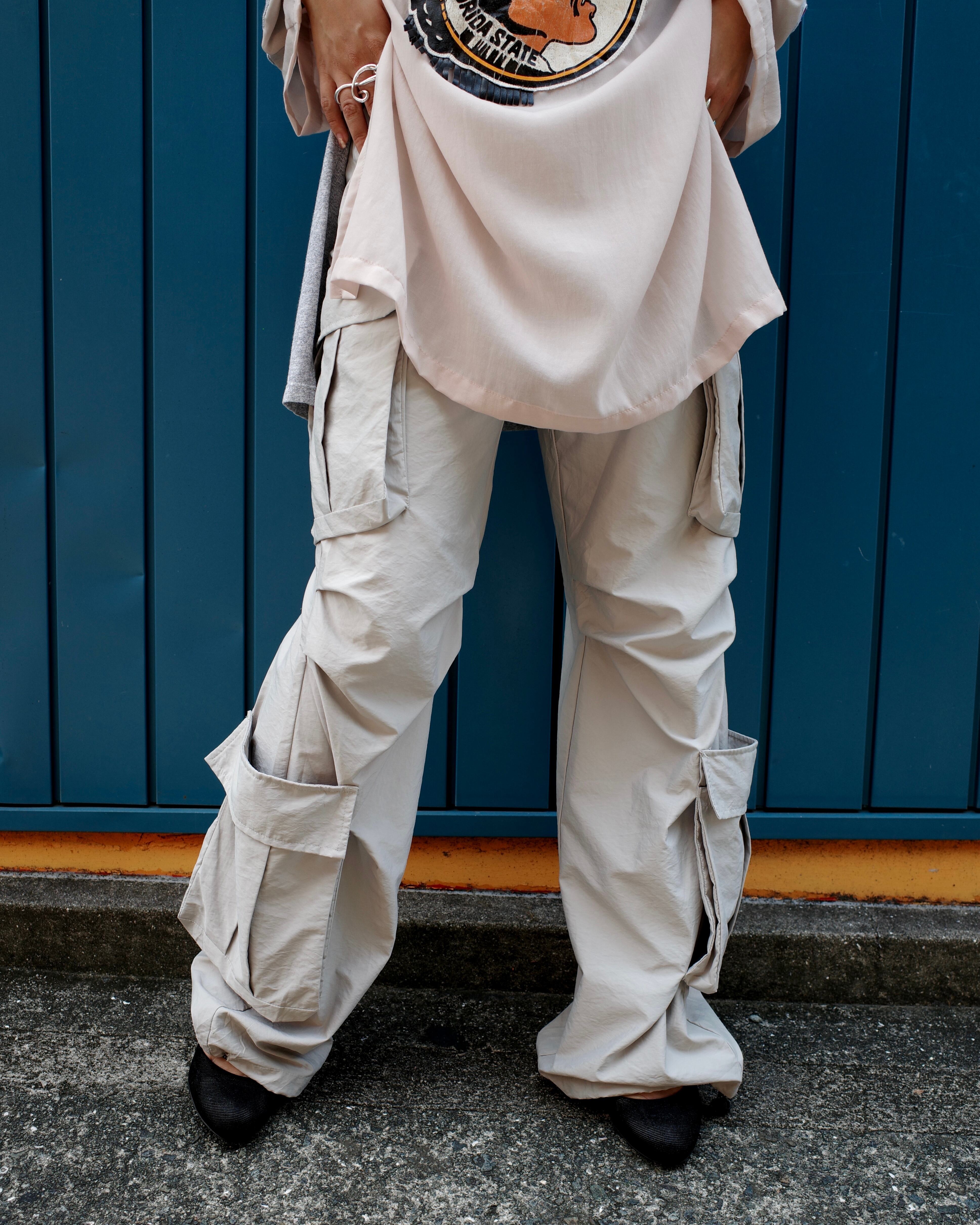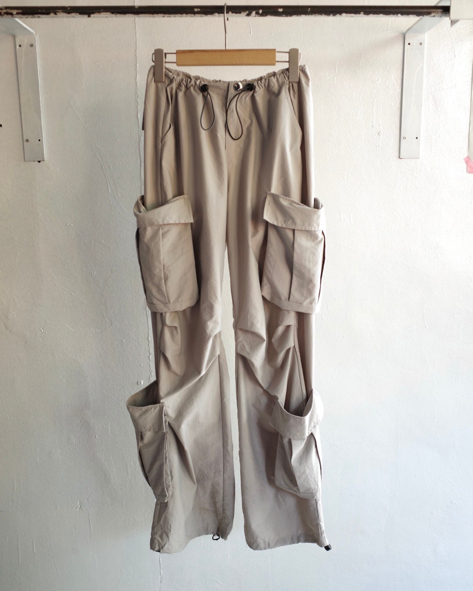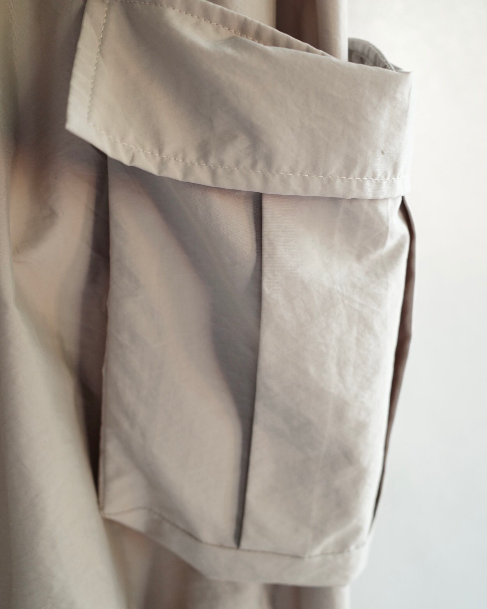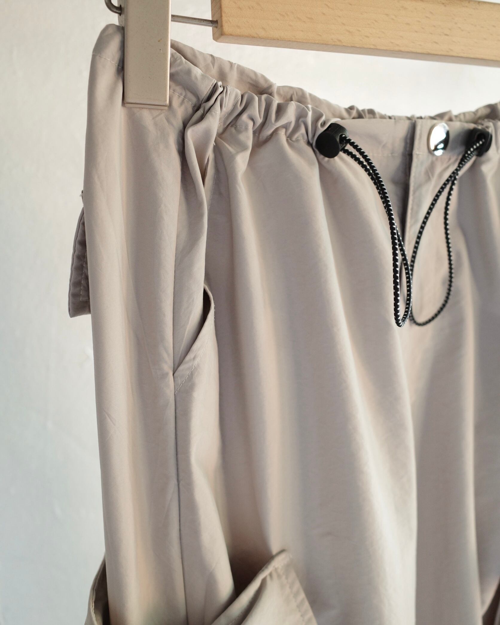 軽量でさらりとした肌触りのナイロン素材のカーゴパンツ。