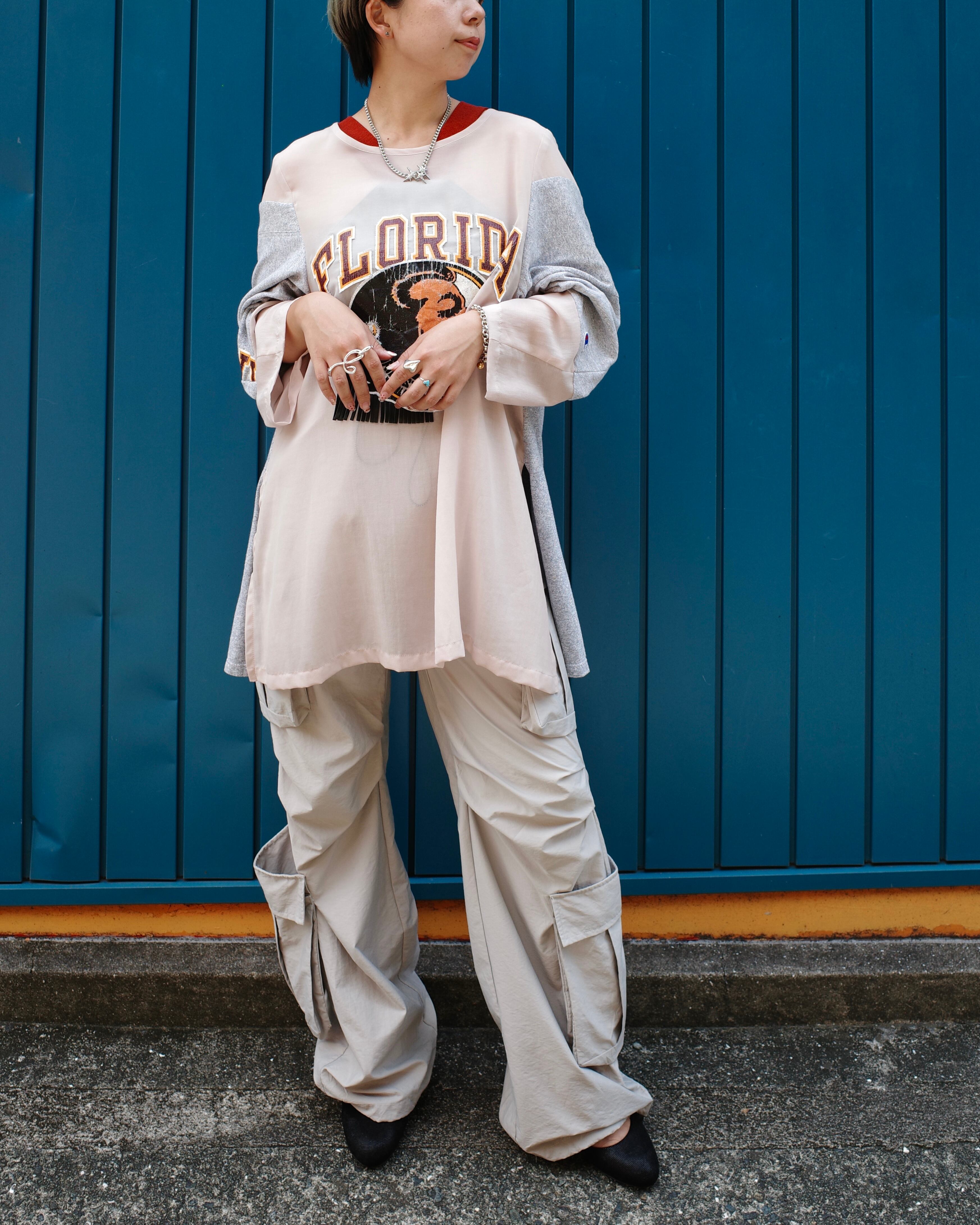 シンプルなトップスと合わせるだけで、無骨さとストリート感を両立したスタイリングが完成する一本です。アウトドアやタウンユースはもちろん、ユーズドならではのこなれ感を取り入れたい方におすすめ。