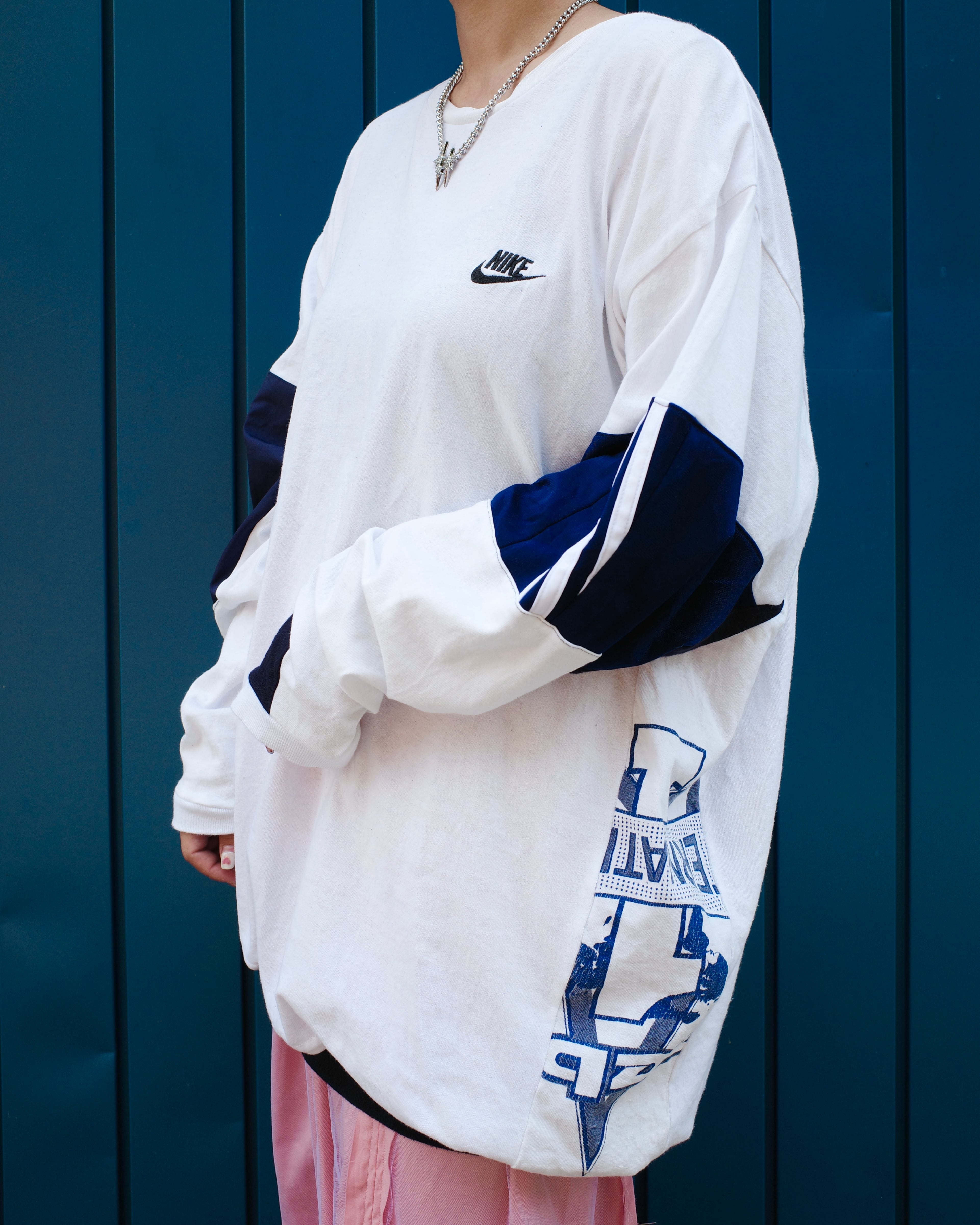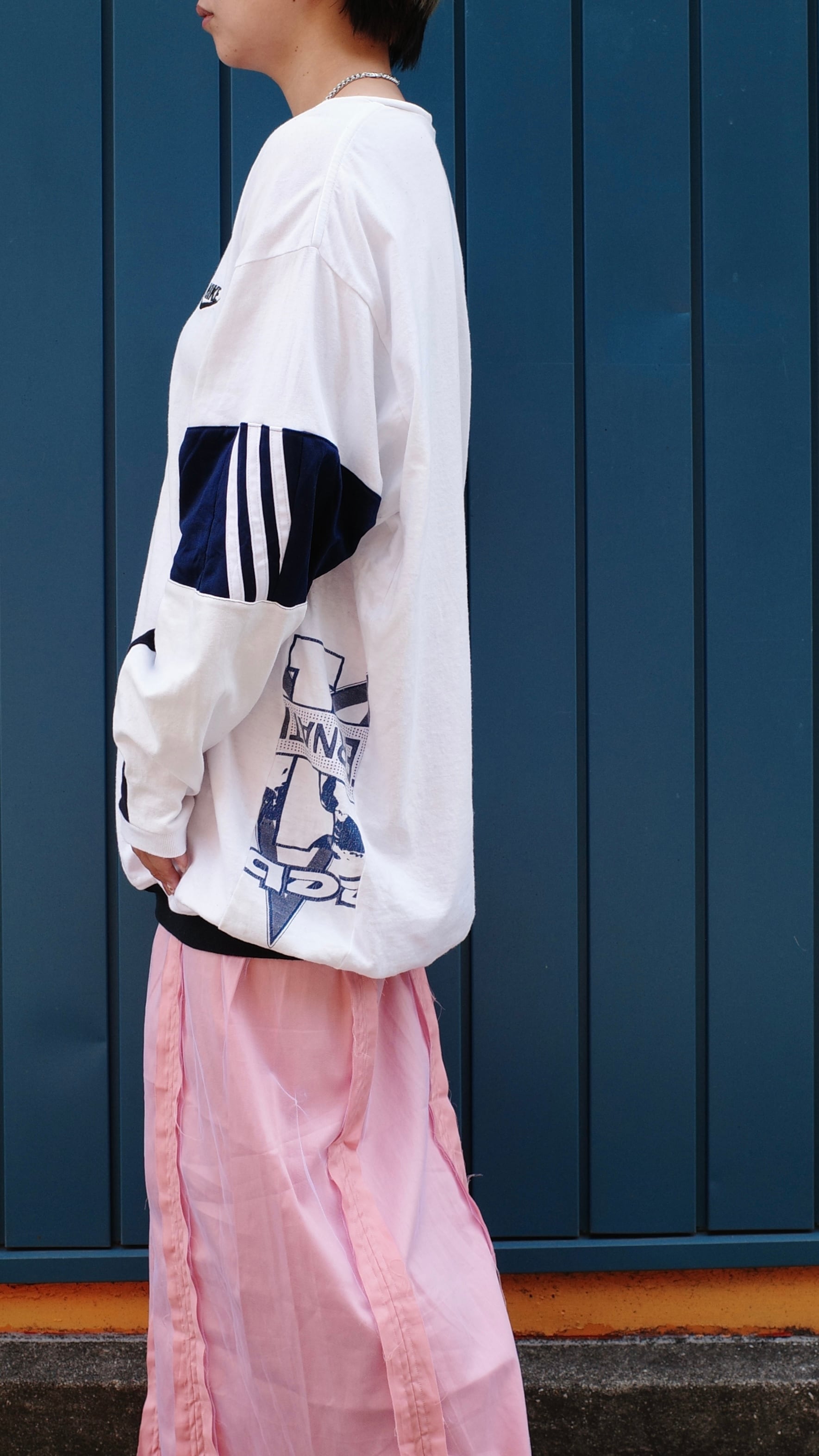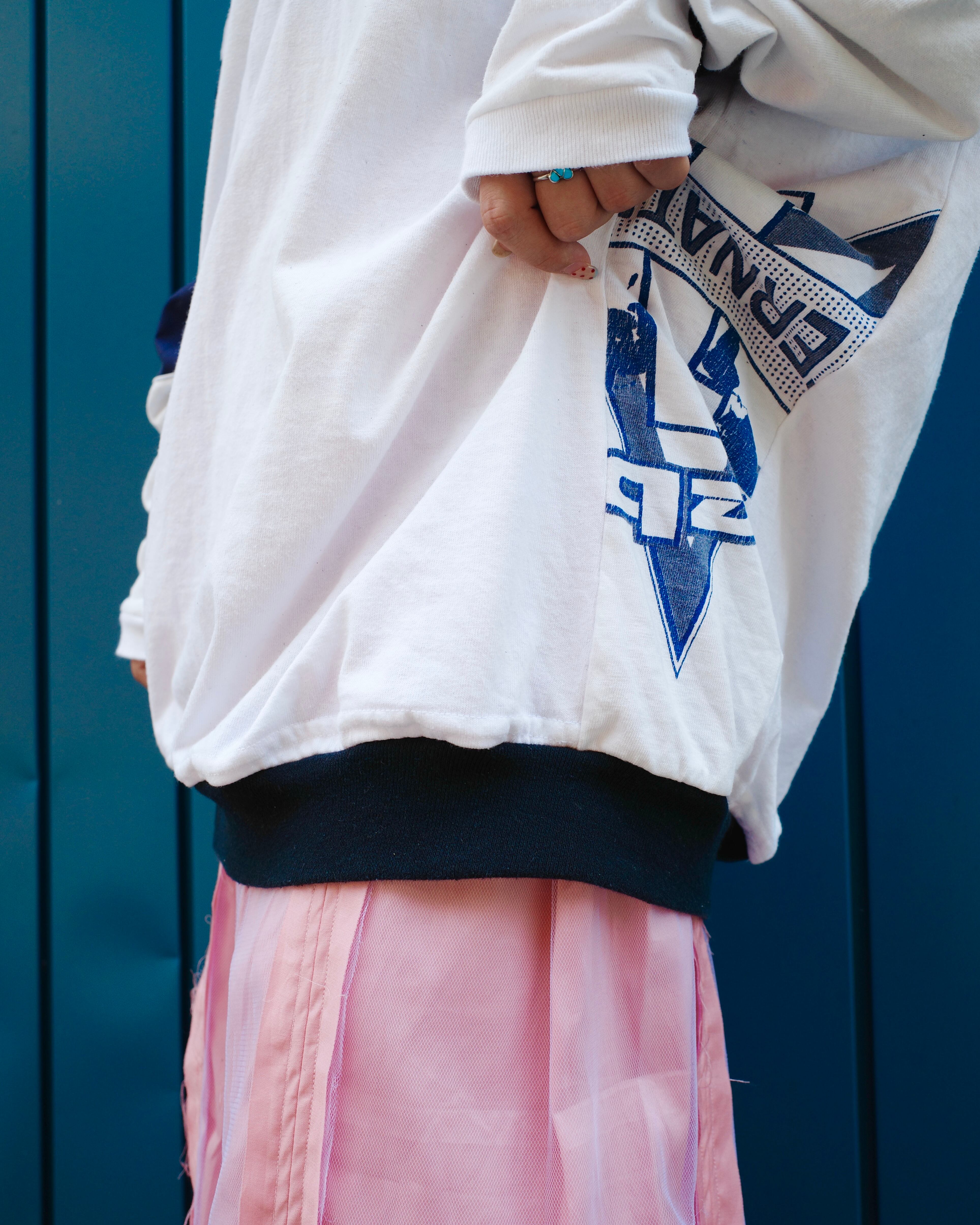 ユーズドのTシャツをベースにリメイクされたアイテム。