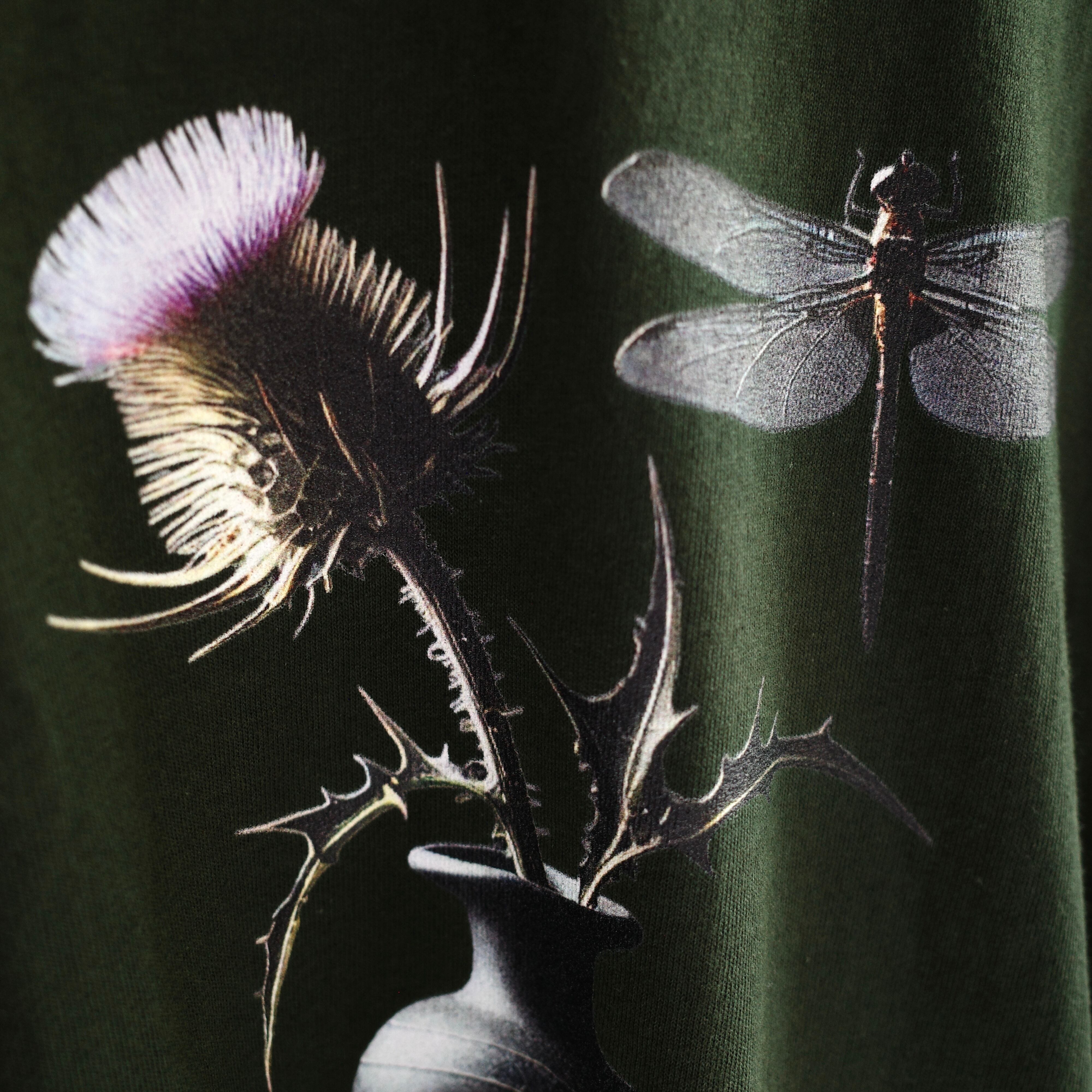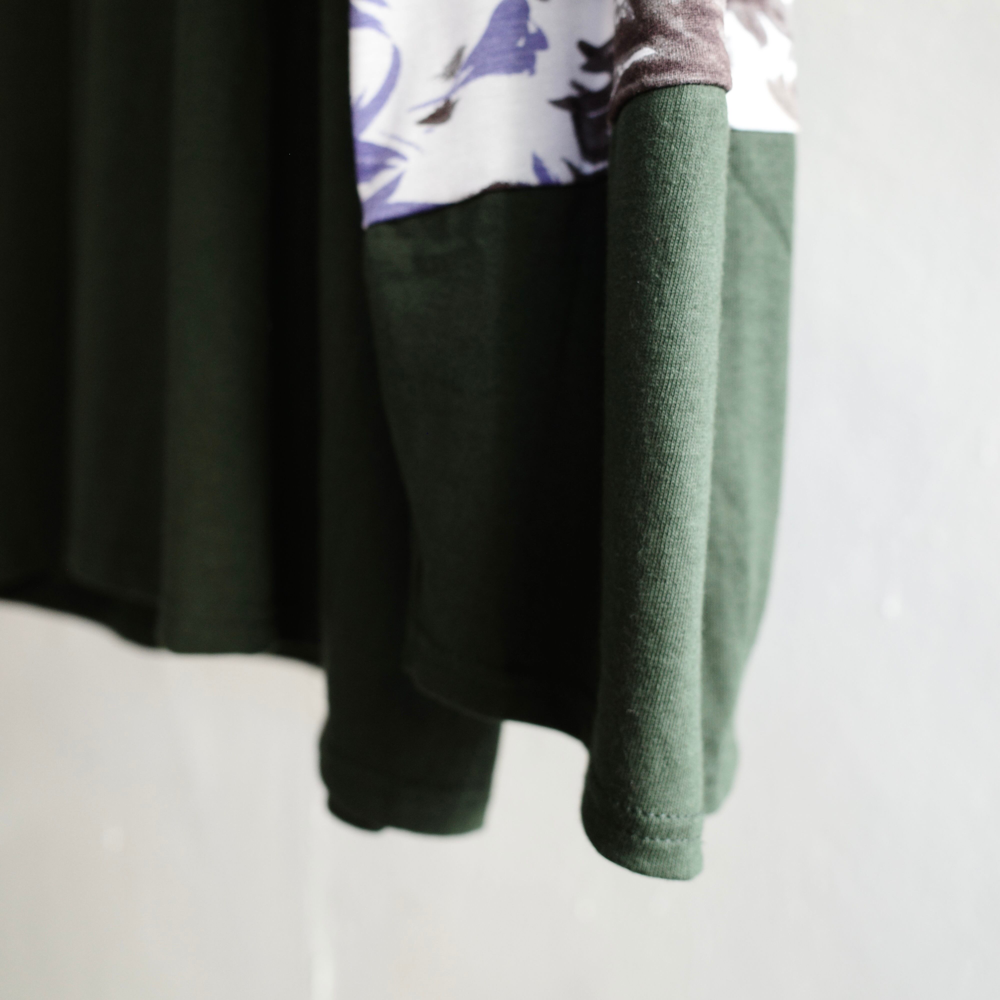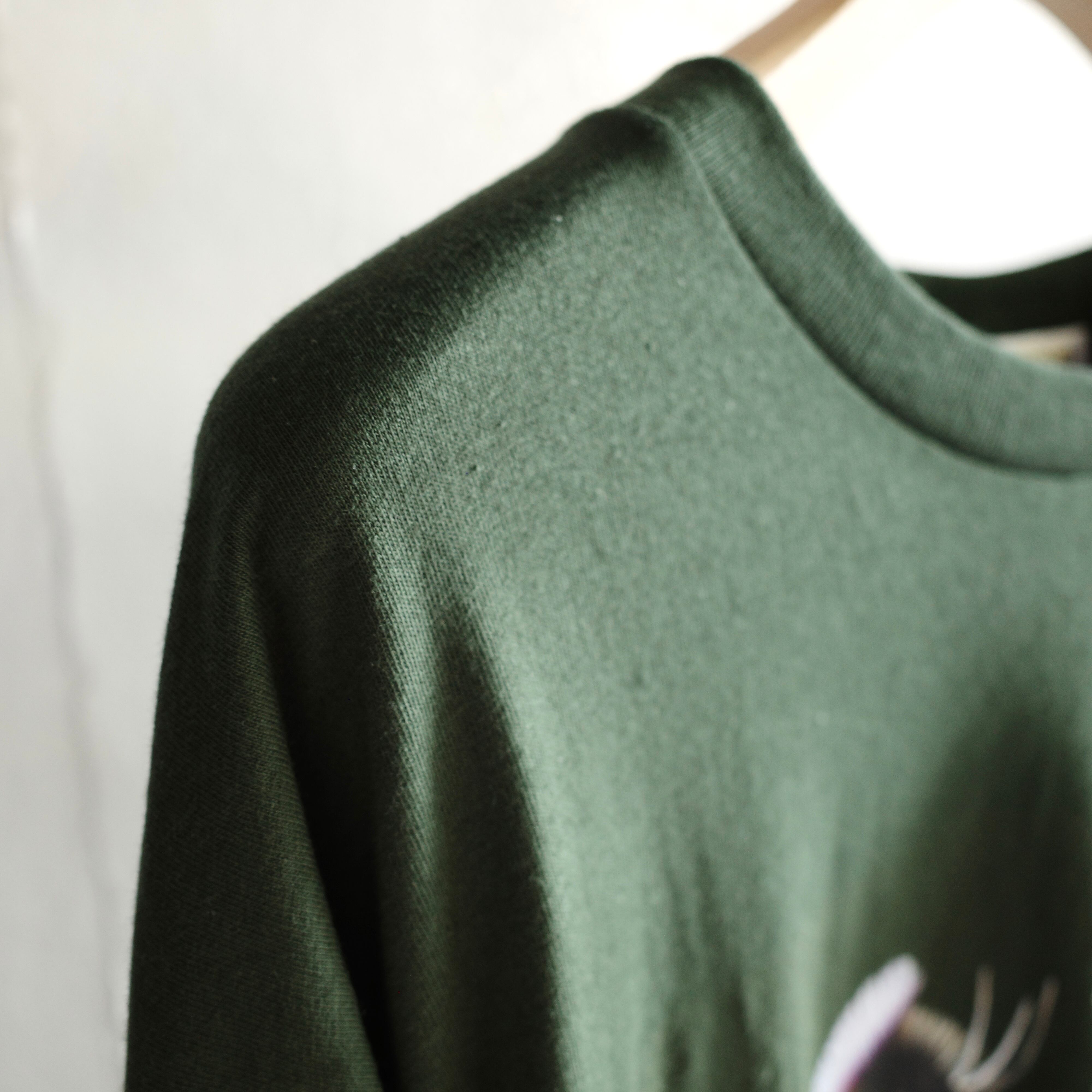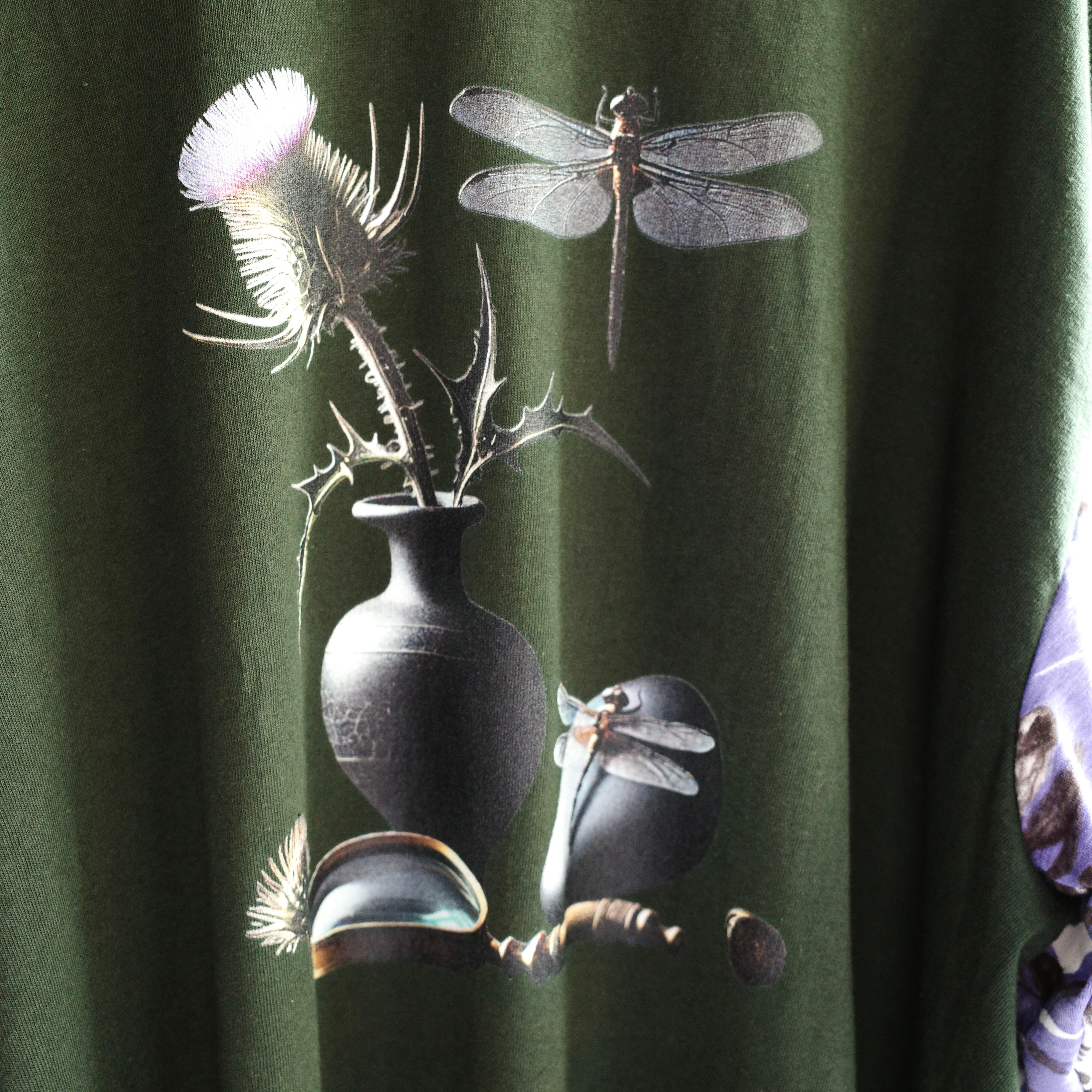 深みのあるダークグリーンをベースに、アーティスティックなプリントが映えるロングスリーブTシャツ。
