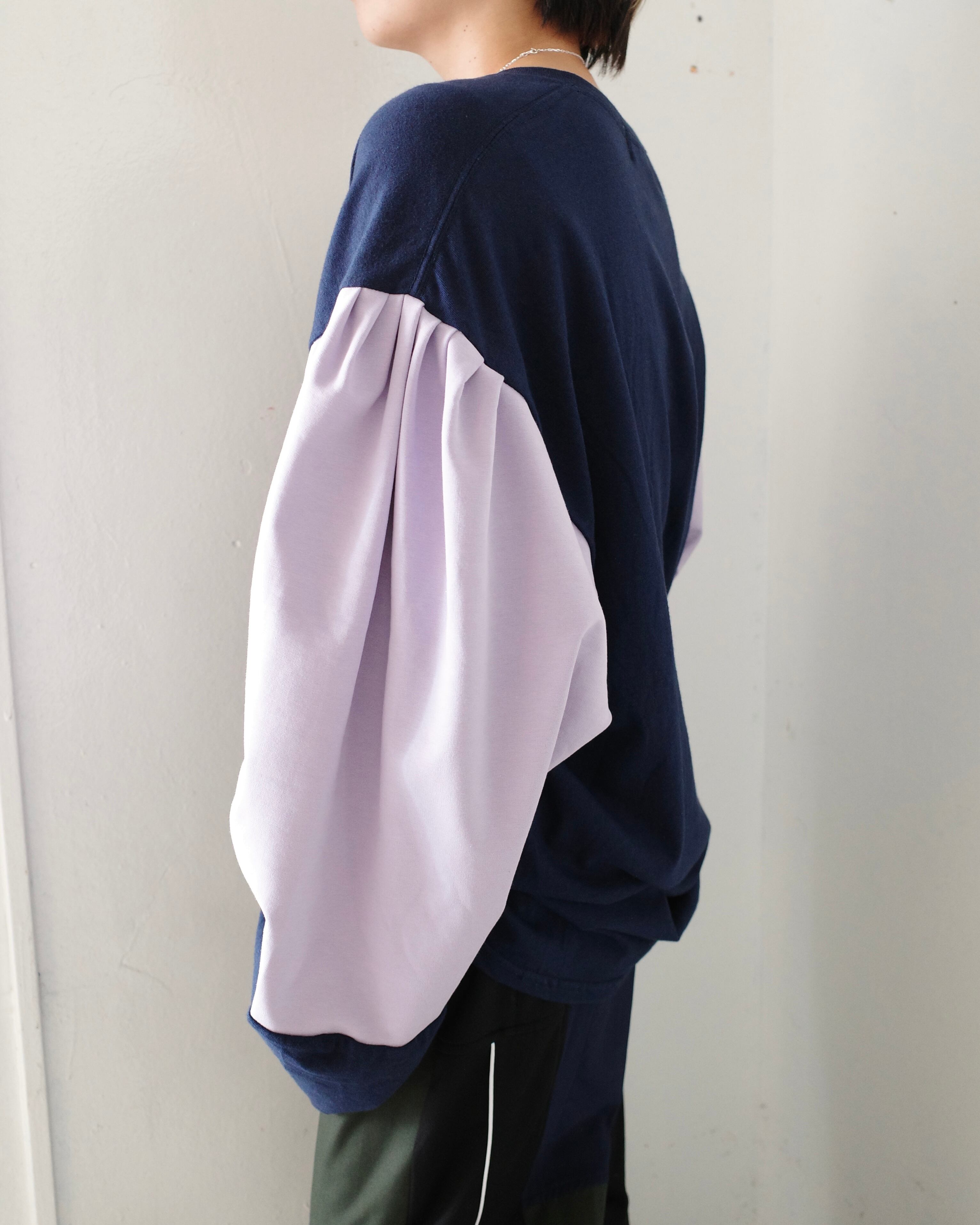 程よくリラックス感のあるシルエットで、単体での着用はもちろん、ジャケットやアウターのインナーとしても存在感を発揮。芸術的でありながらデイリーに取り入れやすい一枚です。