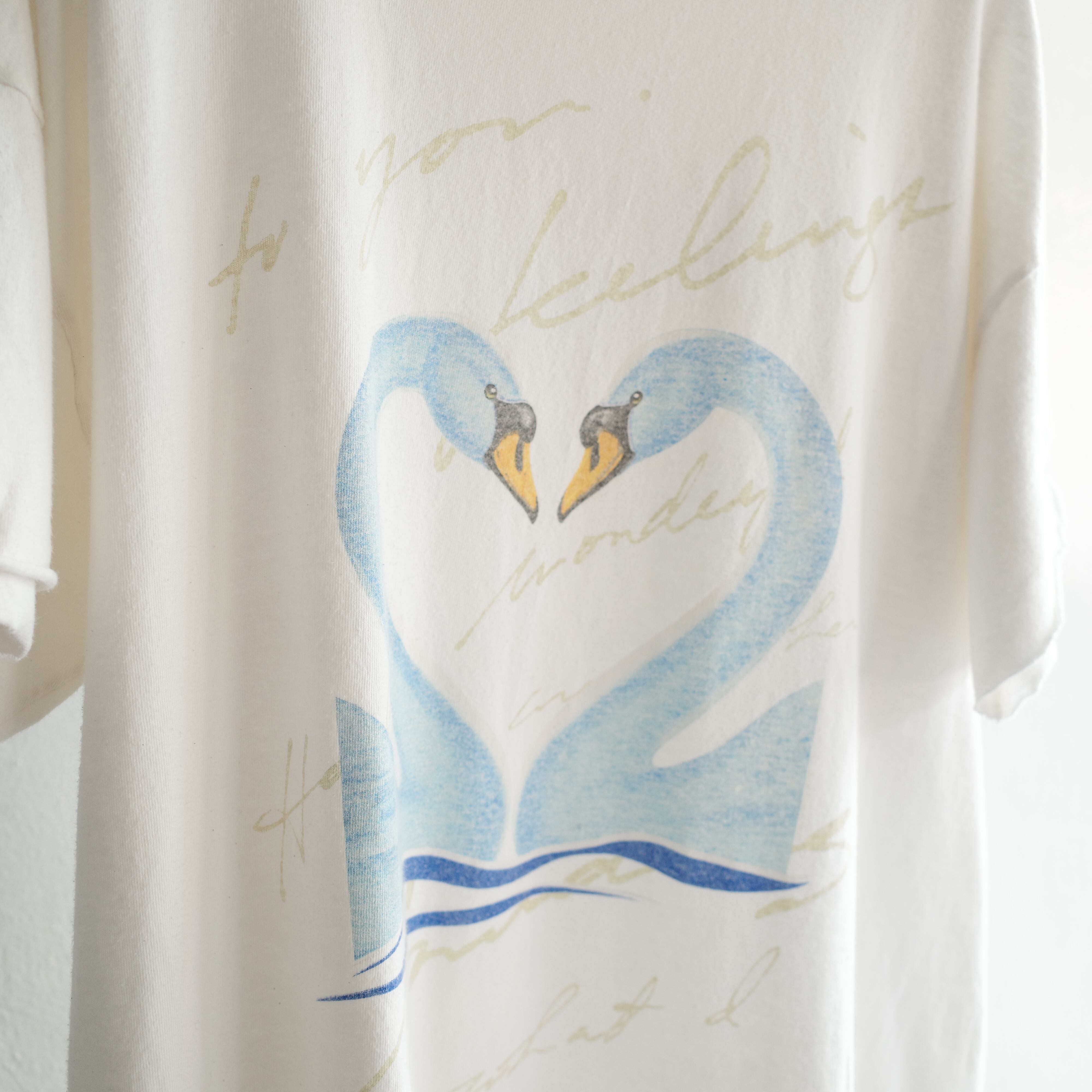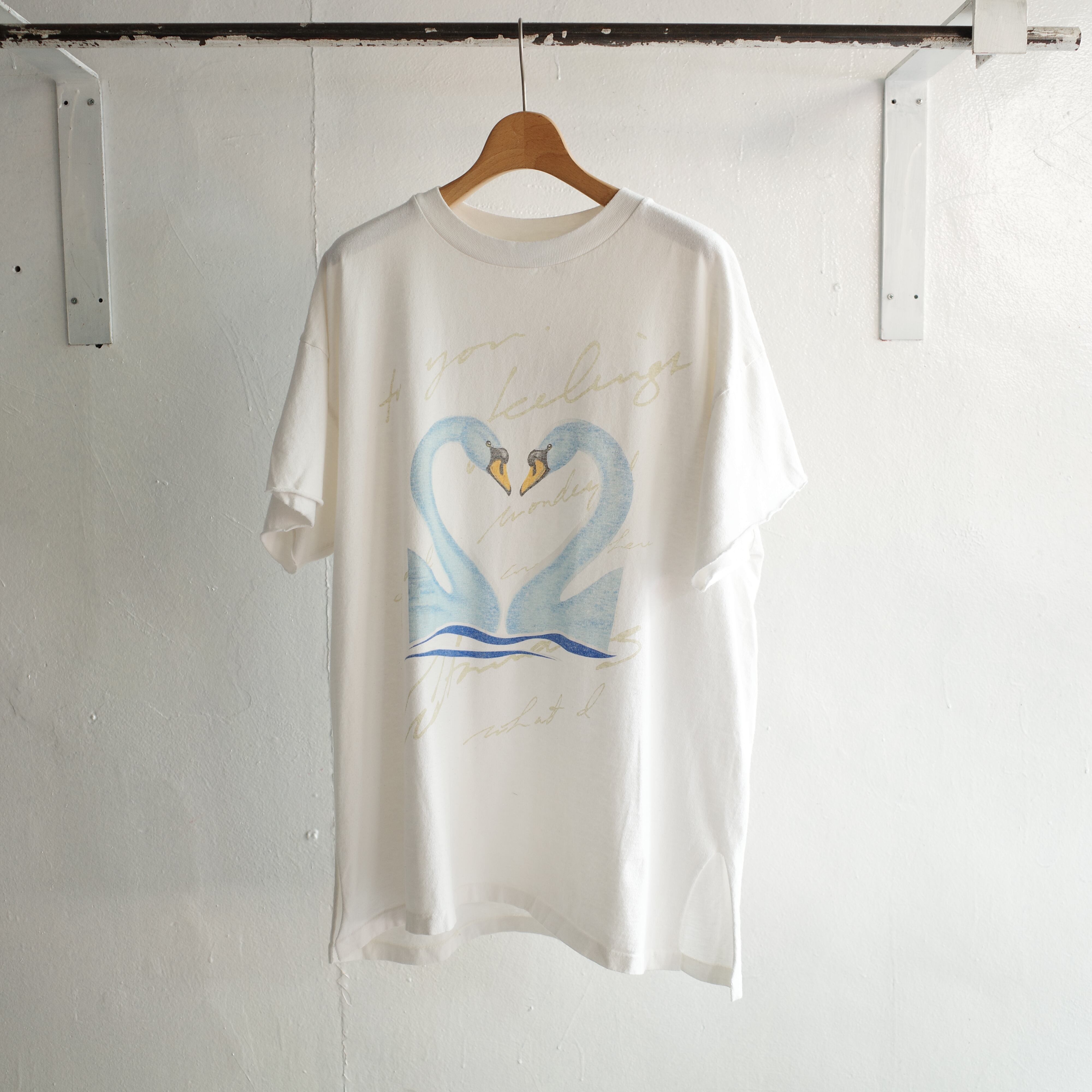 白地に美しくプリントされた2羽のスワンが印象的なロングスリーブTシャツ。