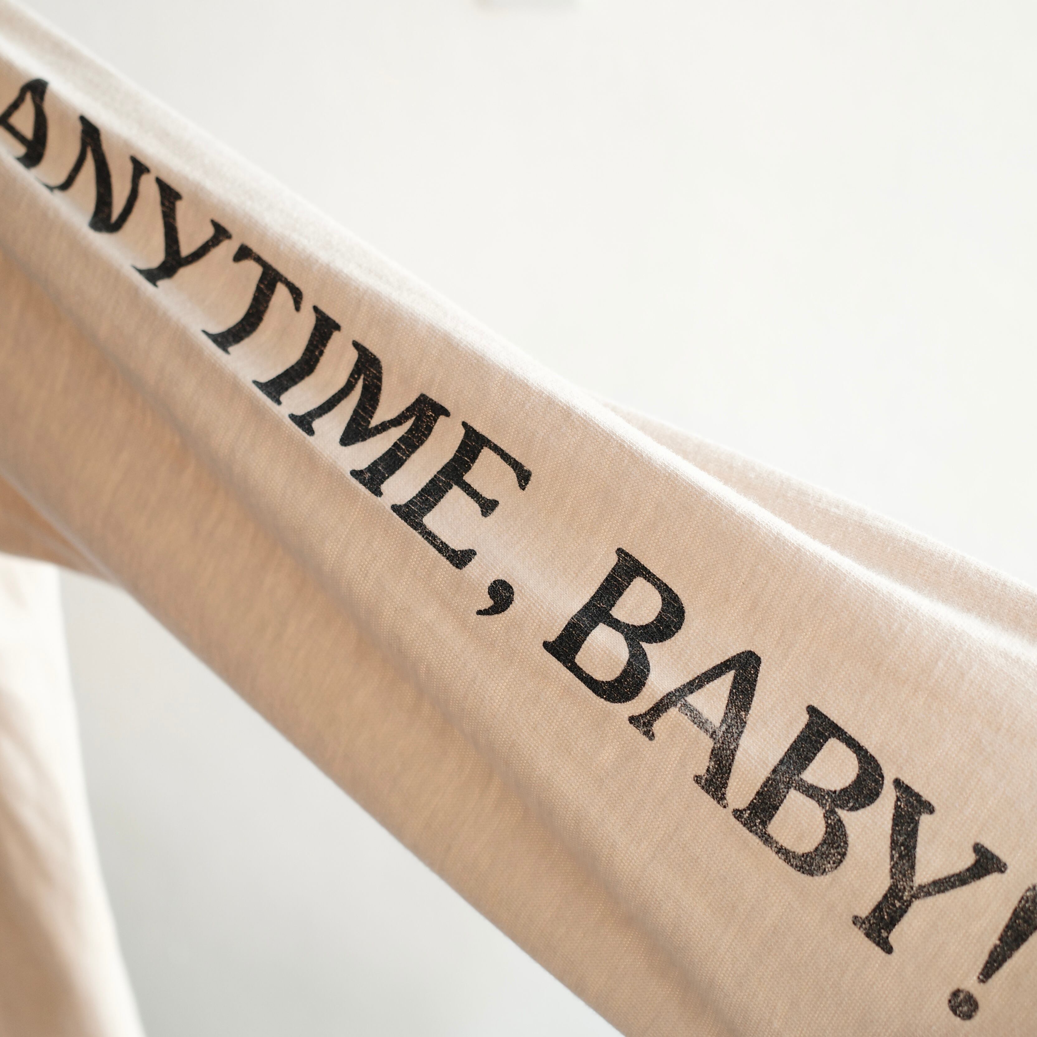 さらに両袖には「ANYTIME, BABY!」の文字が入り、ミリタリームードを強調。