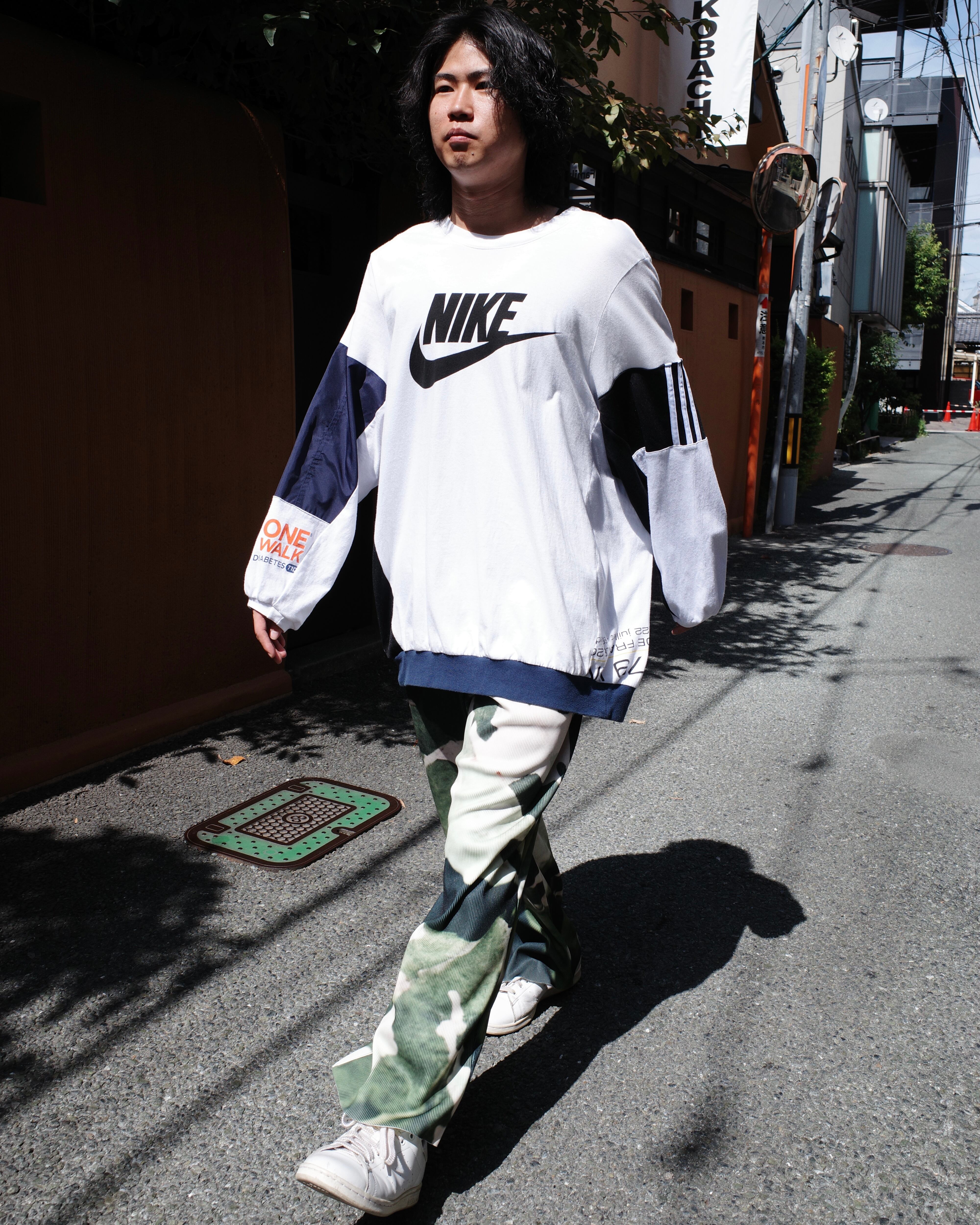 ユーズドTシャツをベースに、当店にてリメイクを施した一点物。
