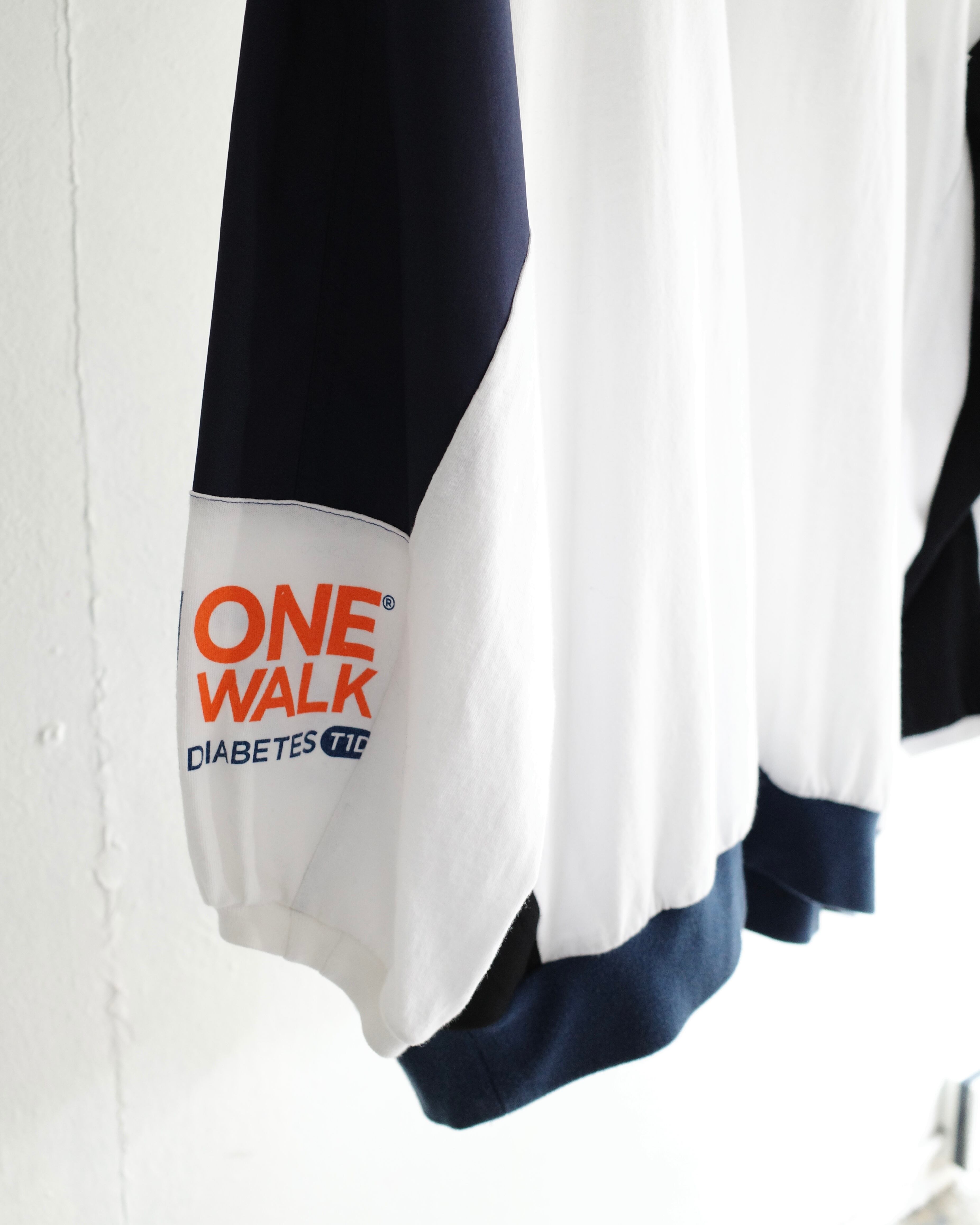 ホワイト×ブラック×ネイビーの切り替えデザインがアクセントになっており、ストリートスタイルからカジュアルまで幅広く活躍。