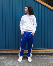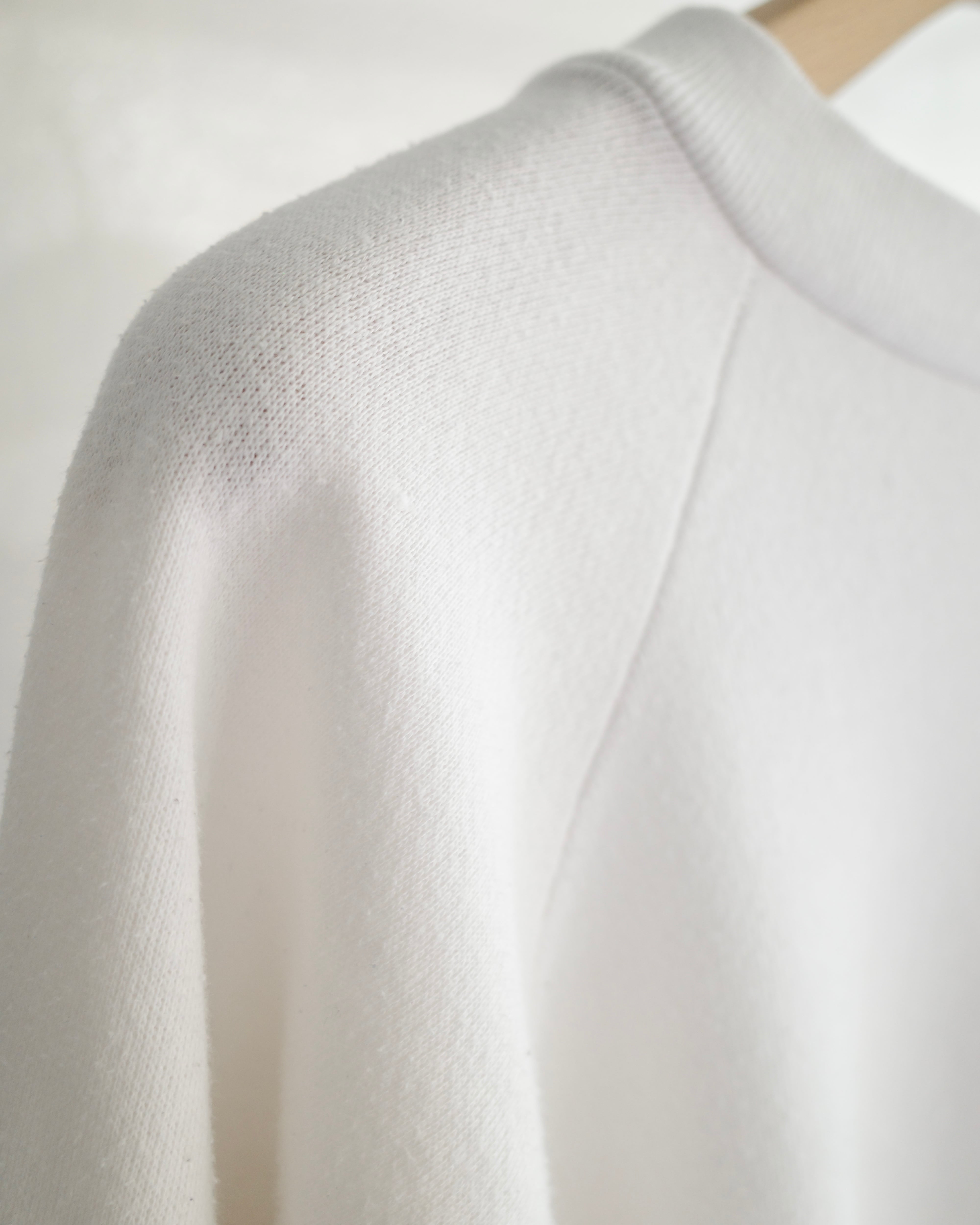 ラグランスリーブで肩周りもリラックス感があり、ホワイトボディに映えるカラーリングが魅力。