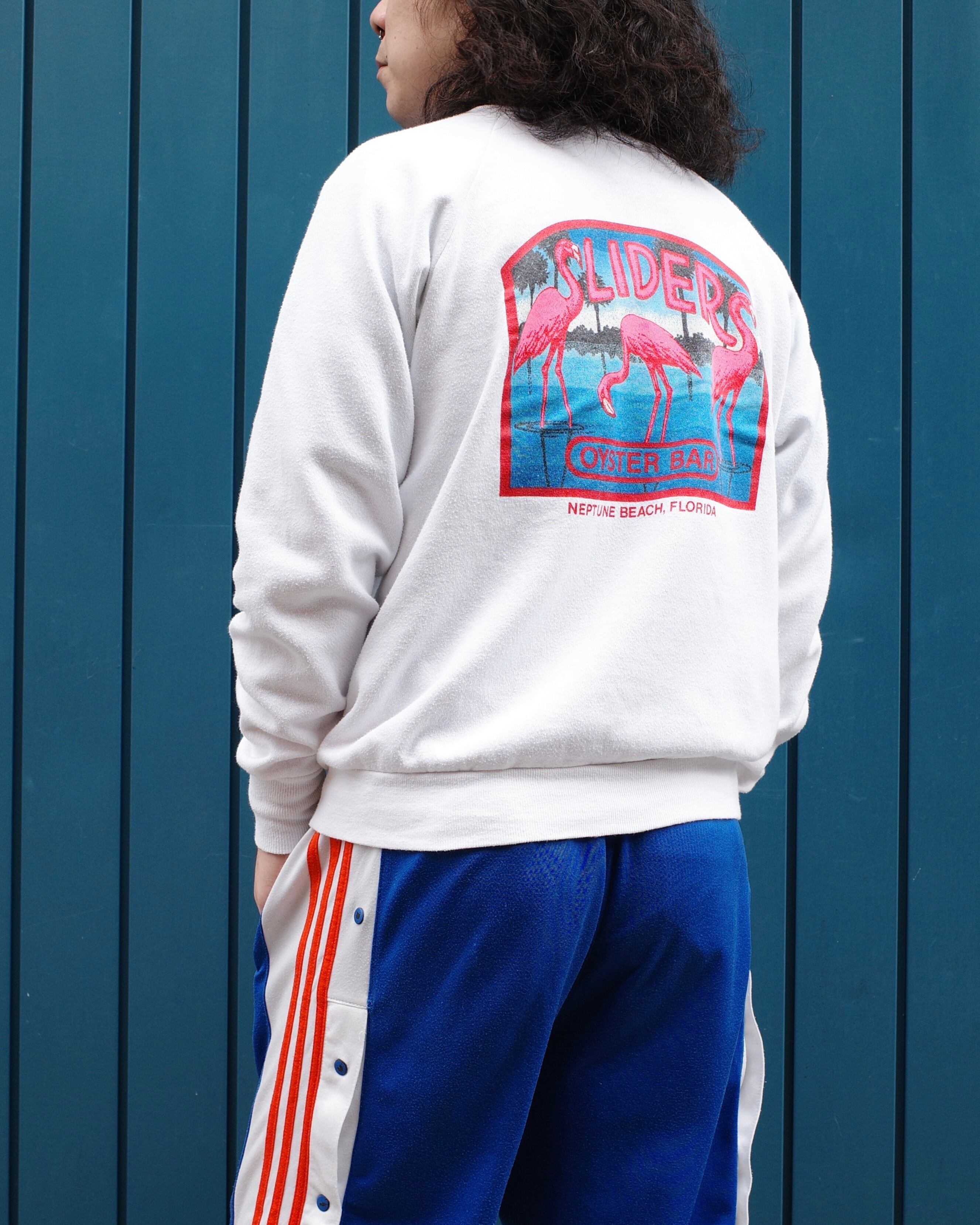 “SLIDERS Oyster Bar” Flamingo Print Sweatshirt