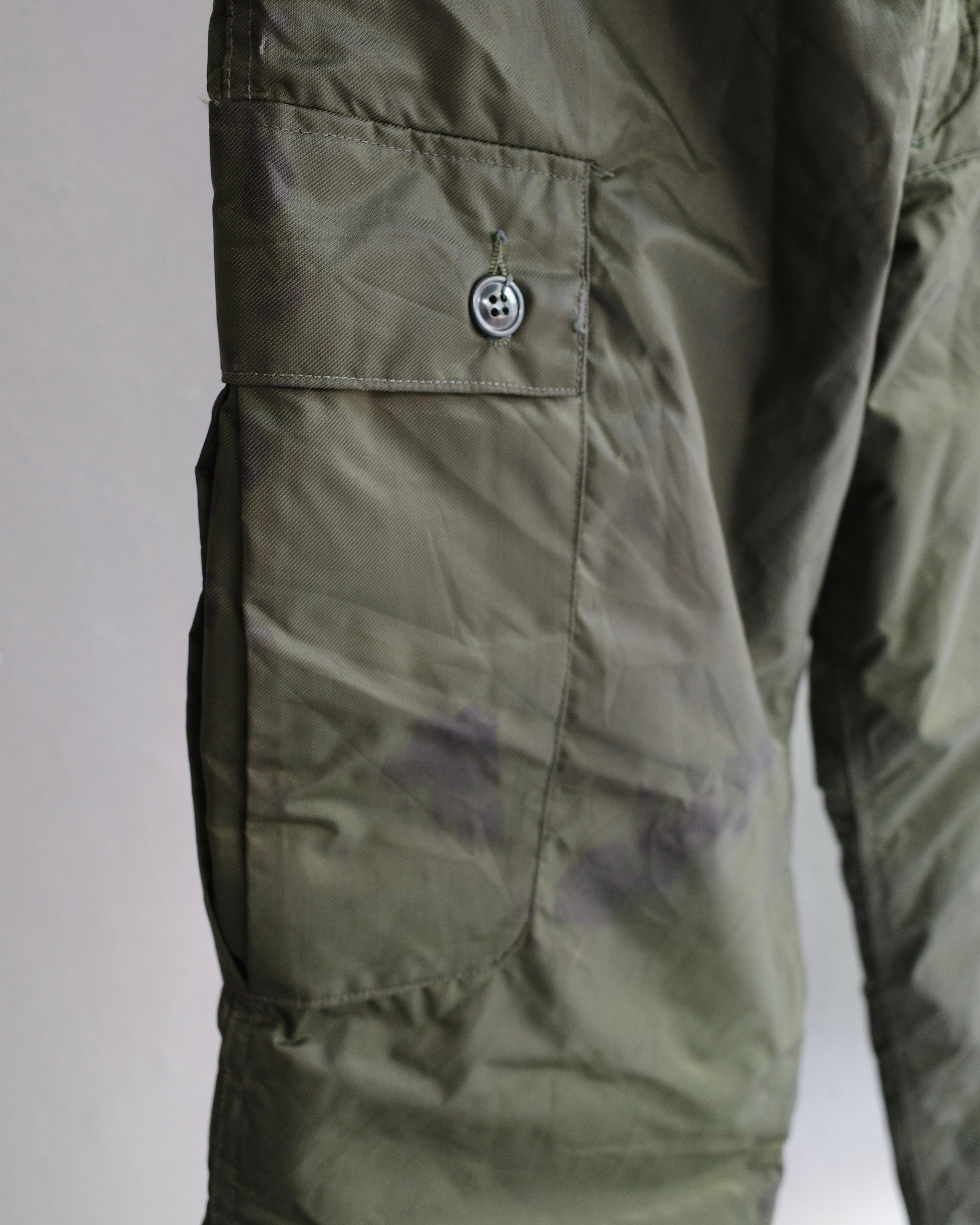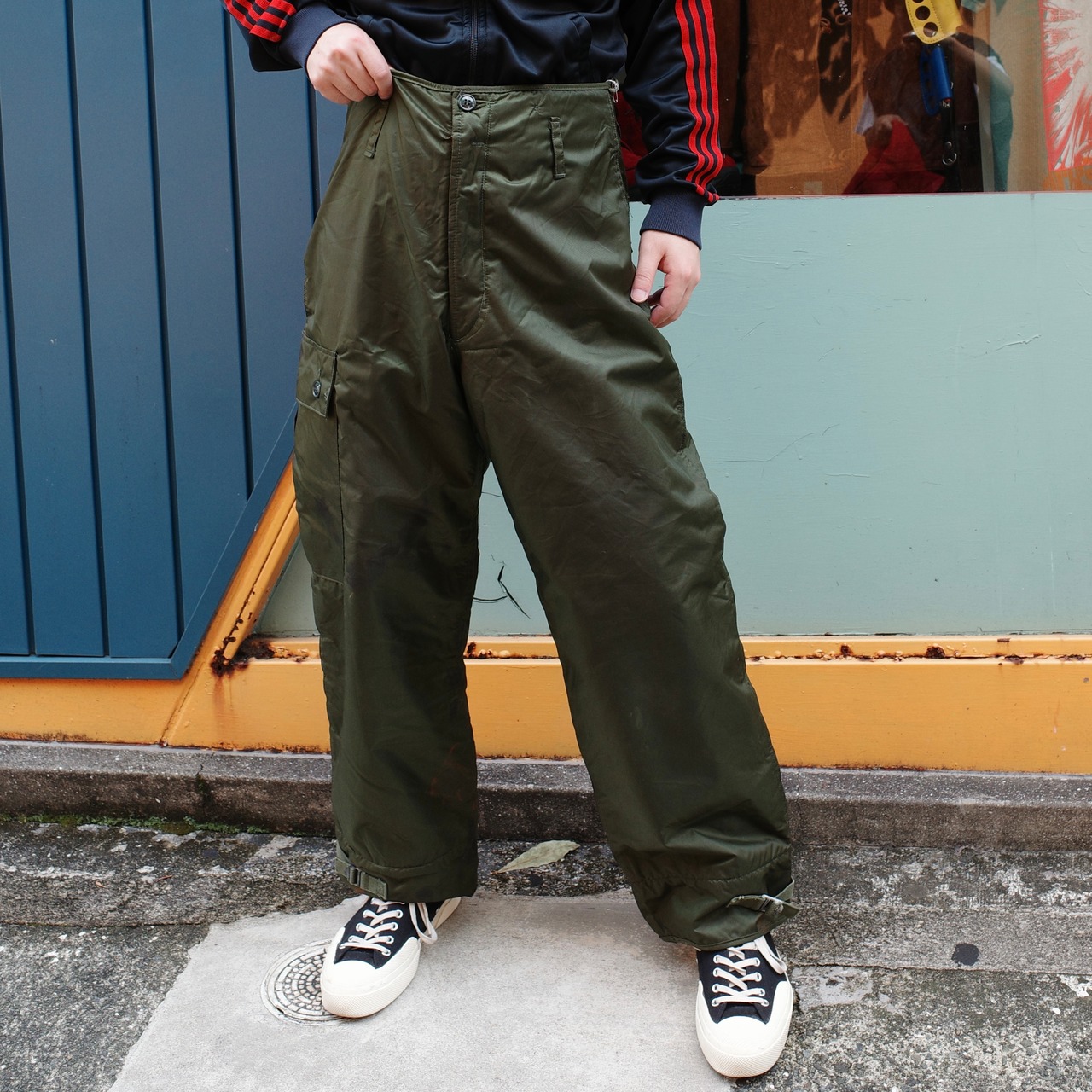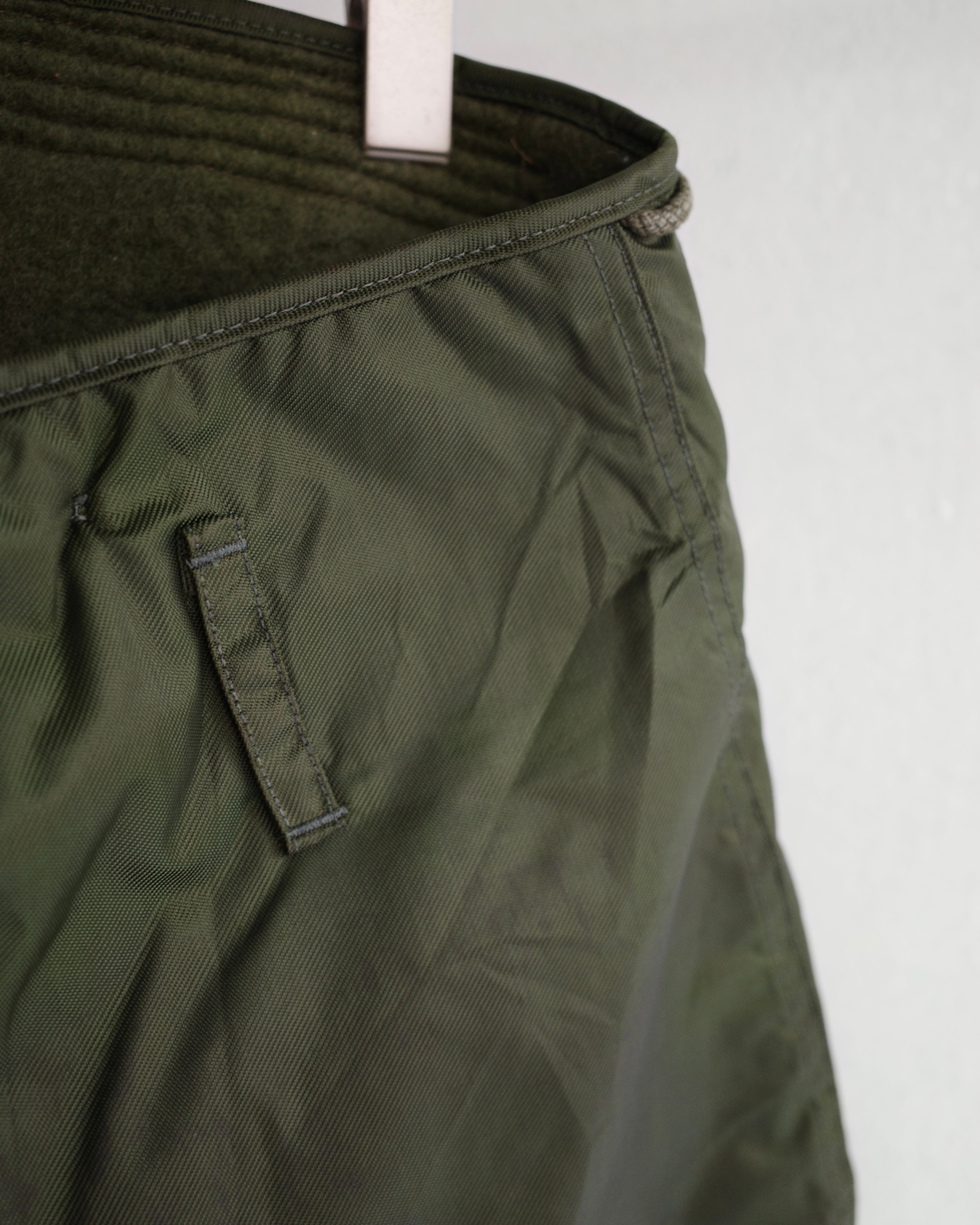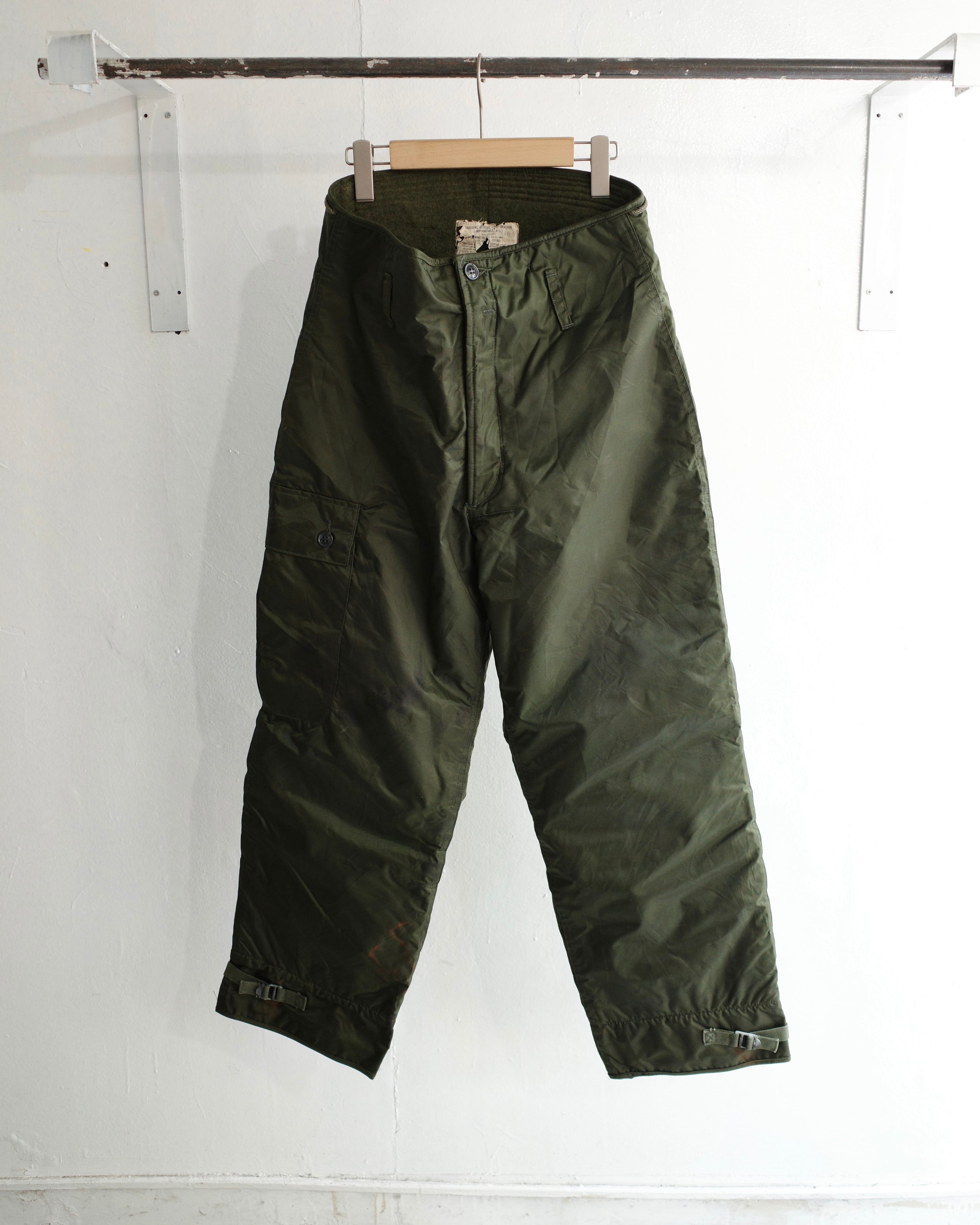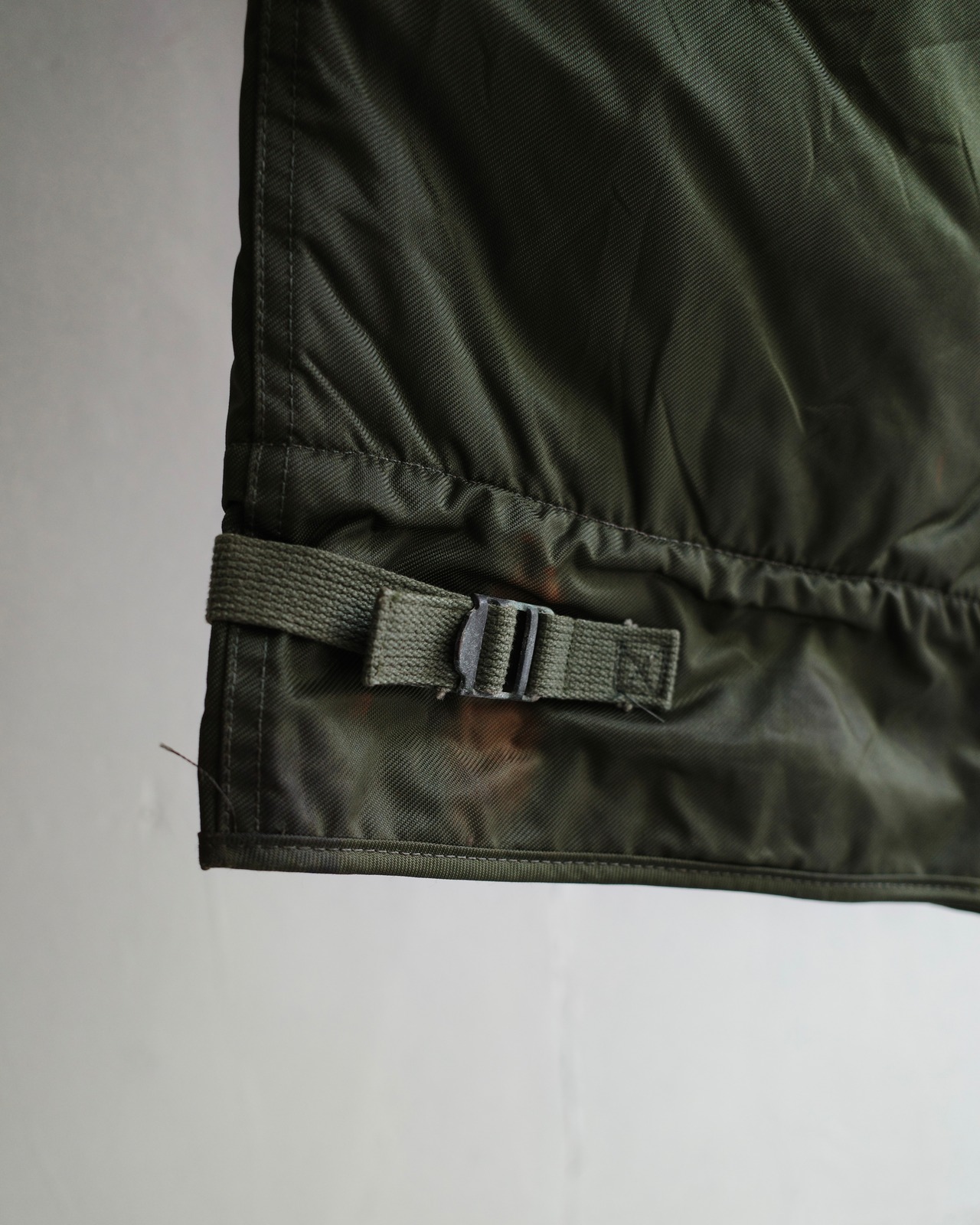 極寒地用に設計されたモデルで、ナイロンシェルと起毛ライニングによる高い防寒性が特徴です。裾にはバックル式のアジャスターを備え、シルエットの調整も可能。カーゴポケットやステンシルプリントがミリタリーらしい無骨な表情を残しています。