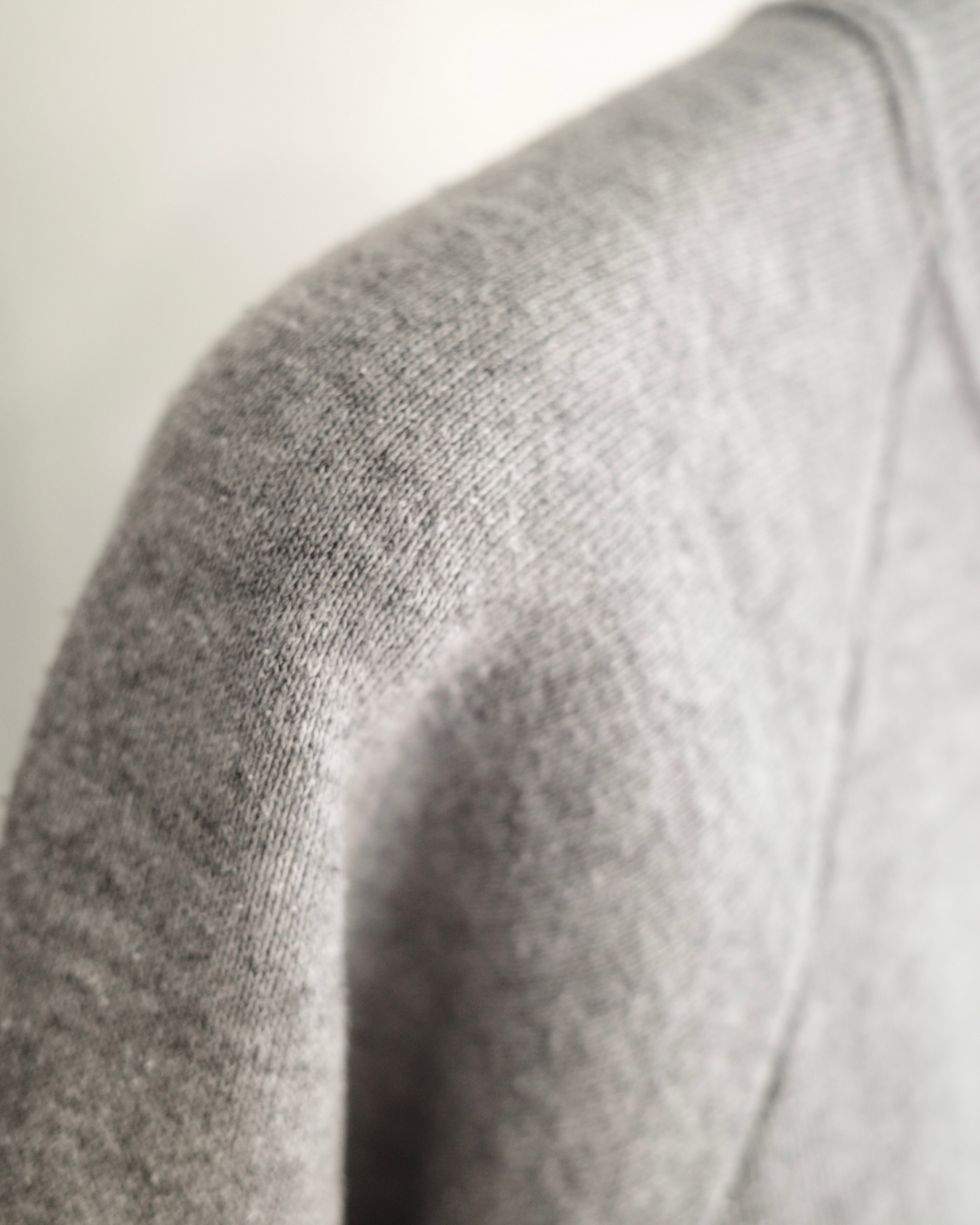 程よい厚みのあるコットン×ポリエステル生地で、ラグランスリーブ仕様。
