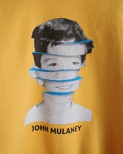 鮮やかなイエローボディに、ジョン・ムレイニーのグラフィックが大胆にプリントされた古着スウェット。
