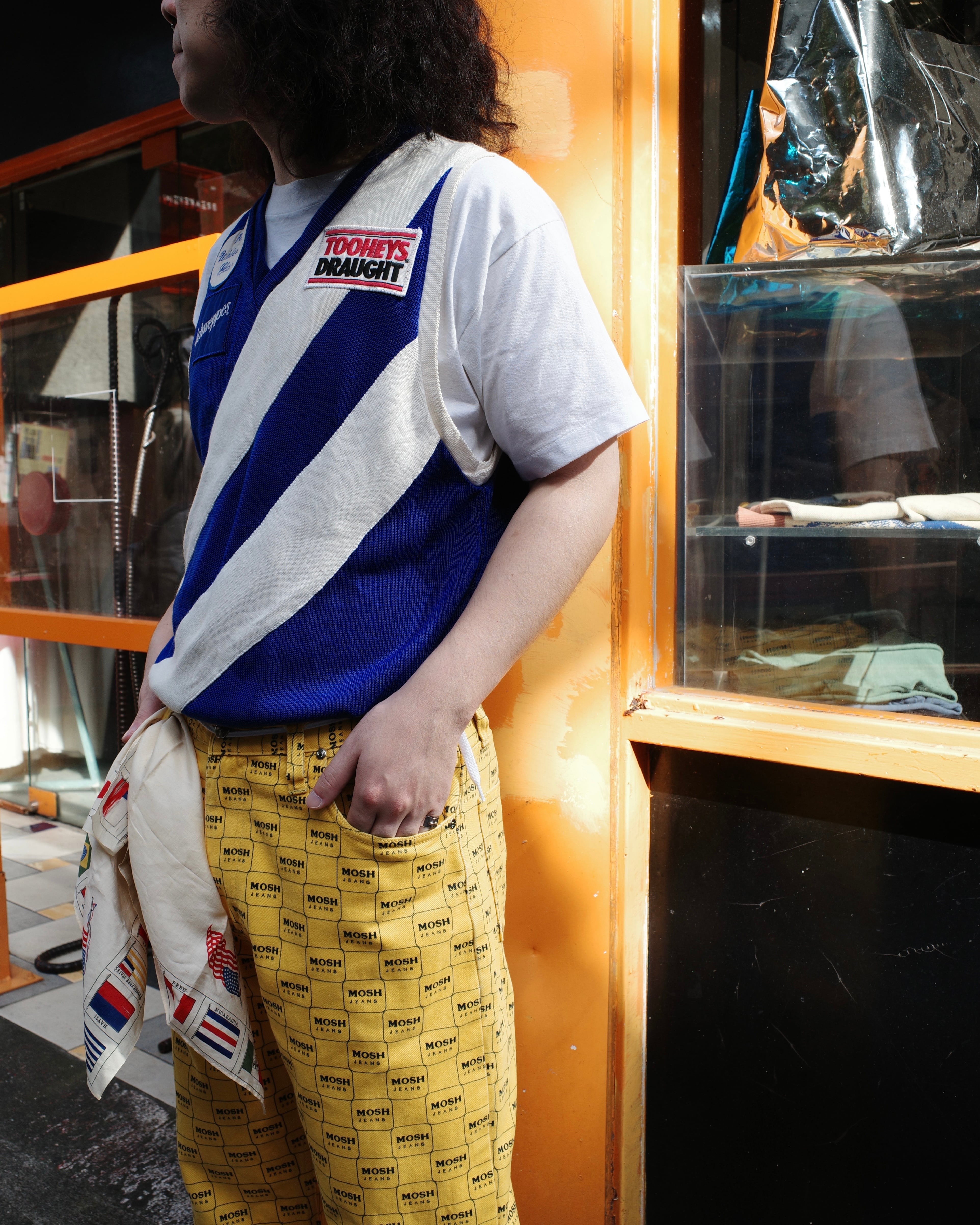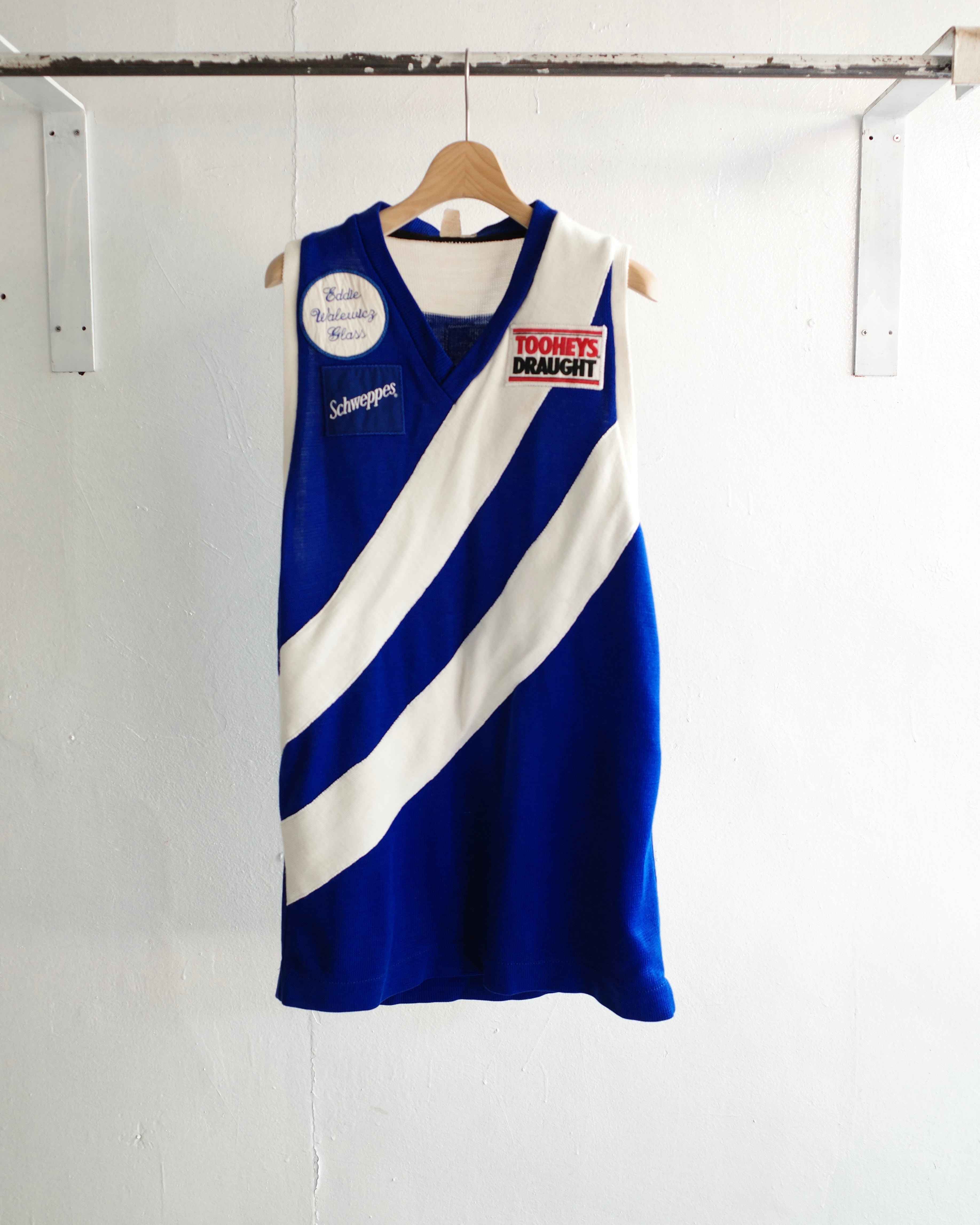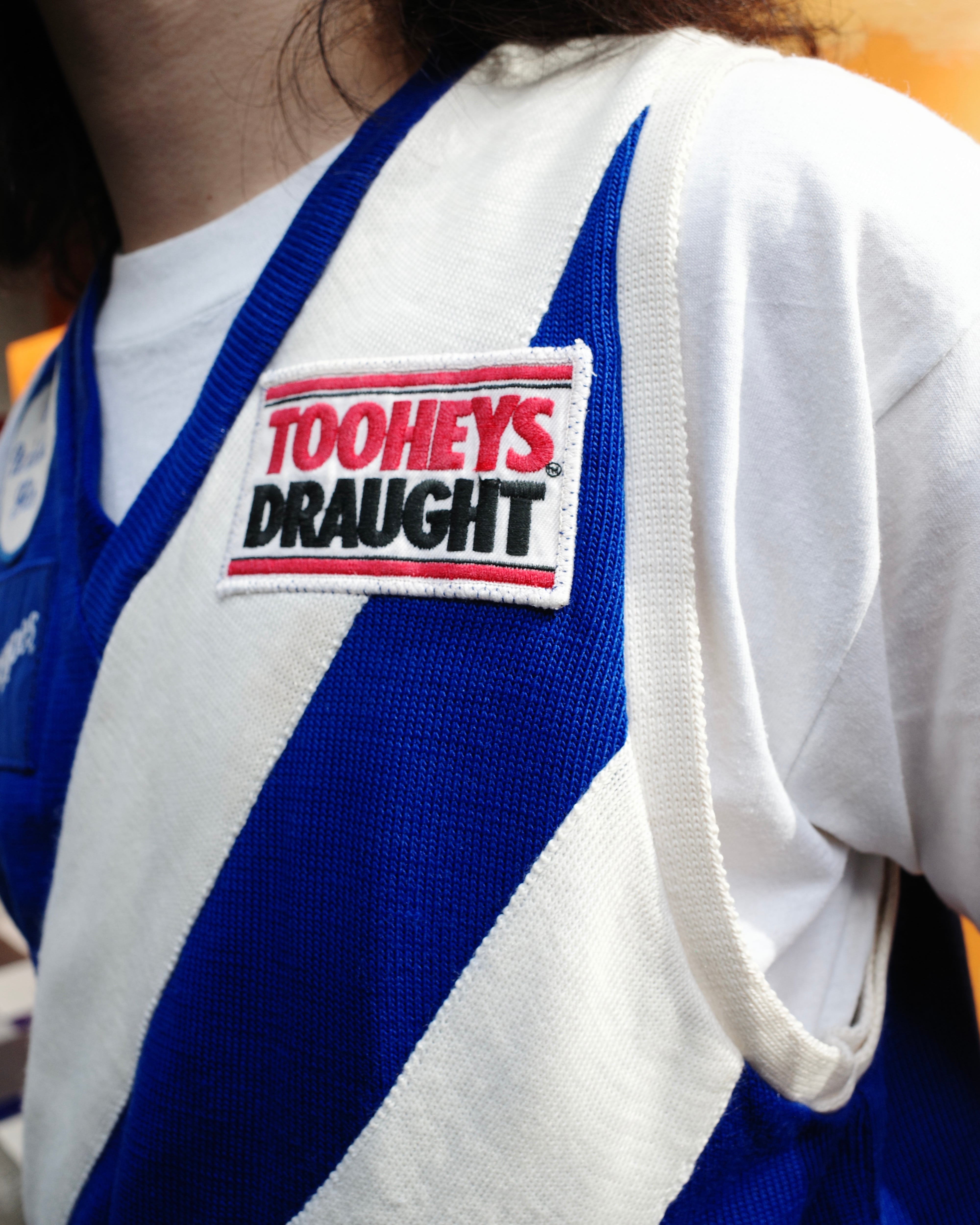 胸にはSchweppes、Tooheys Draught、Eddie Walewicz Glassのパッチが付き、背面にはナンバーパネル風の切り替えを配置。