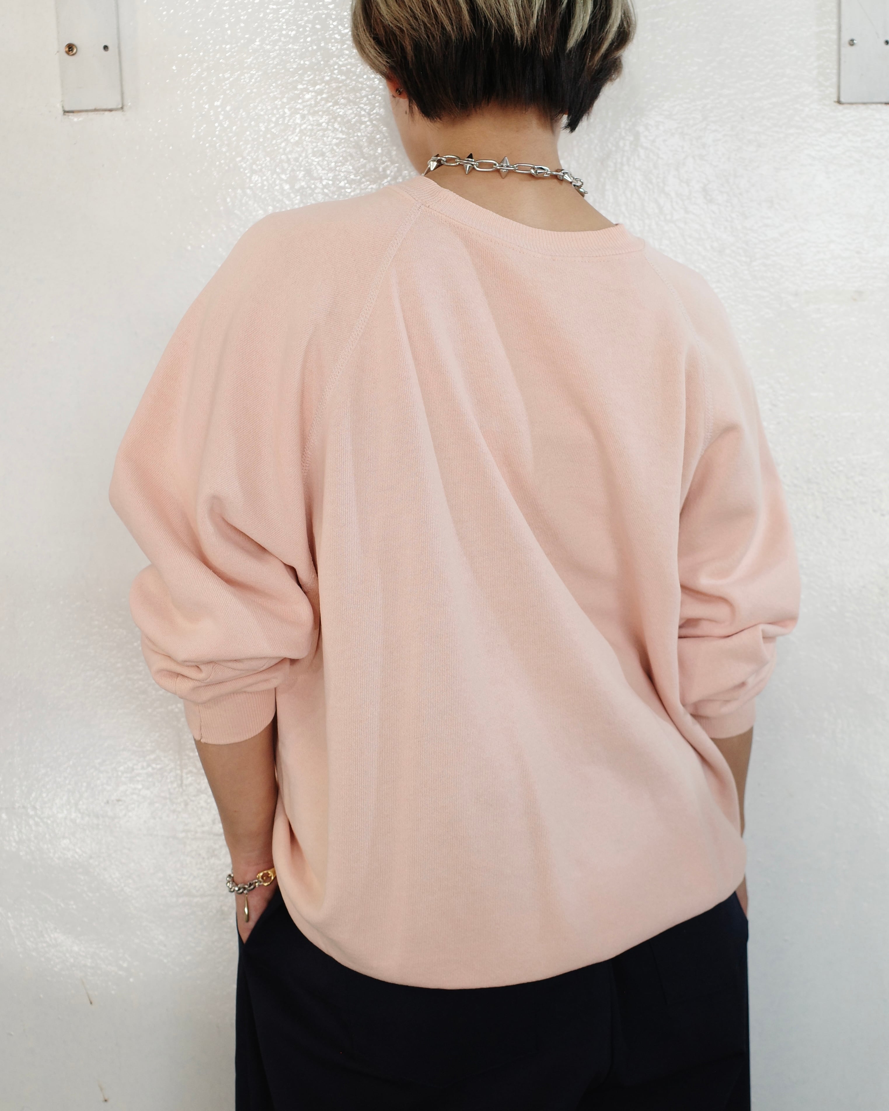 淡い色調のプリントとラグランスリーブで、抜け感のあるアメリカン・ヴィンテージらしい雰囲気に仕上がっています。