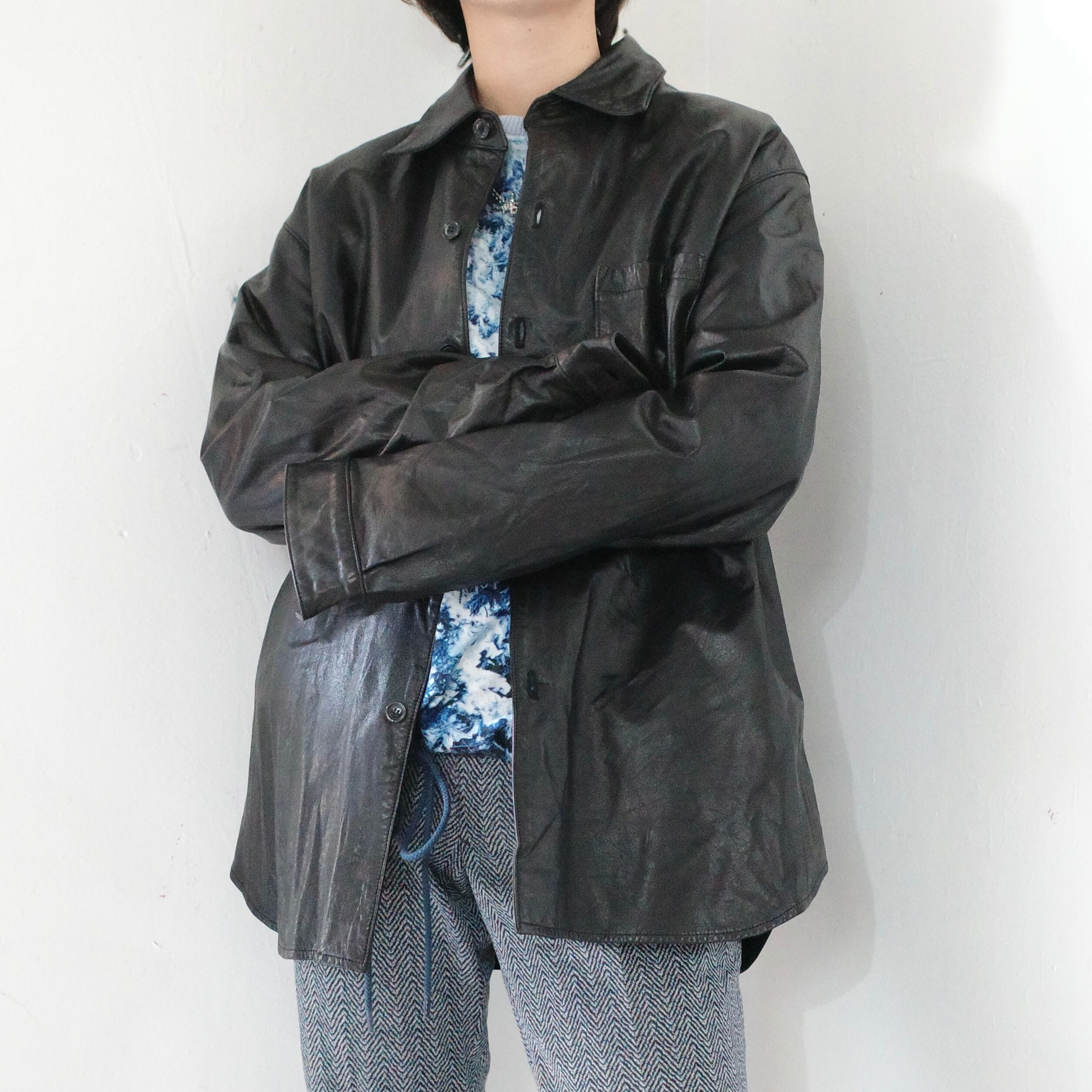 ブラックレザーシャツジャケット。