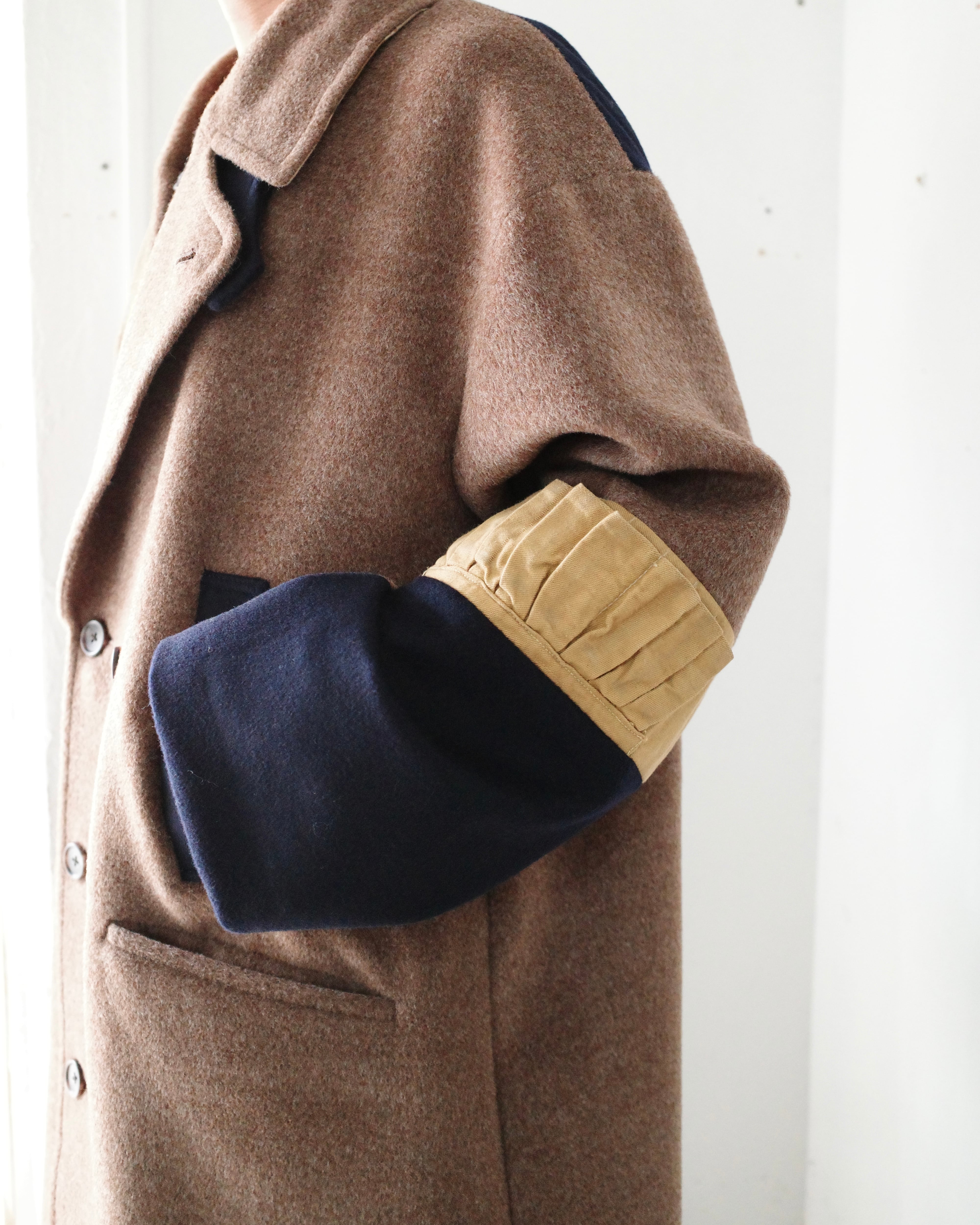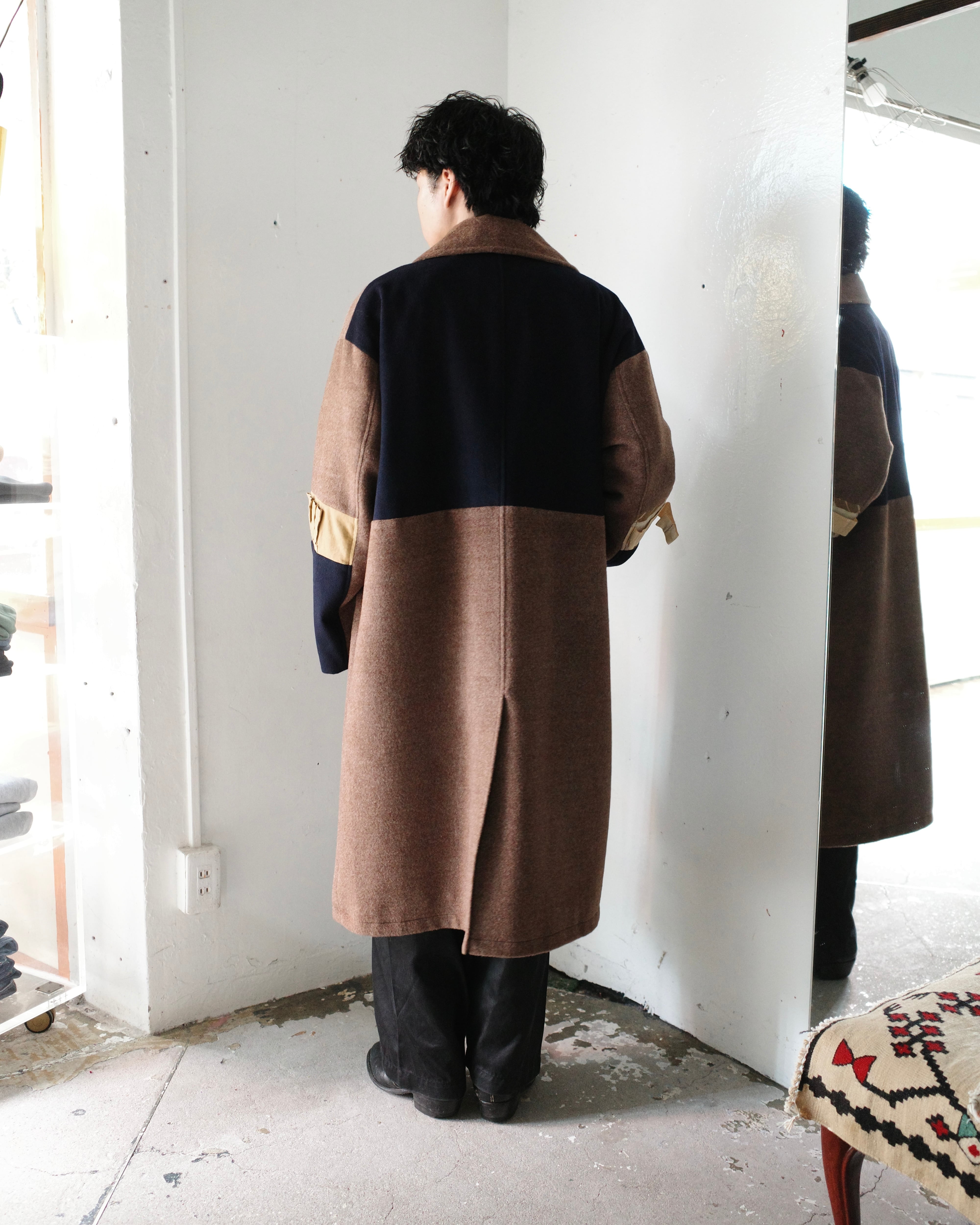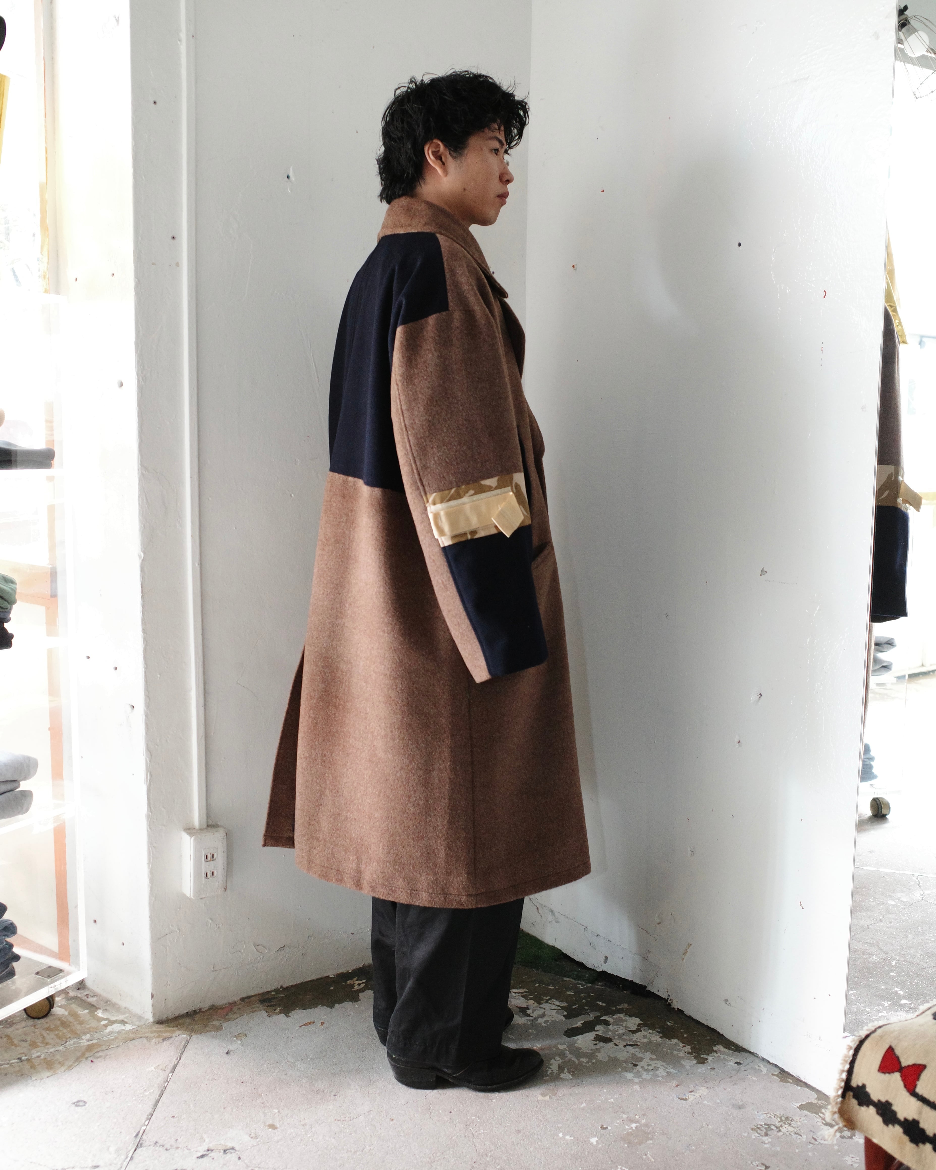 アルパカ70%、ウール30%の”MOON”と名付けられたデッドストック極上素材で仕立てたPコート。