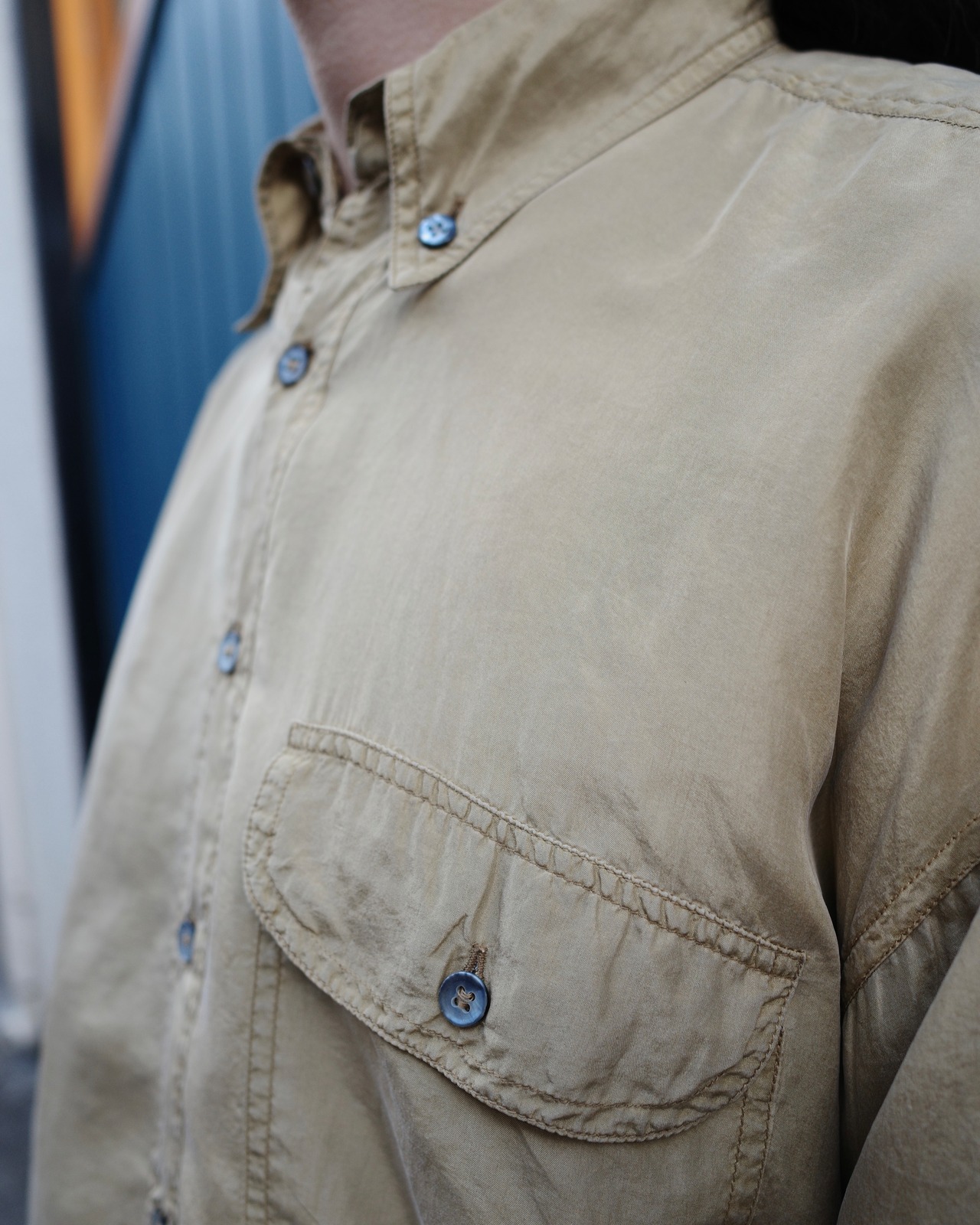 ウォッシャブルシルクを使用したシャツ。