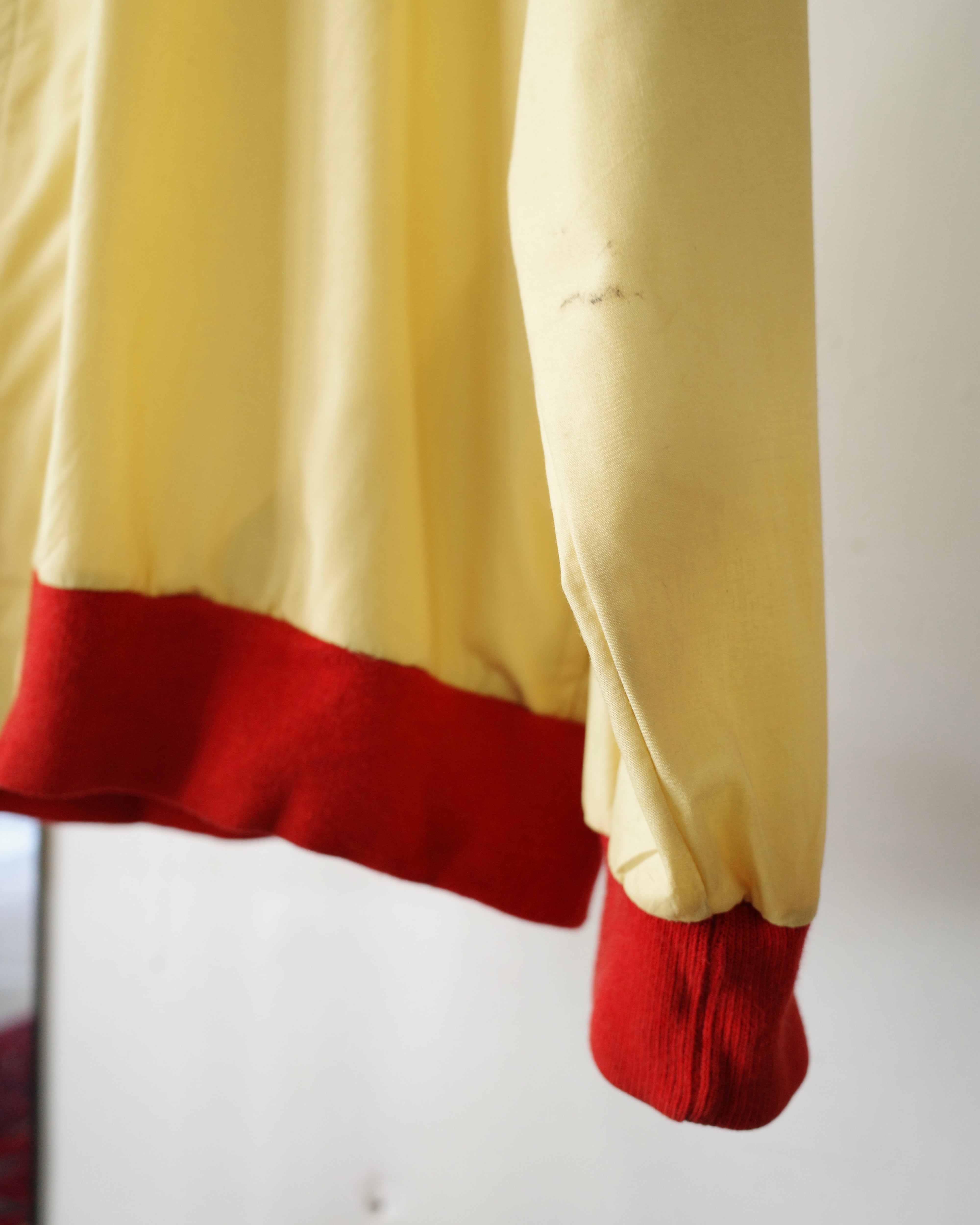 黄赤ツートーンカラーのコットンポリブルゾン
