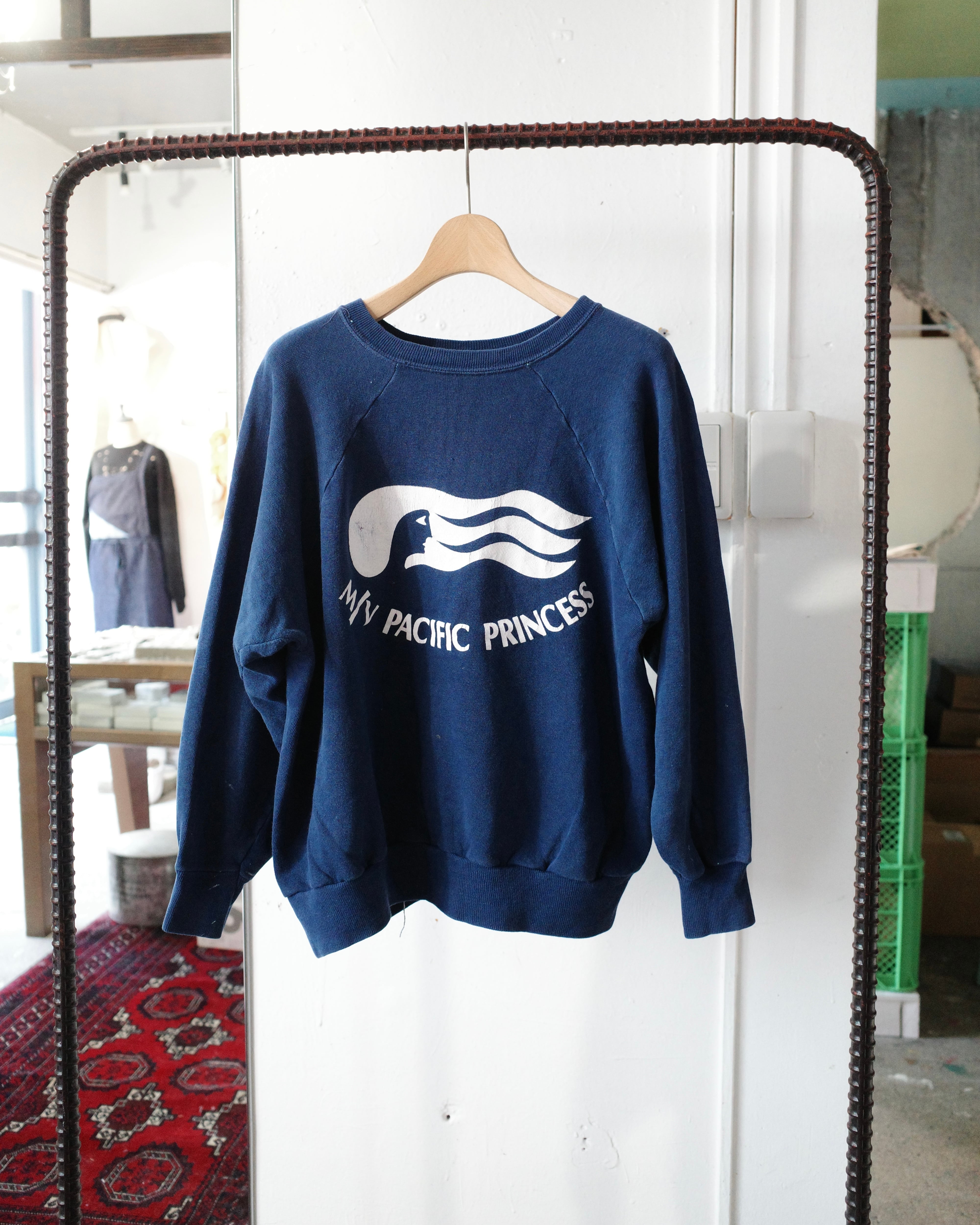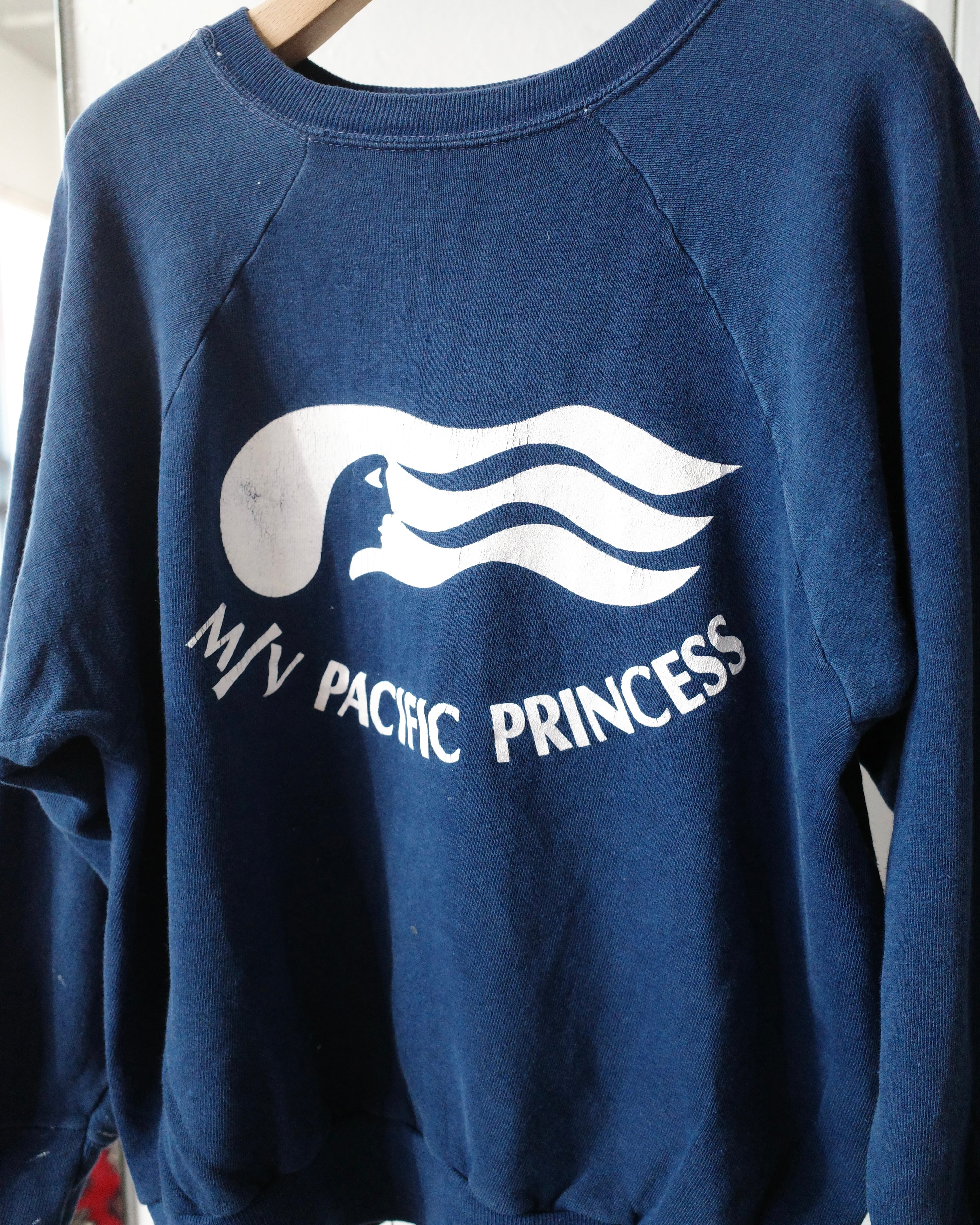 70s M/V PACIFIC PRINCESS Raglan Sleeve Navy Sweat Shirt