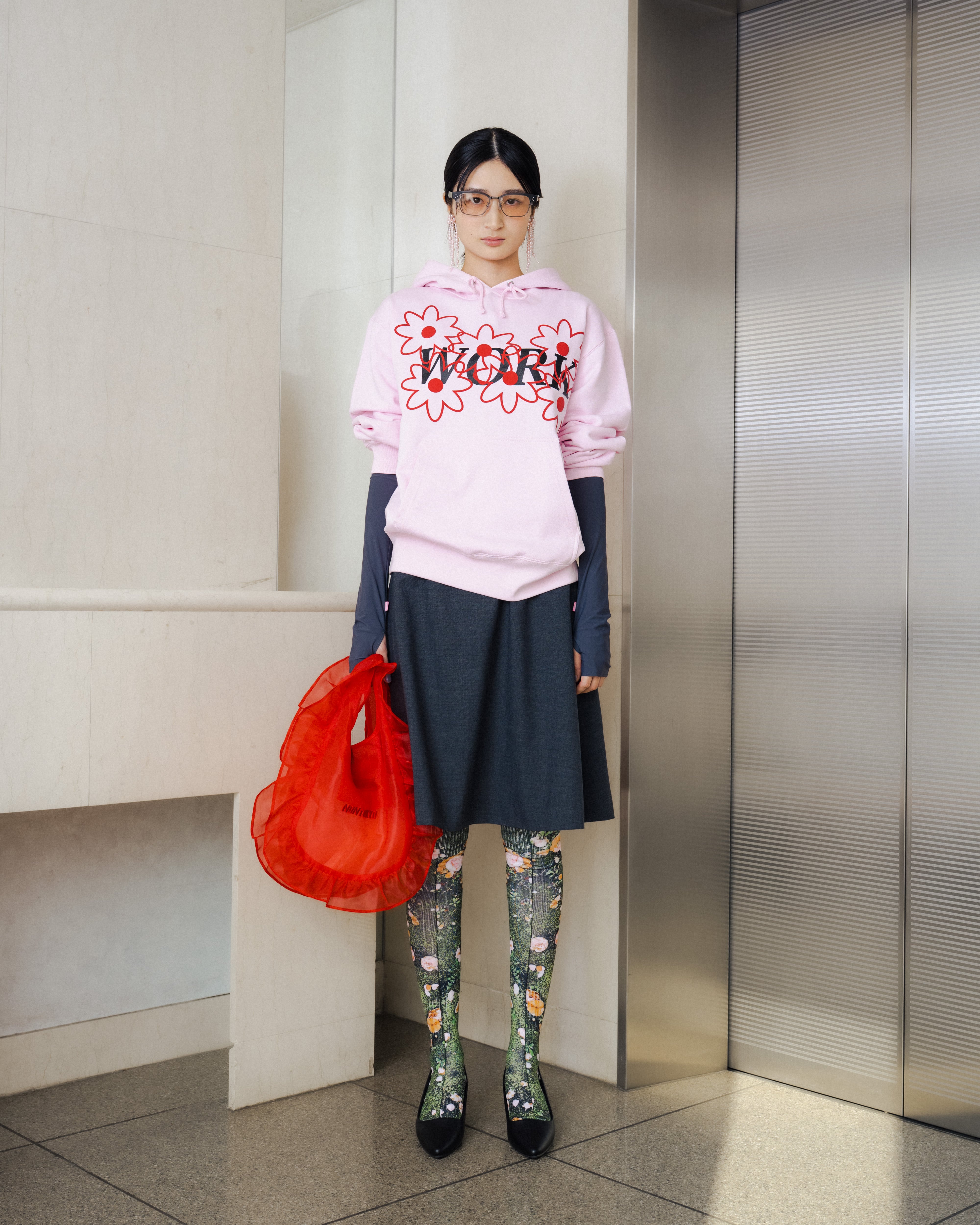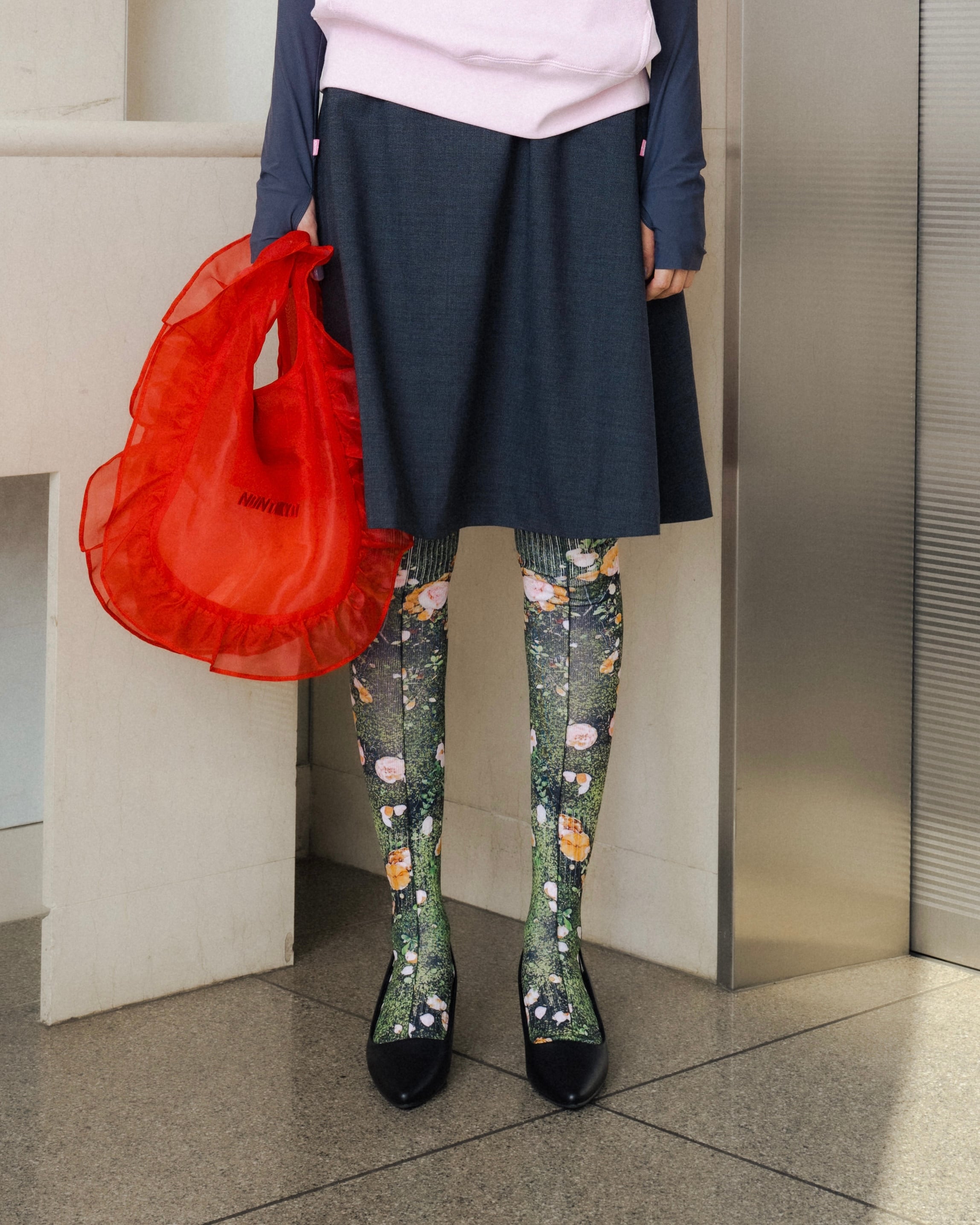 ダイレクト転写プリントを施した、存在感のあるロングソックス