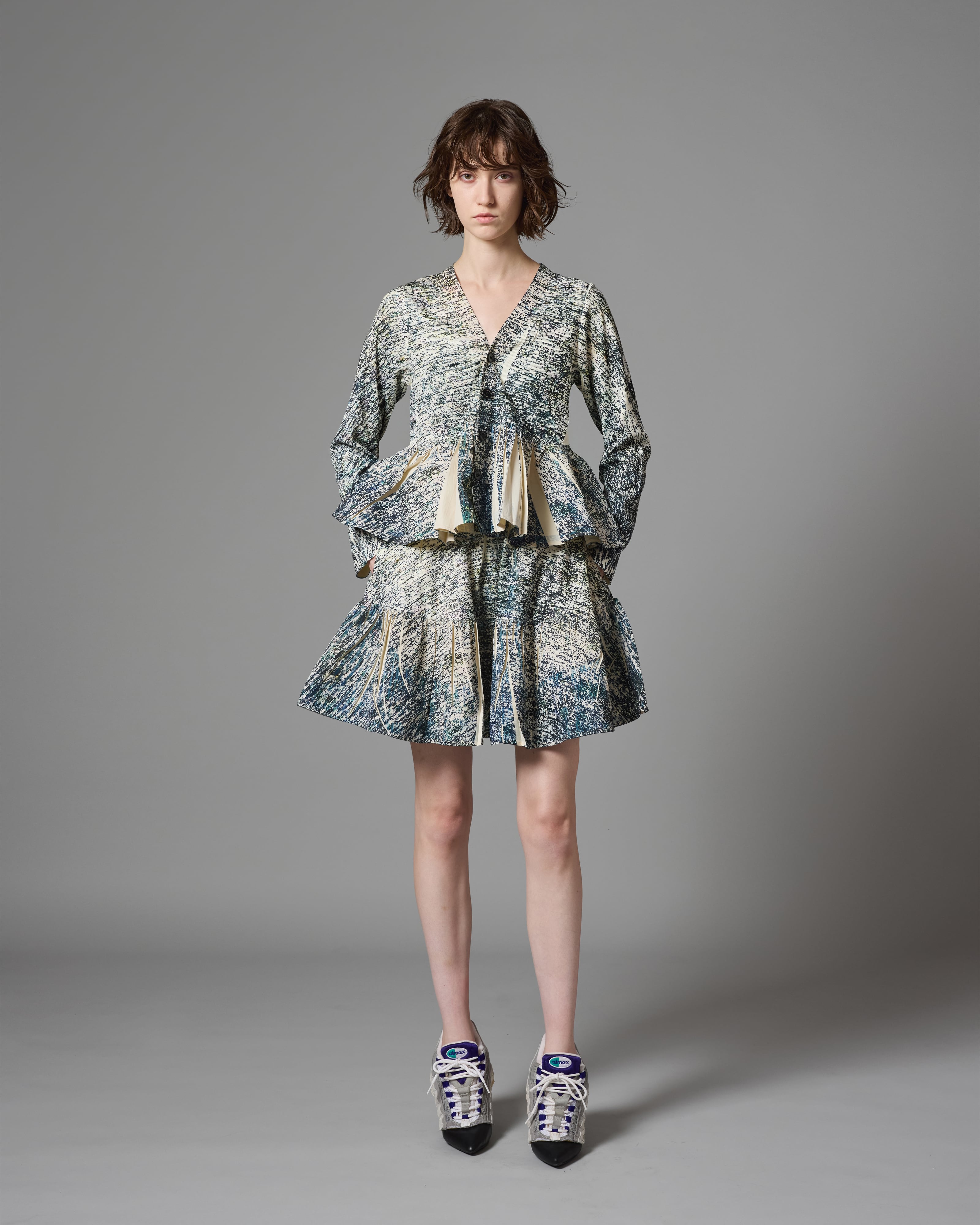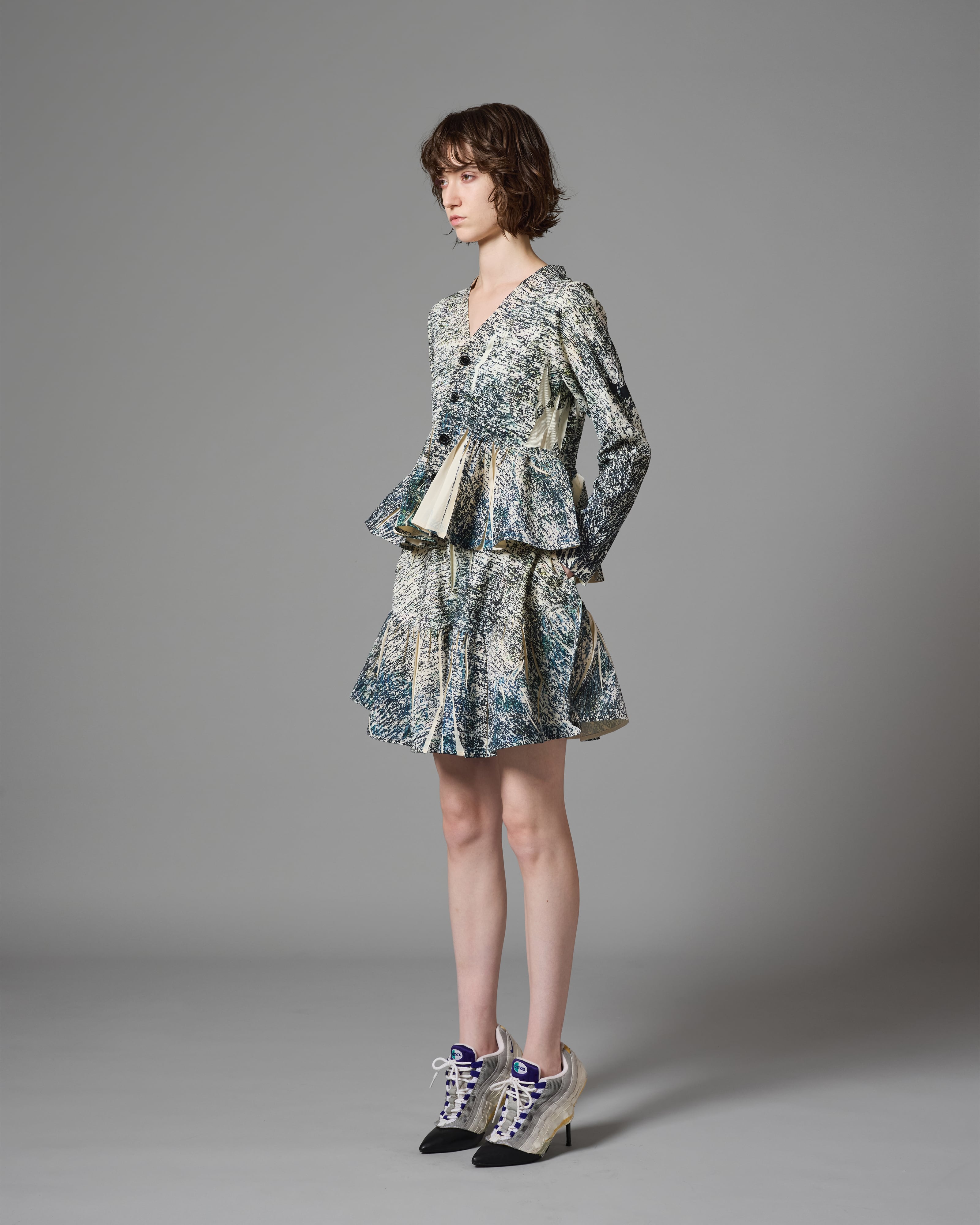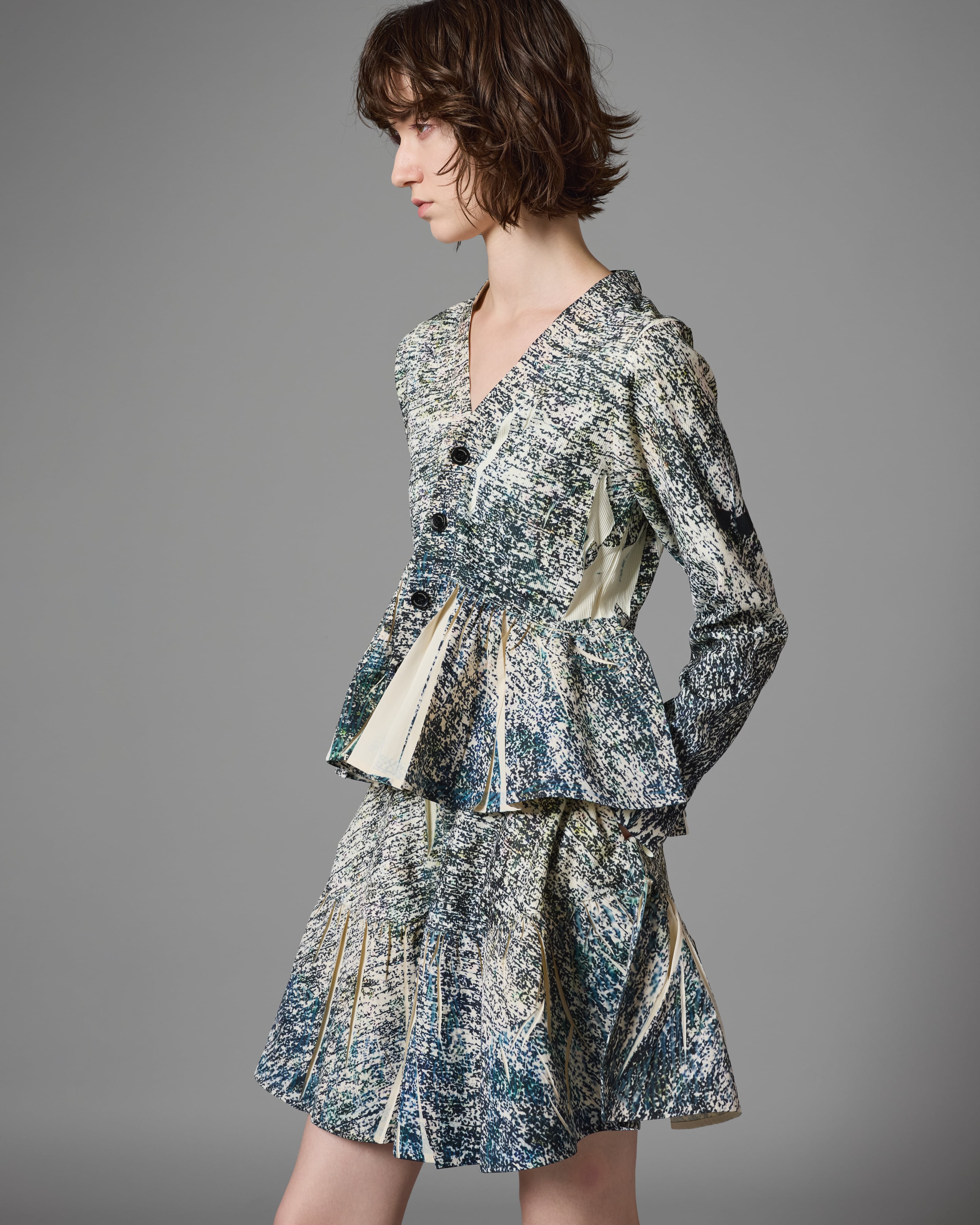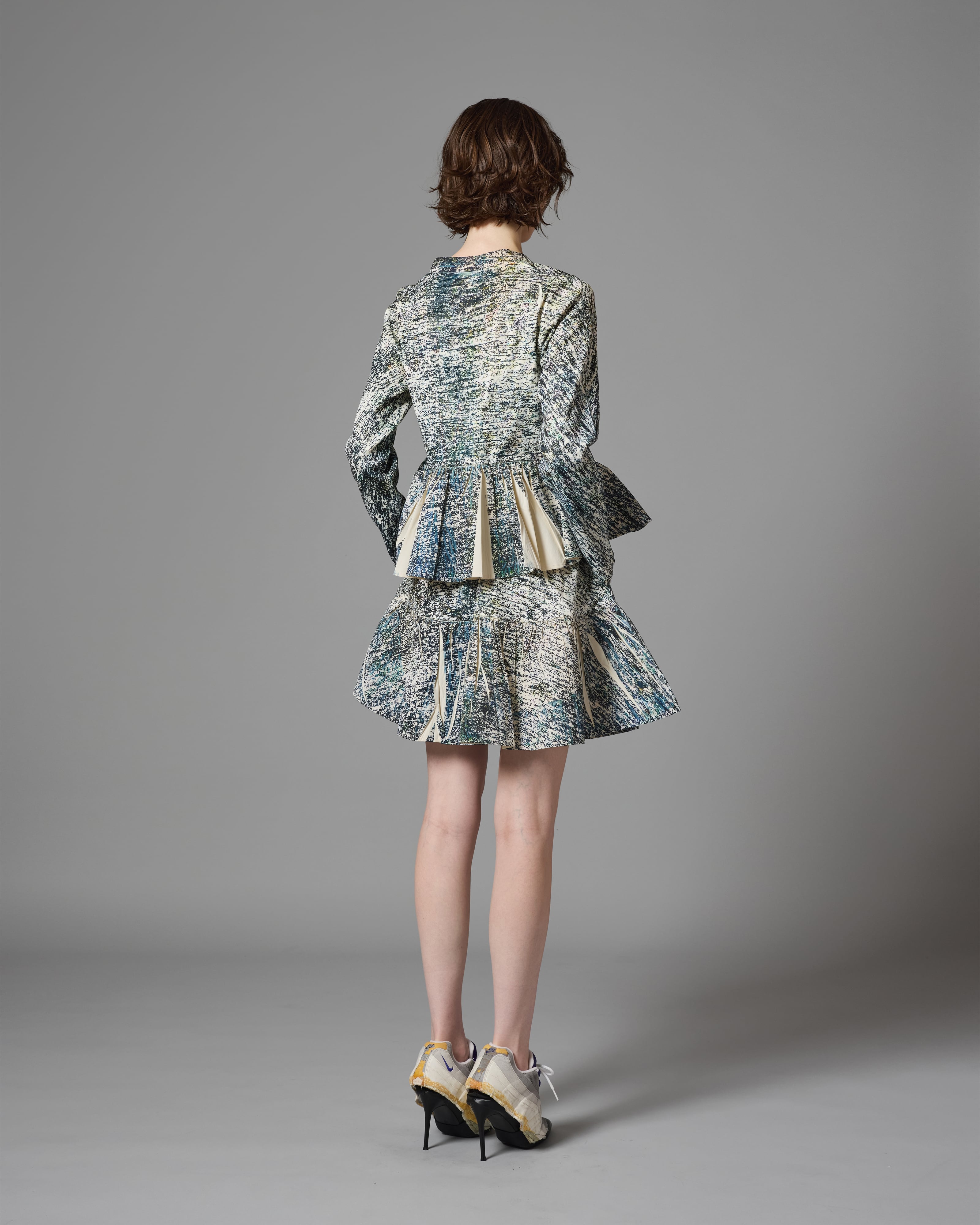 切替部分にギャザーを寄せたデザインで、動きのあるフレアシルエットを演出