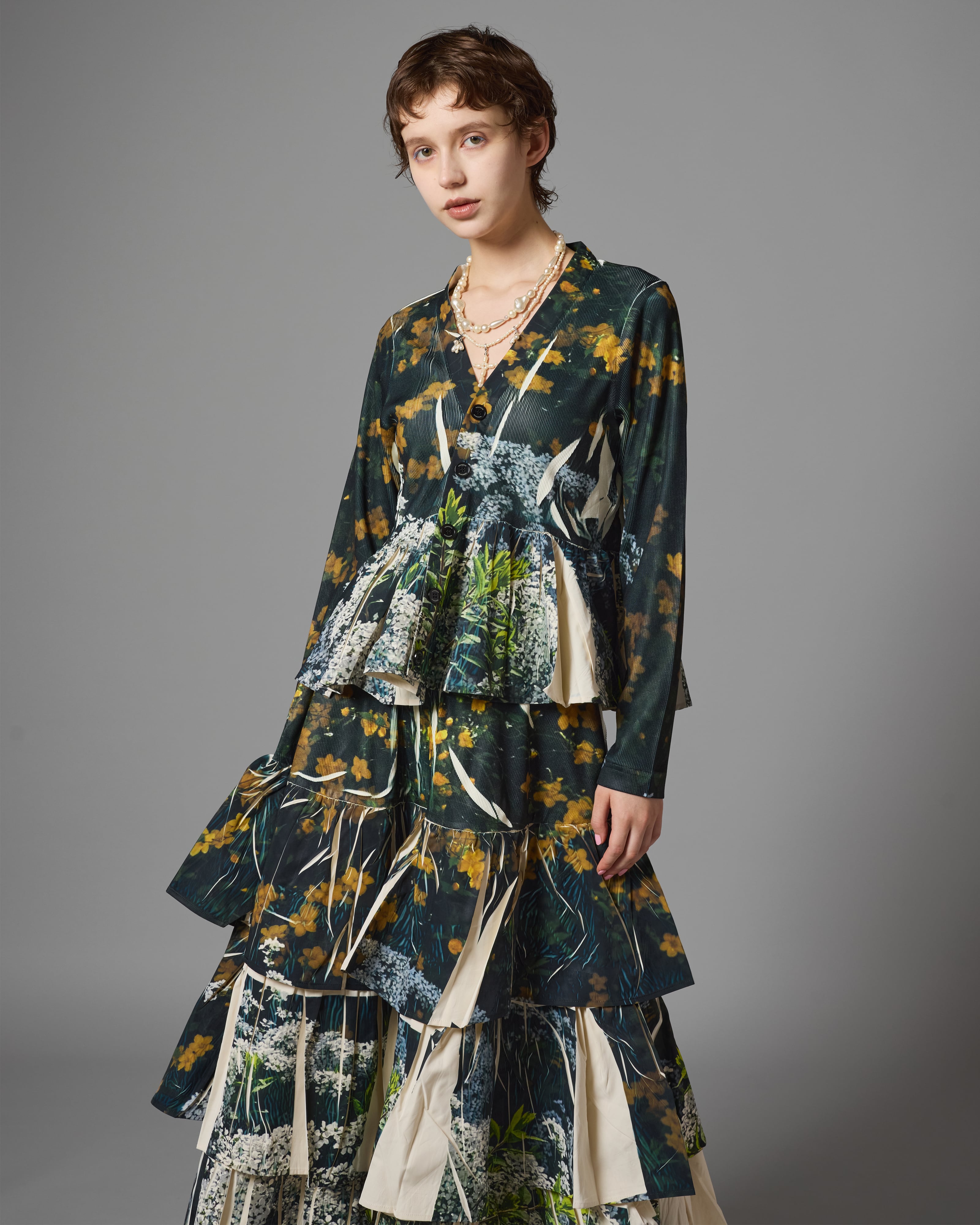 NON TOKYO ノントーキョー / DIRECT PRINT RIB GATHER CARDIGAN ダイレクトプリントリブギャザーカーディガン / FLOWER