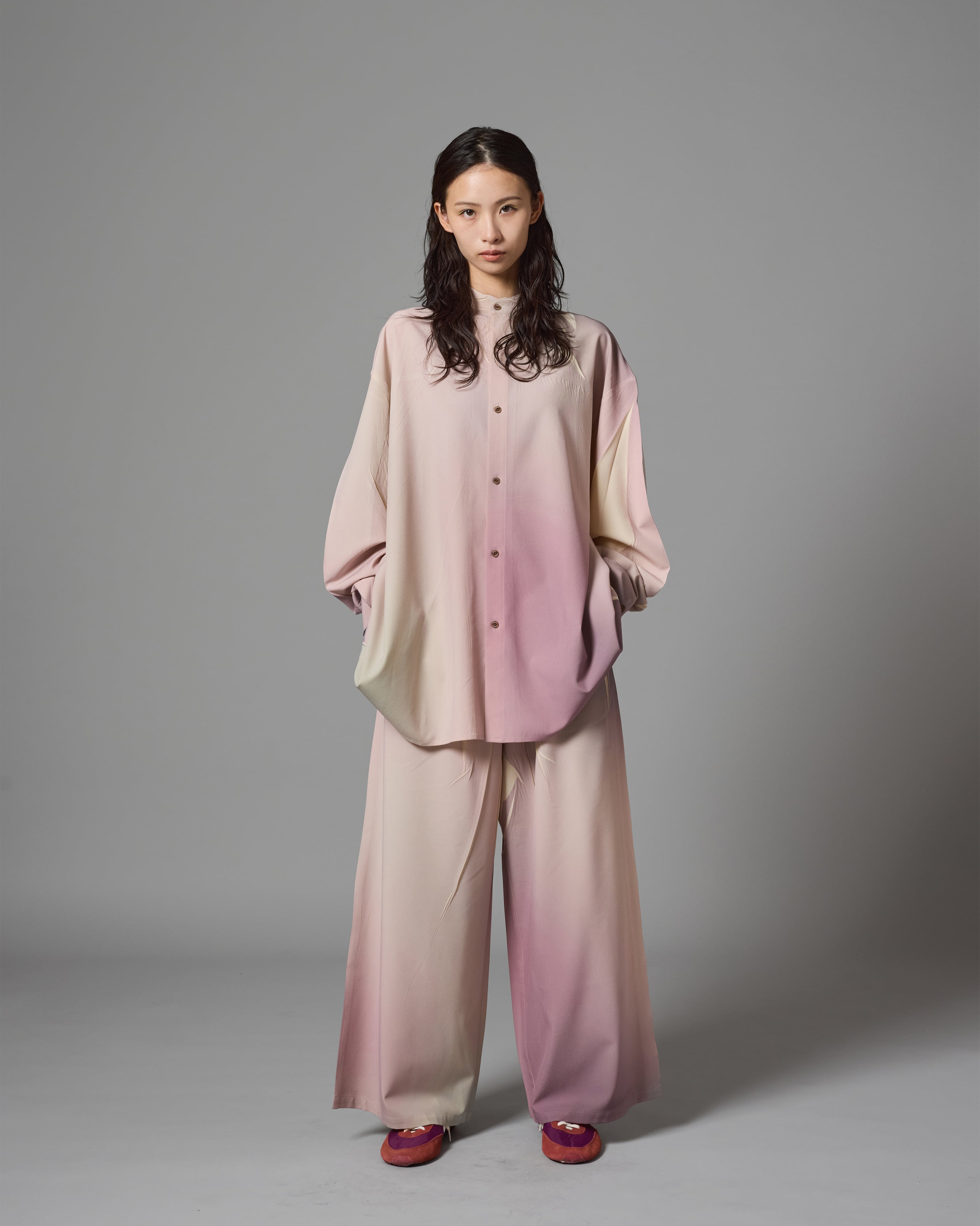 同素材のシャツも展開しており、セットアップでの着用もおすすめです