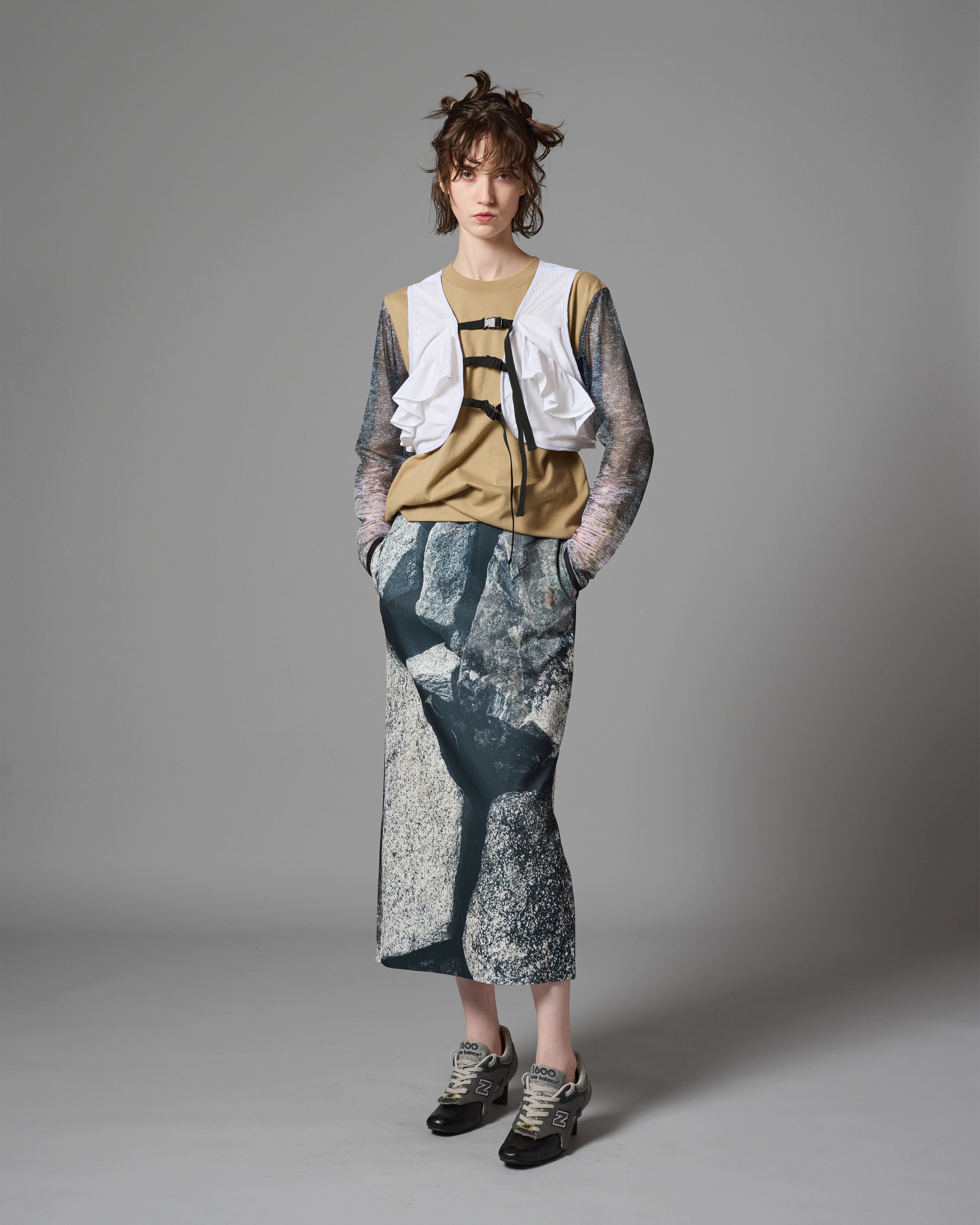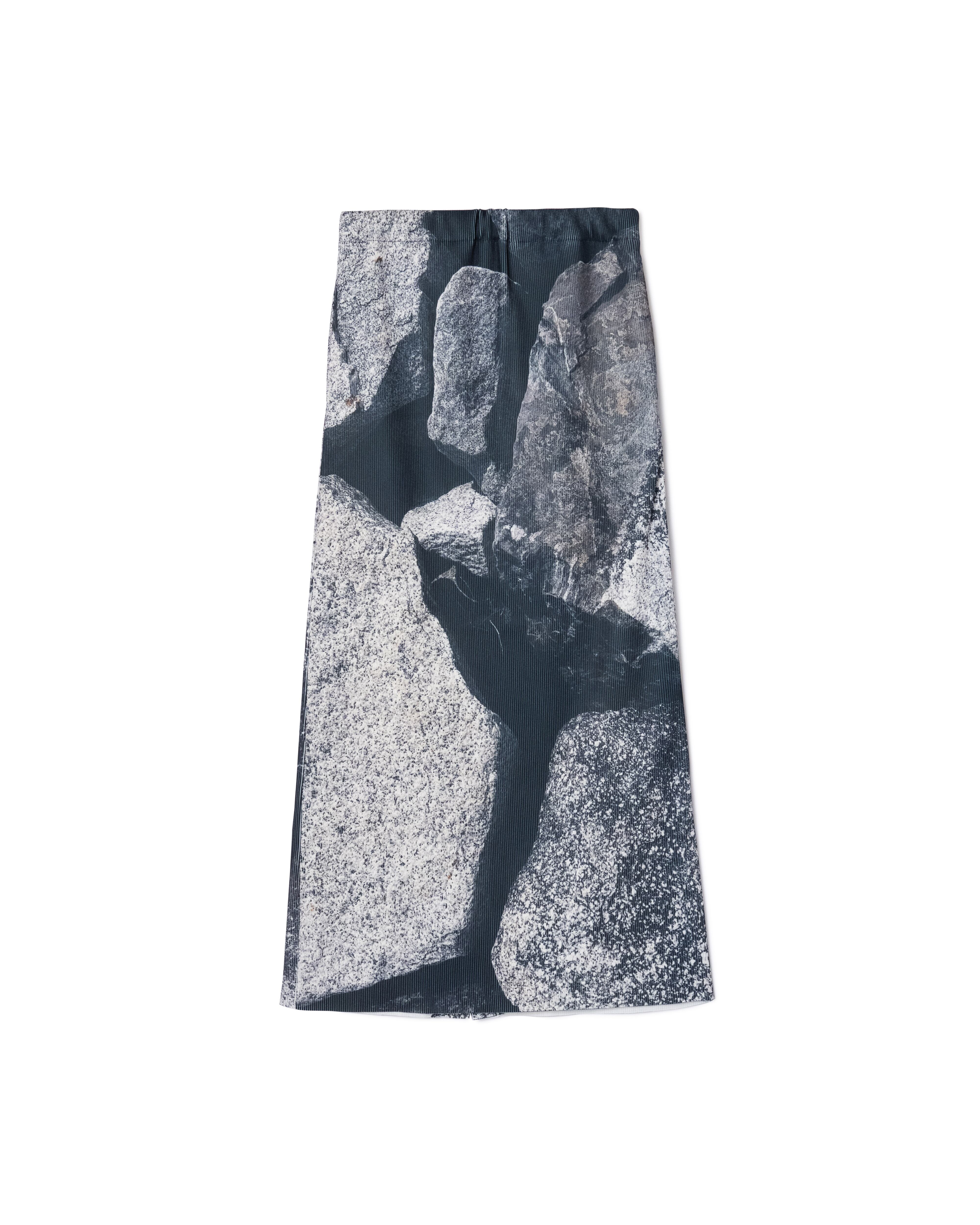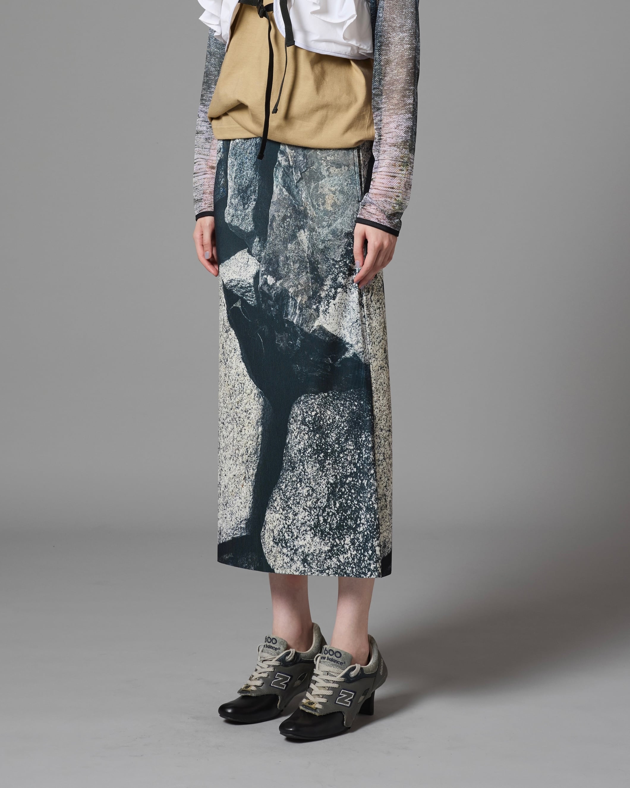 ハリとコシのあるリブ素材を使用したプリントタイトスカート。