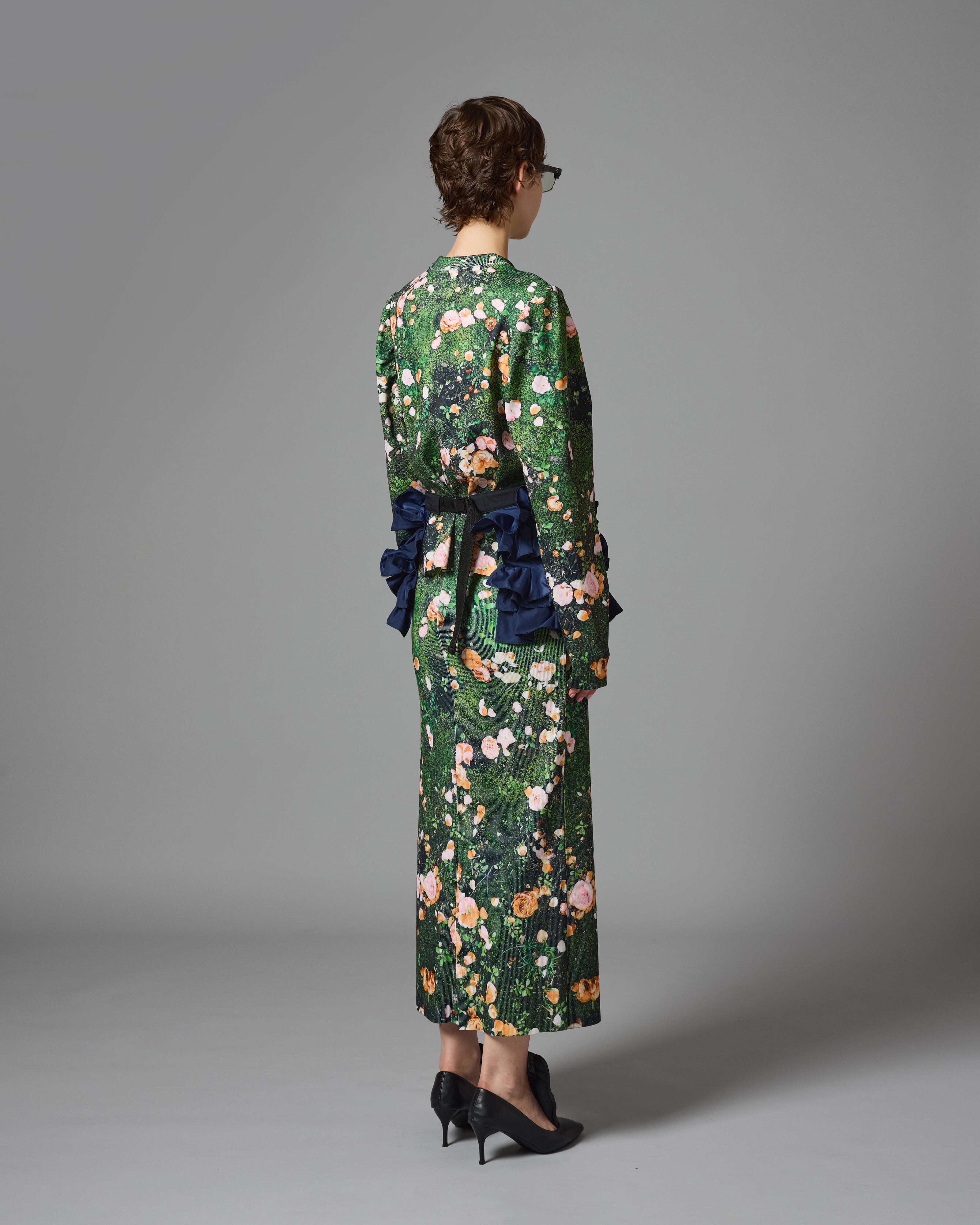 ハリとコシのあるリブ素材を使用したプリントタイトスカート。