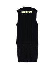オリジナルグラフィックをプリントしたピンタック加工のノースリーブTシャツワンピース。