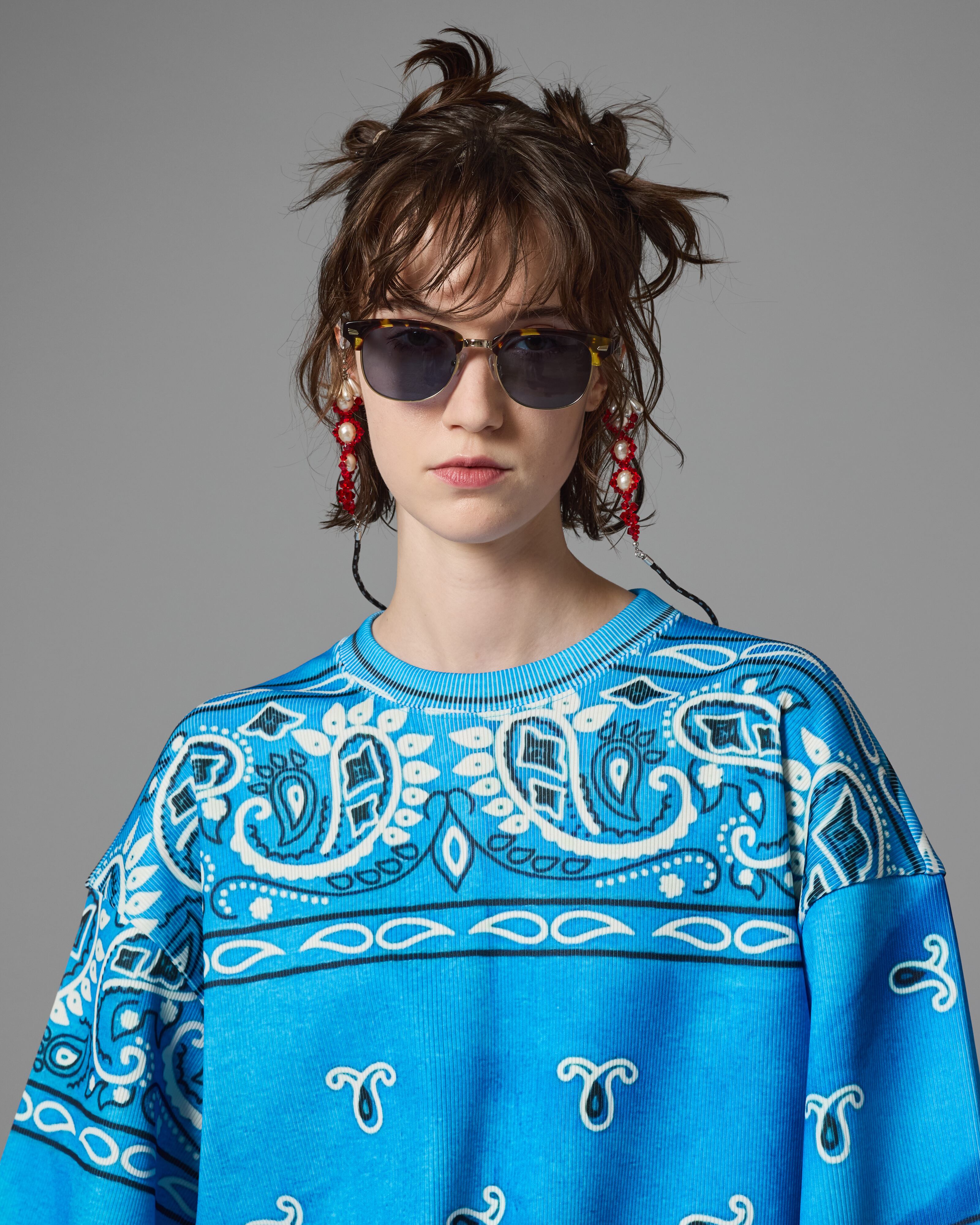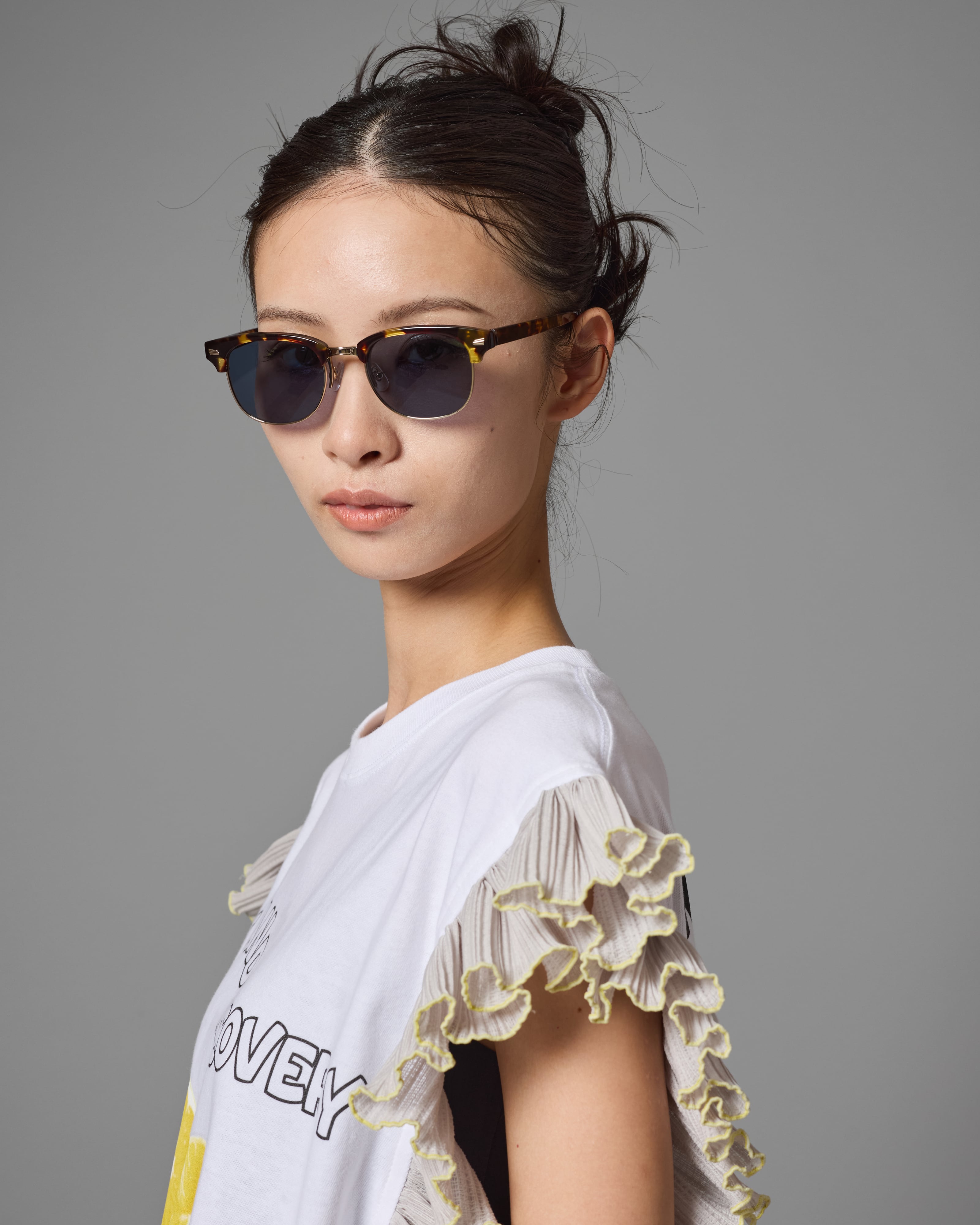 フレームとカラーレンズの配色バランスも魅力で、クラシックな印象の中に程よい遊び心をプラス。スタイリングのアクセントとしても活躍します。