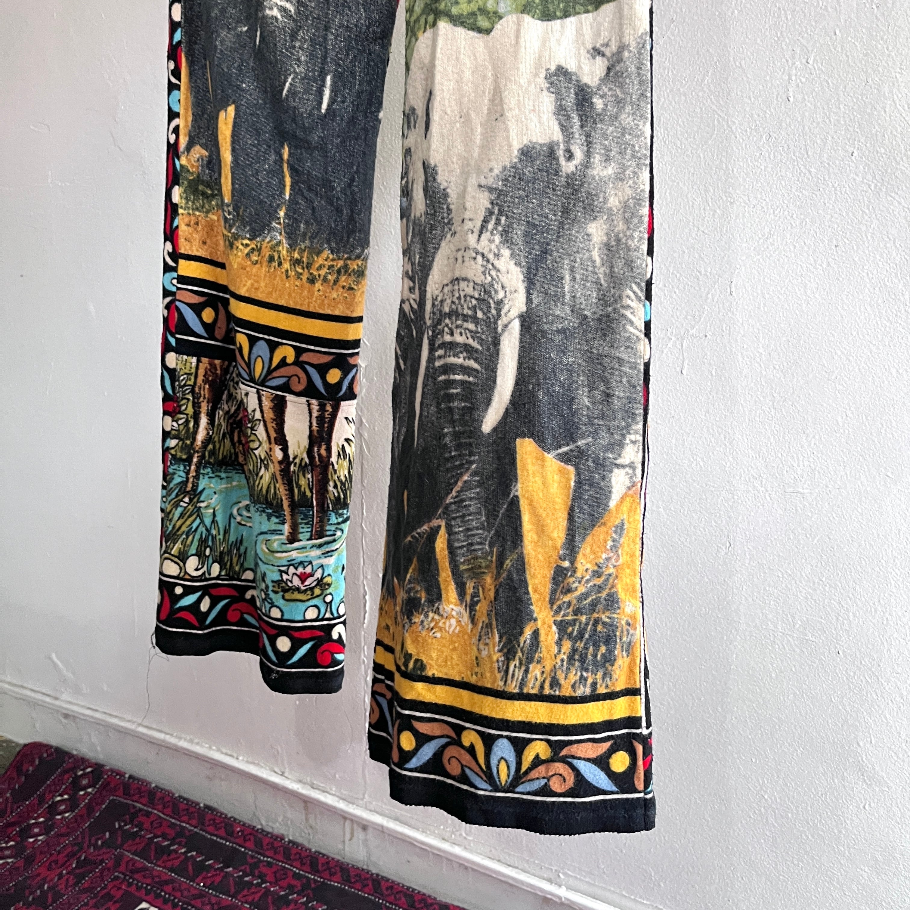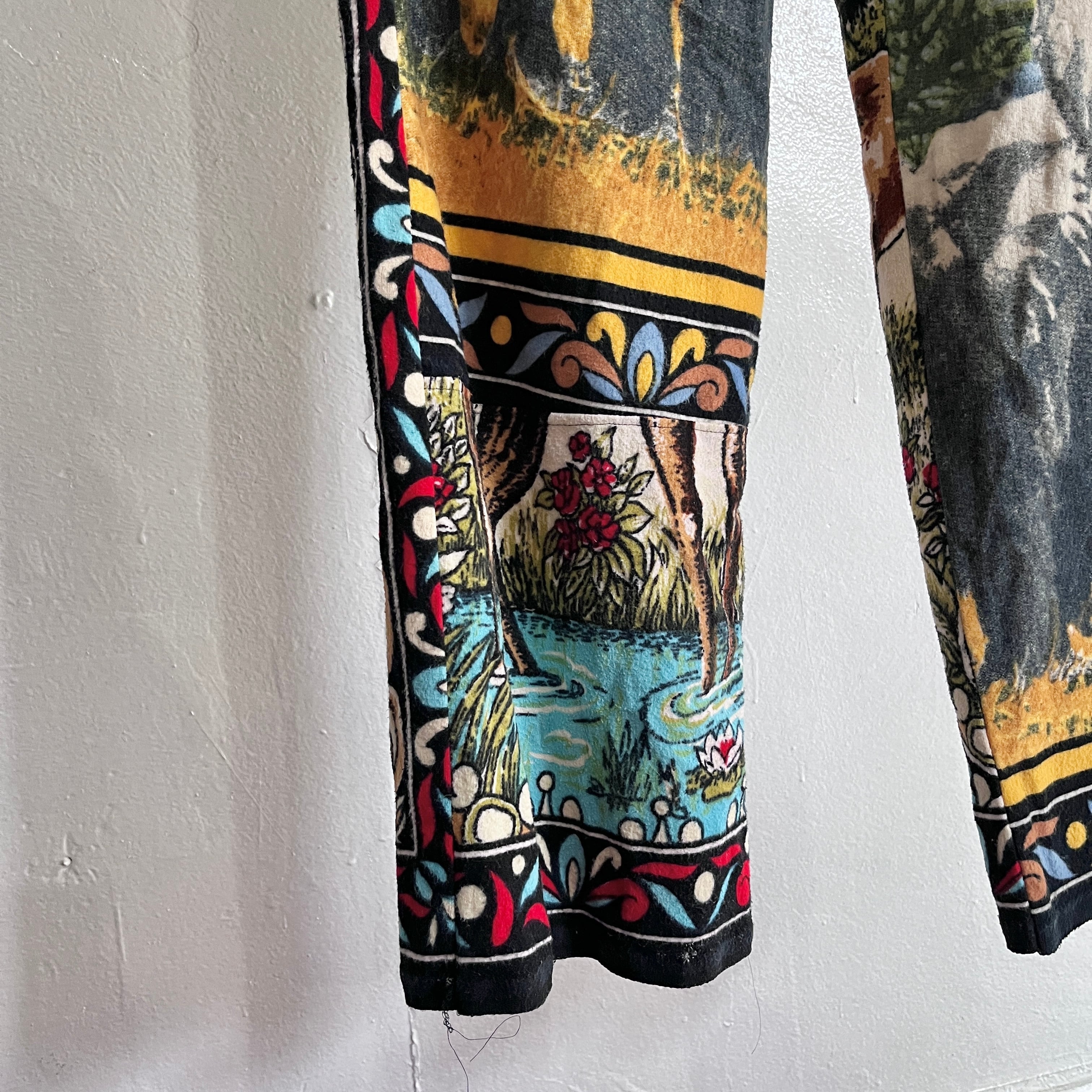 その風景を贅沢に使用したアーティスティックなイージーパンツです
