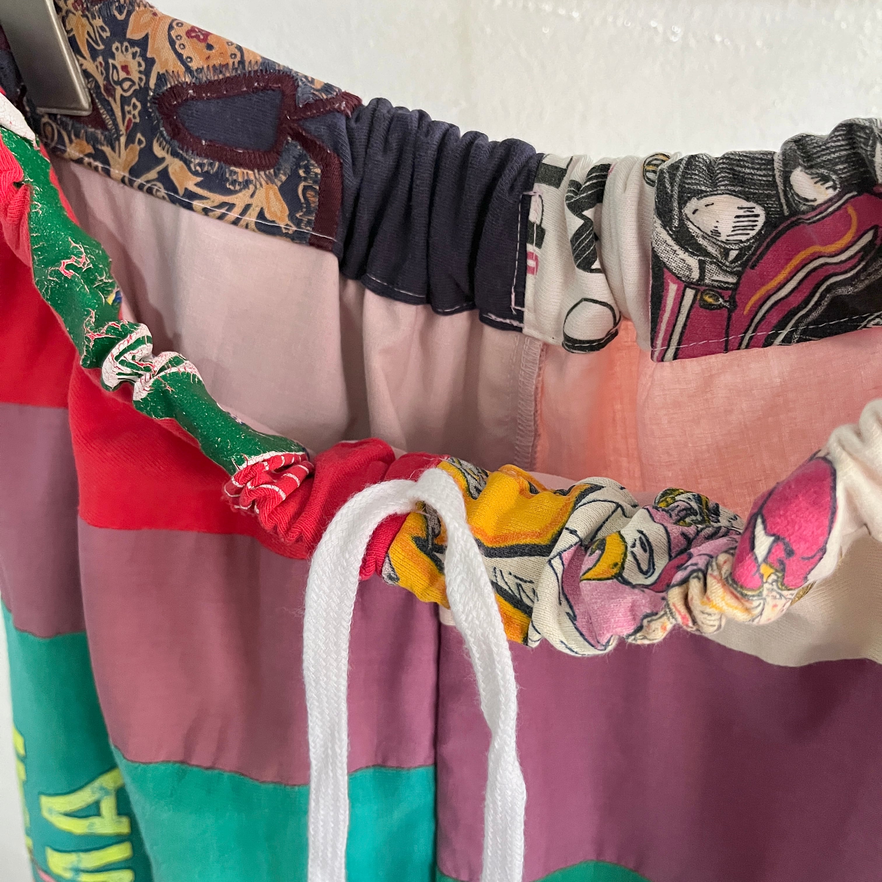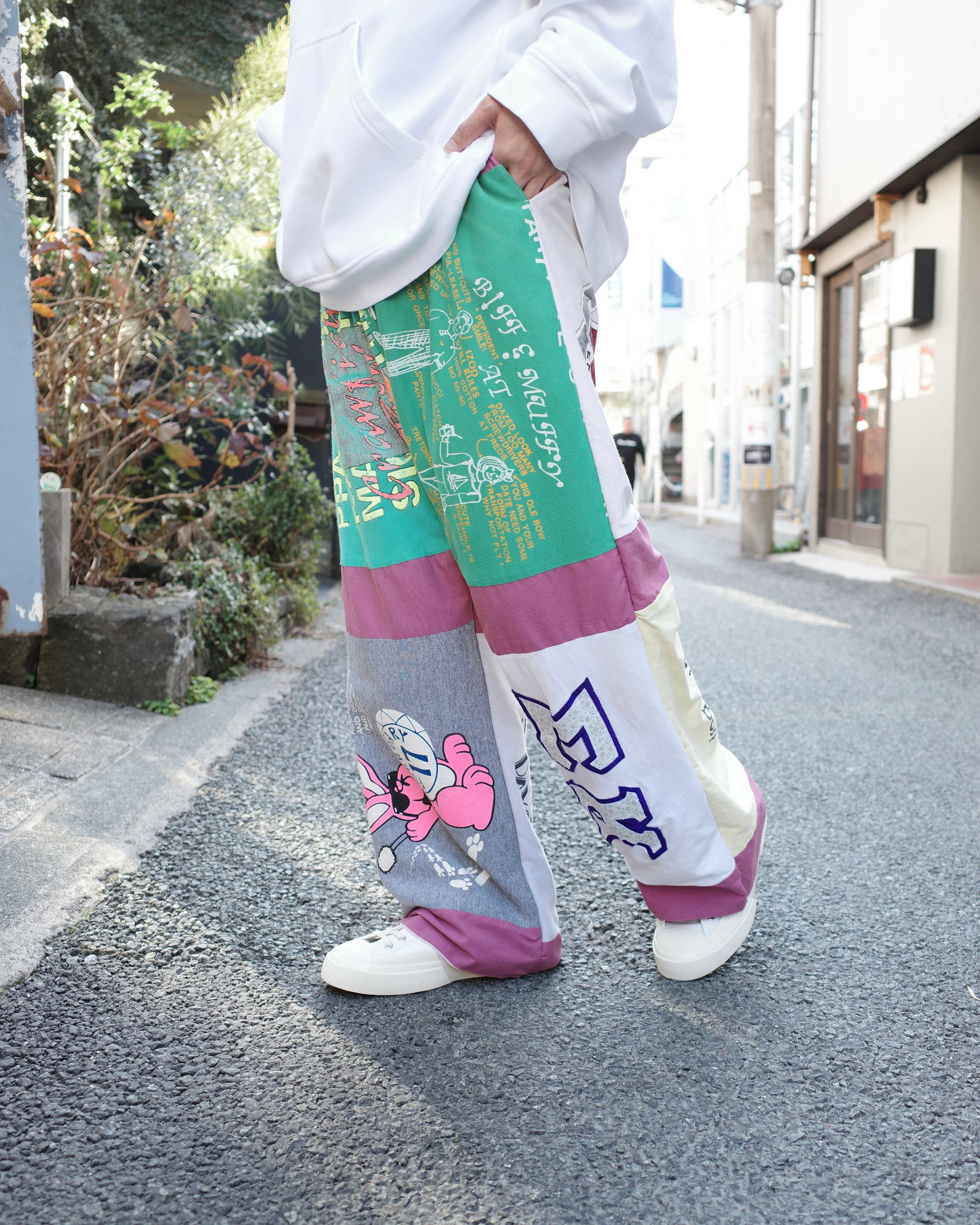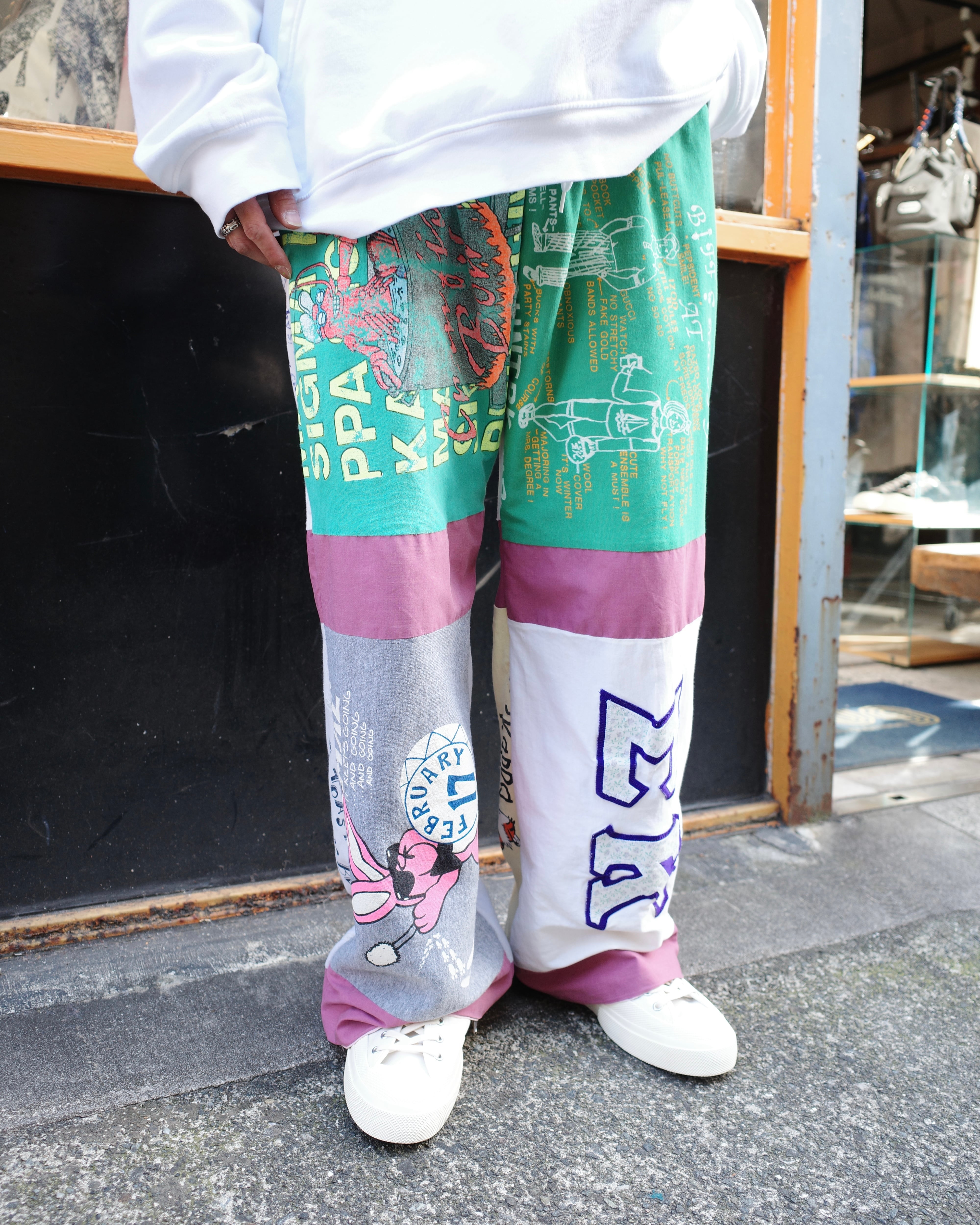 その風景を贅沢に使用したアーティスティックなイージーパンツです