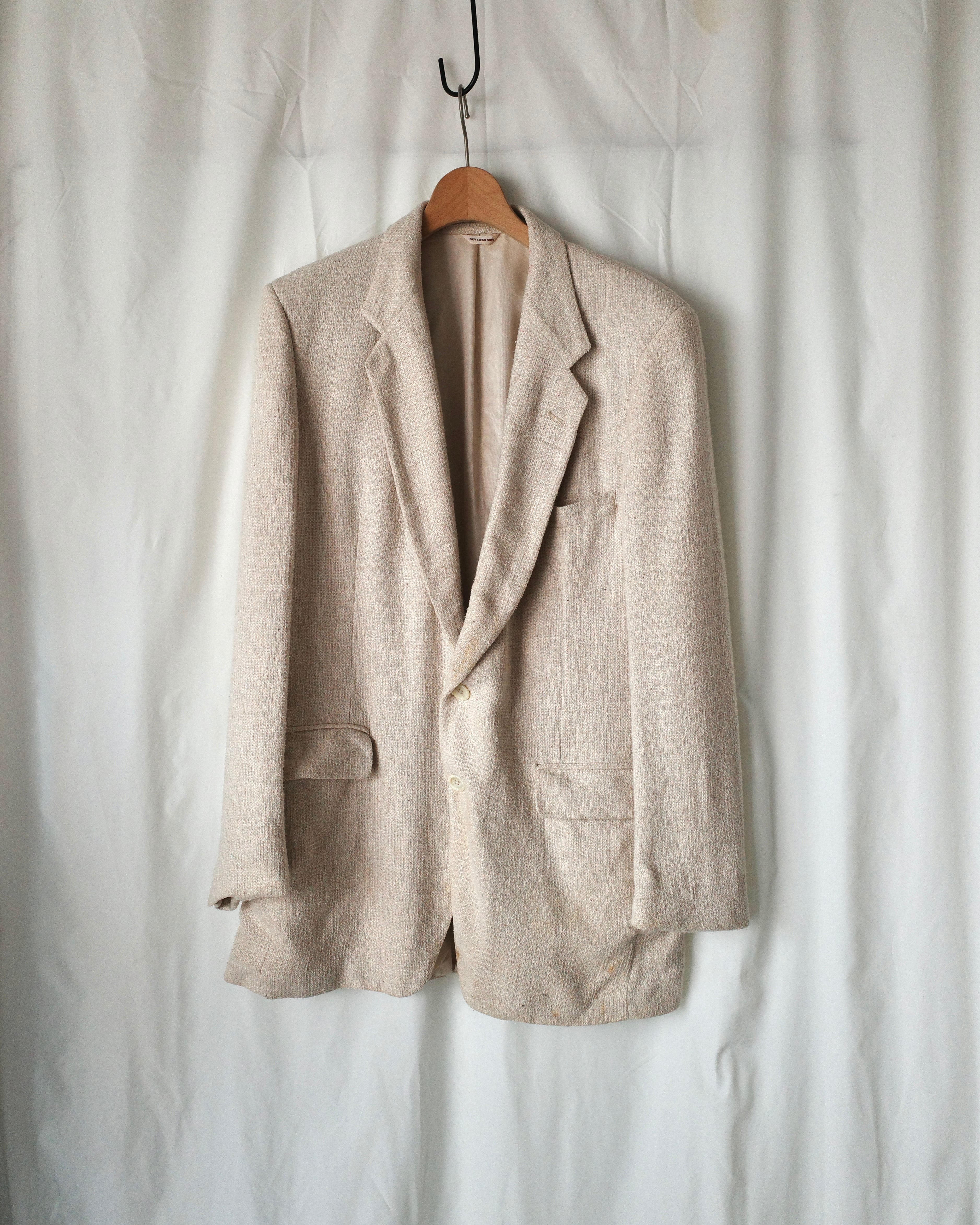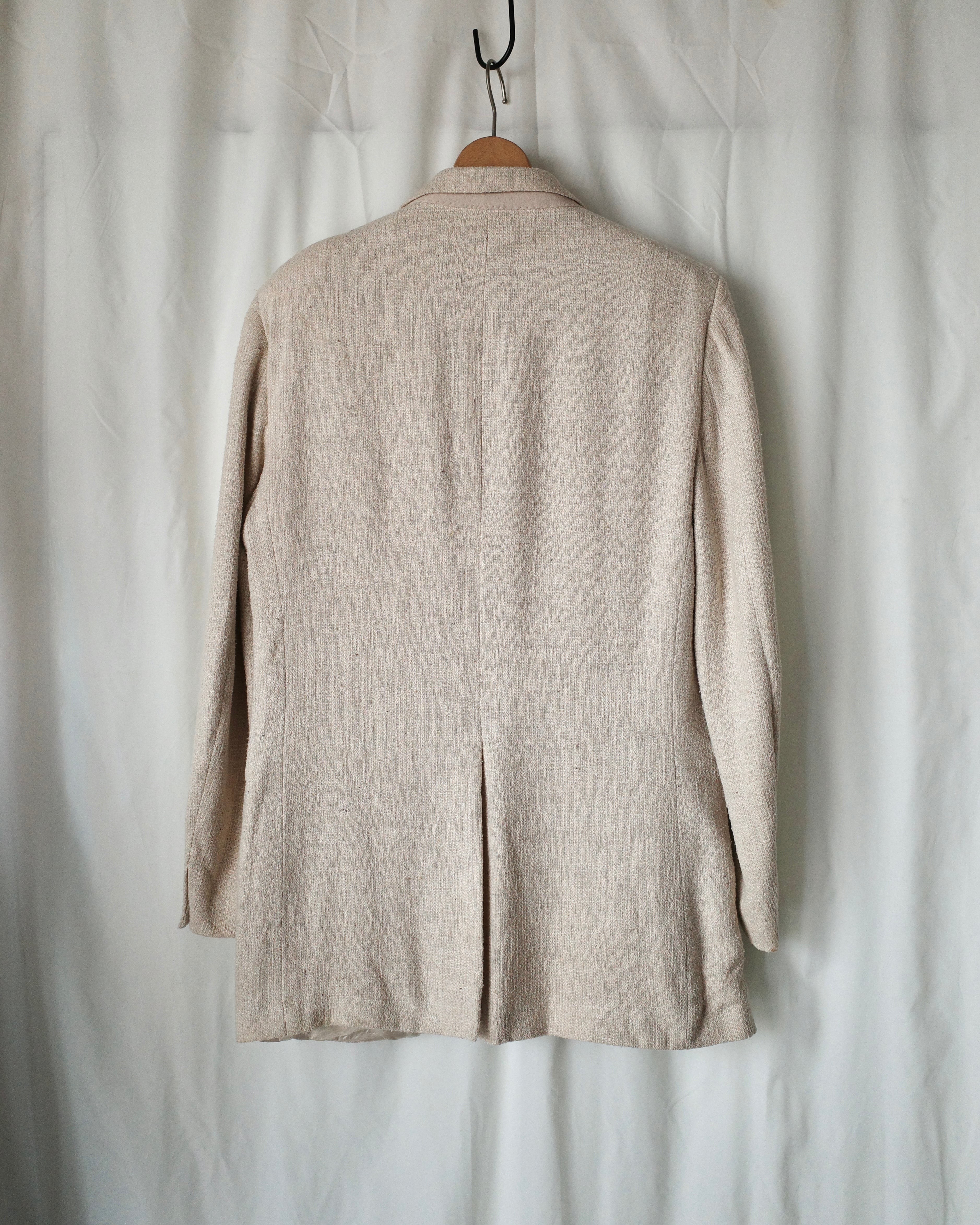 ナチュラルアイボリーの色味が爽やかで、春先に向けておすすめなジャケット
