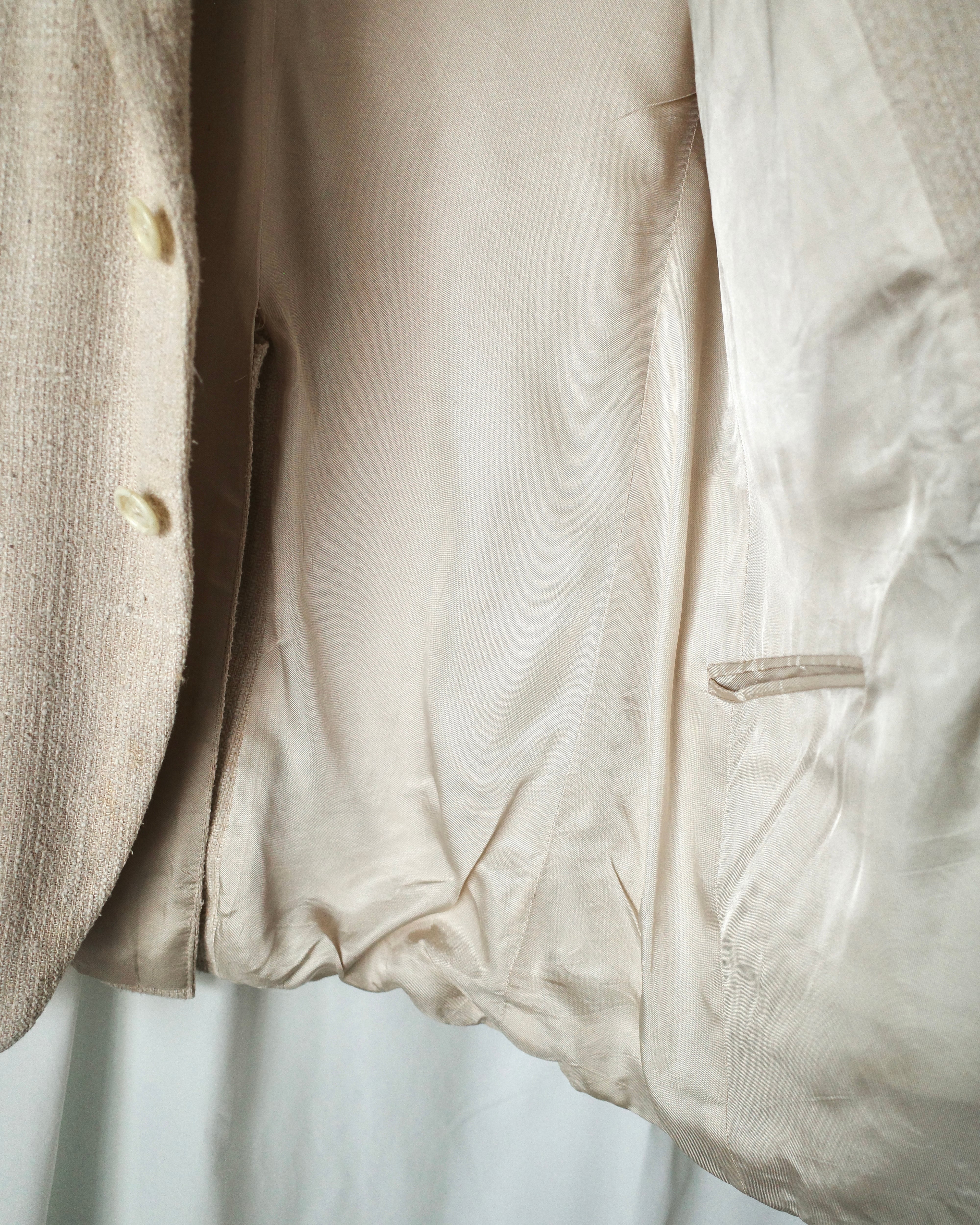 組成表記はありませんがコットン、リネンのような柔らかくネップ生地の風合いがあります