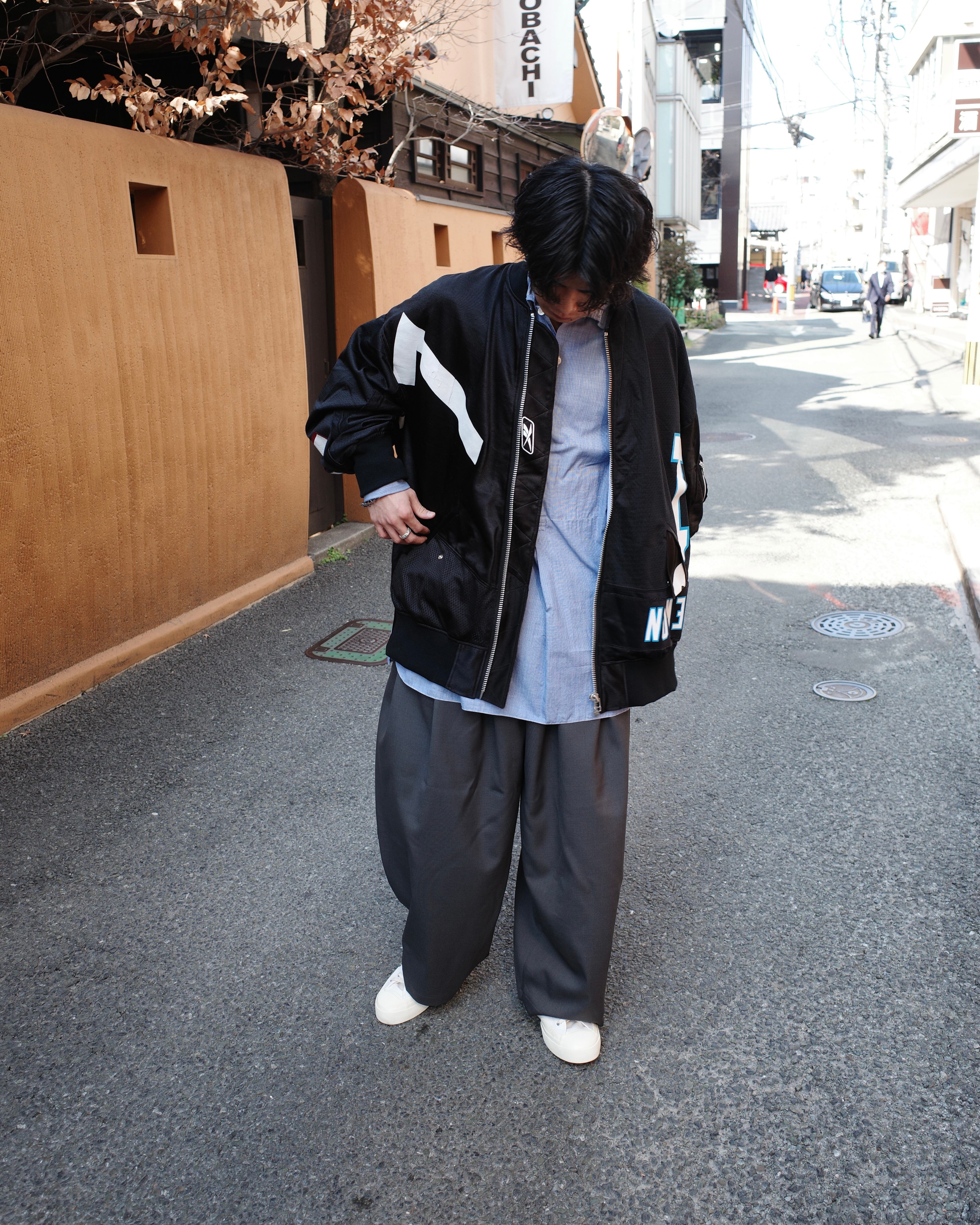 YEAH RIGHT!!独自のバランスでカットアップし、スポーツウェアならではの素材をブルゾンに仕立てています