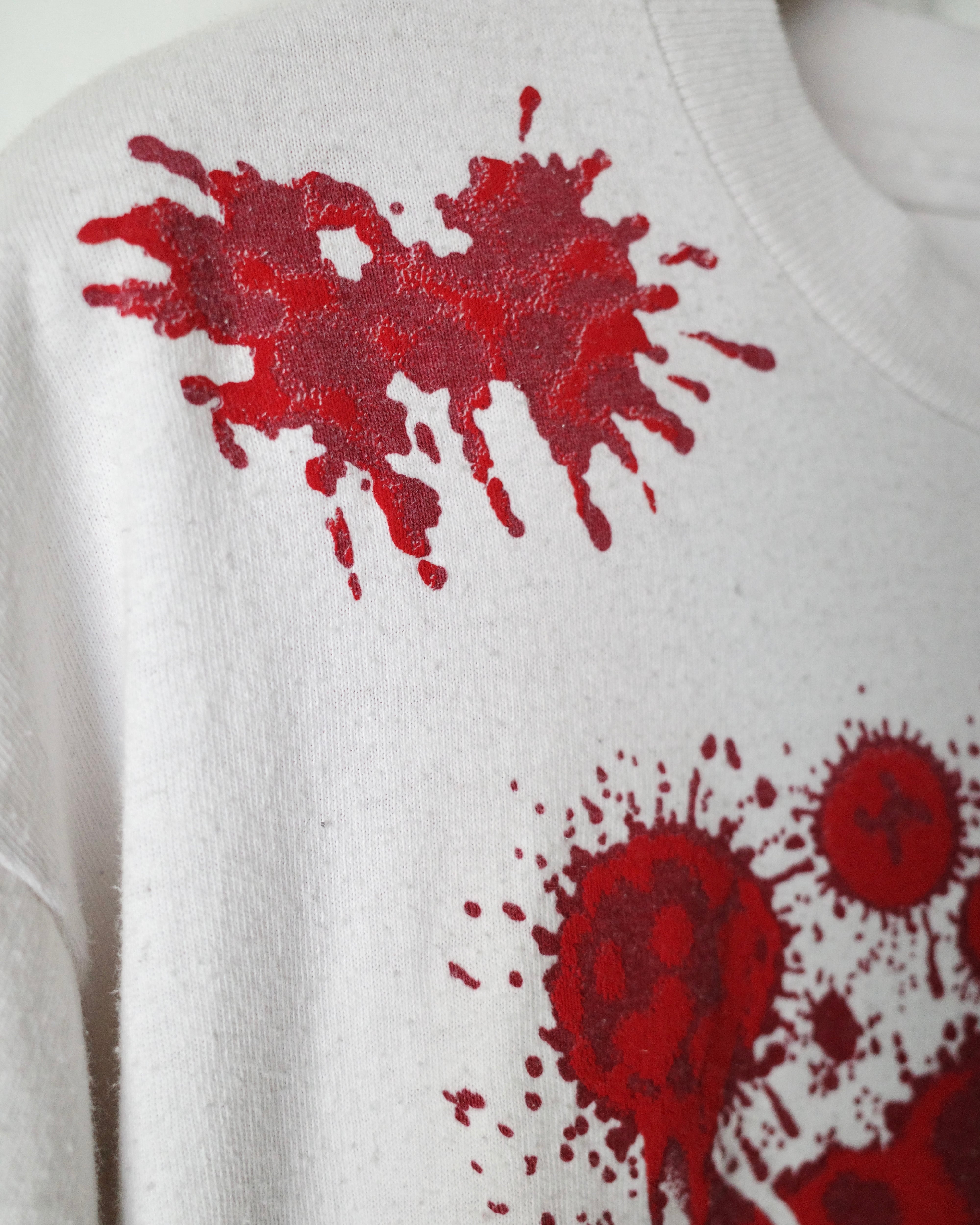 ホラー映画らしく、血飛沫をラバーインクとエンボスインクで立体的に表現しています