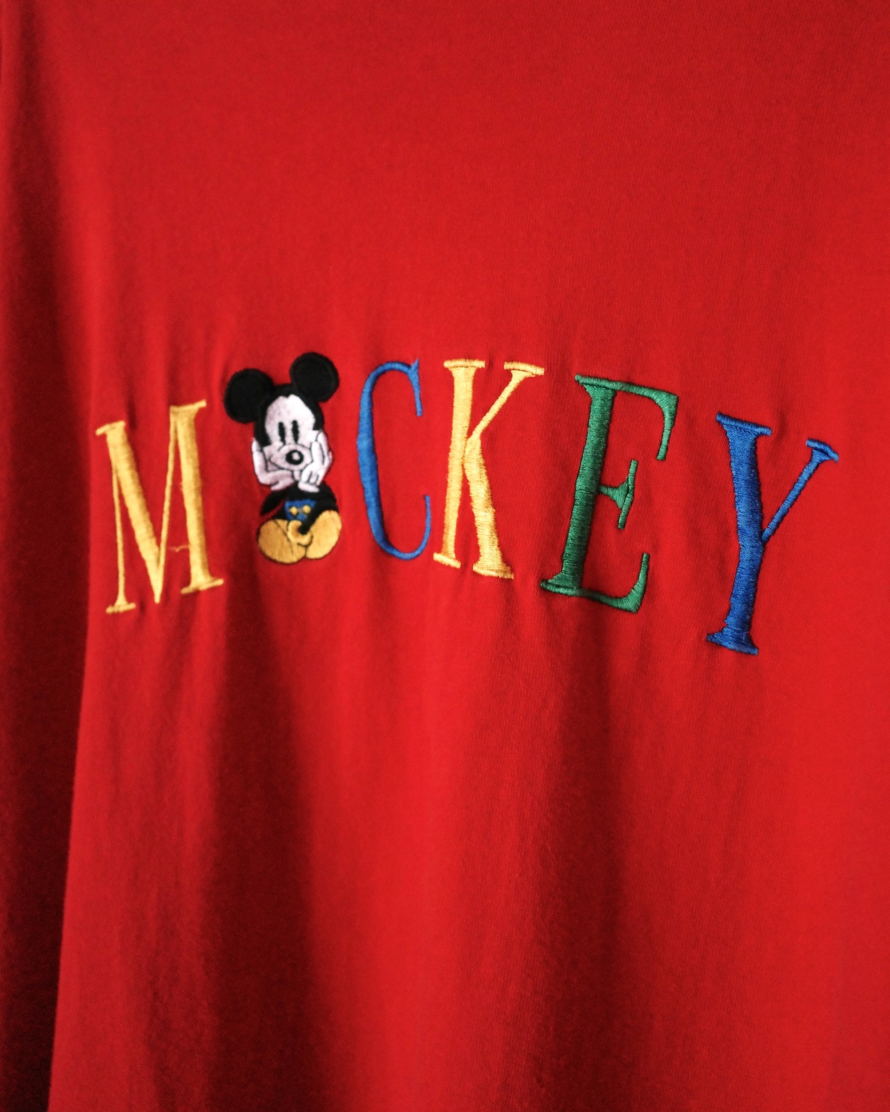 ミッキーマウスの刺繍が施されたブートレグTシャツ