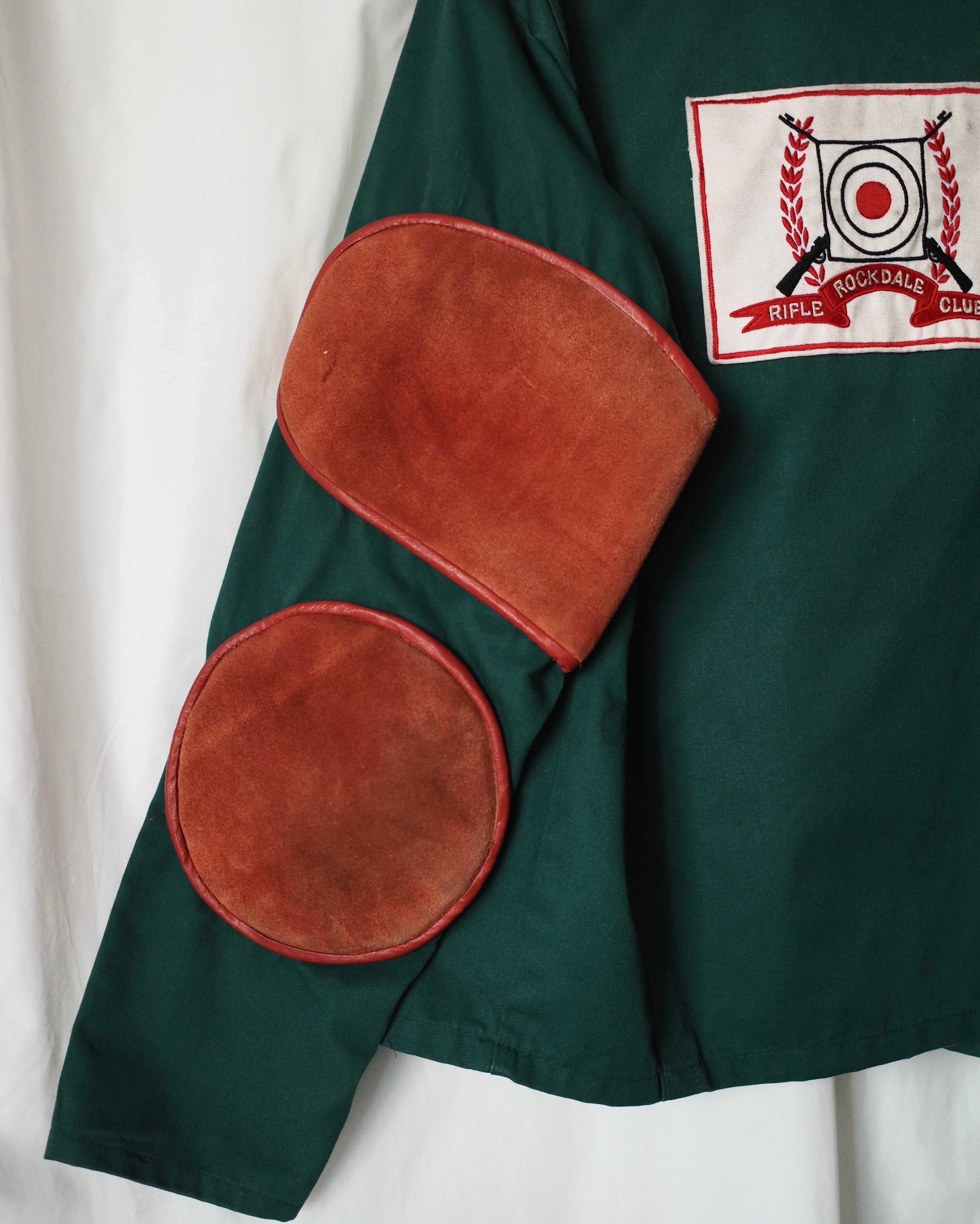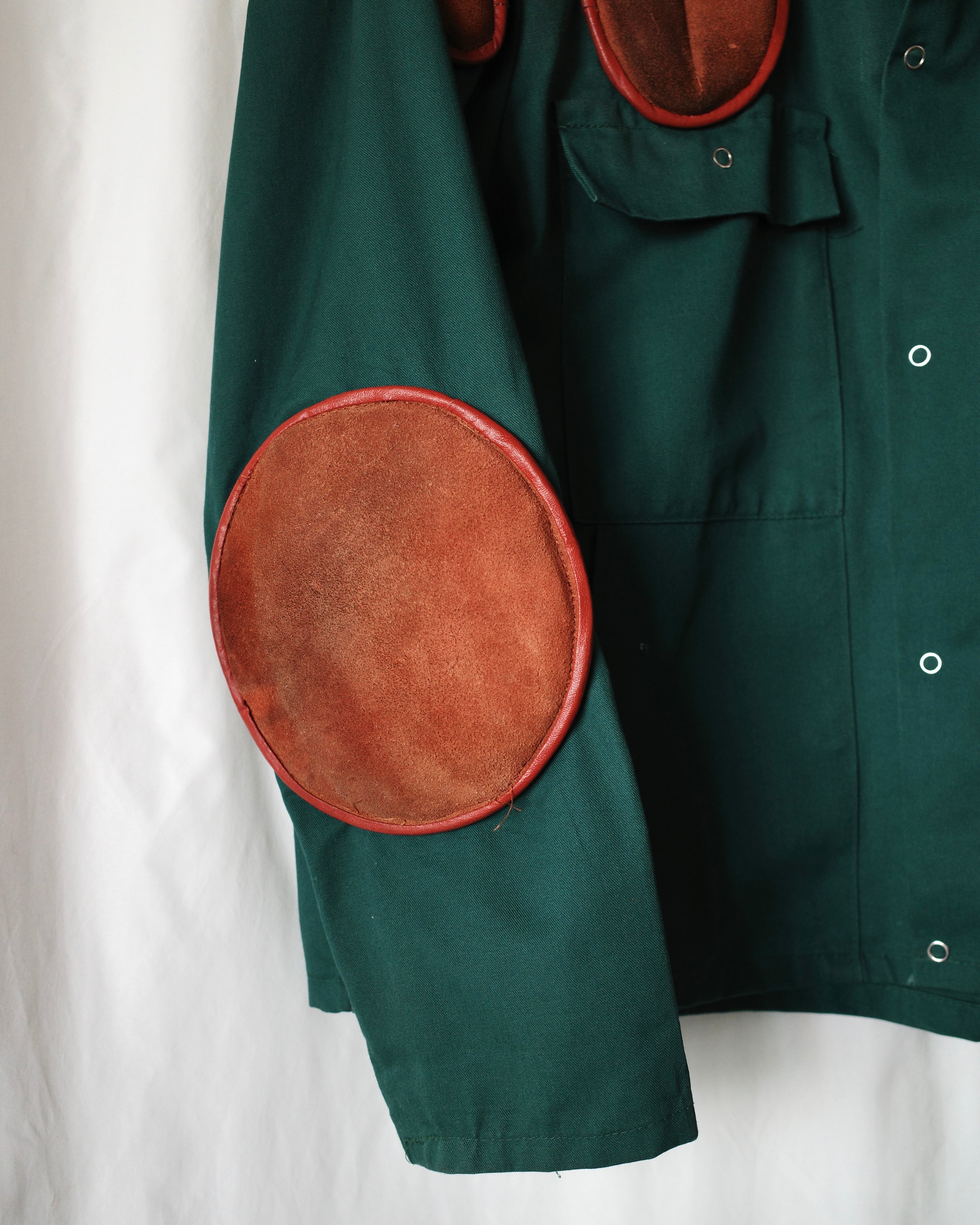 コットンポリのシャツジャケットに、エルボーパッチとガンパッチを施した一着。